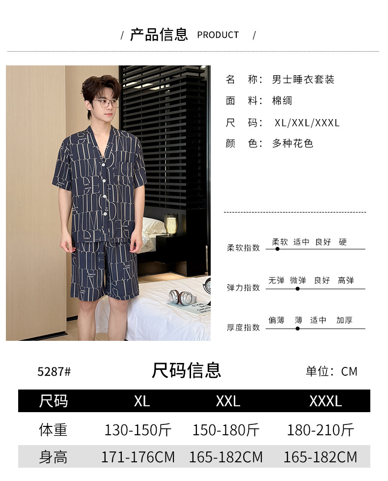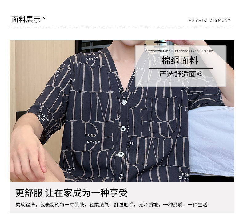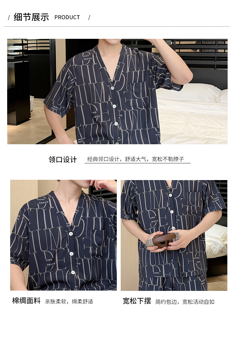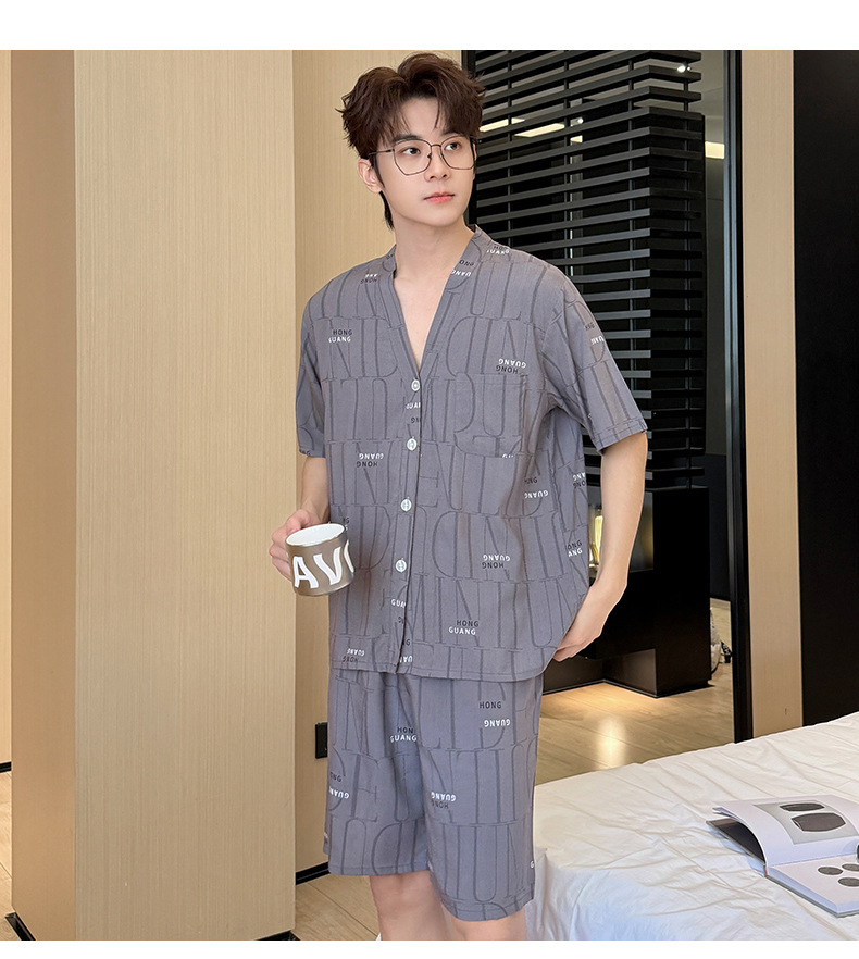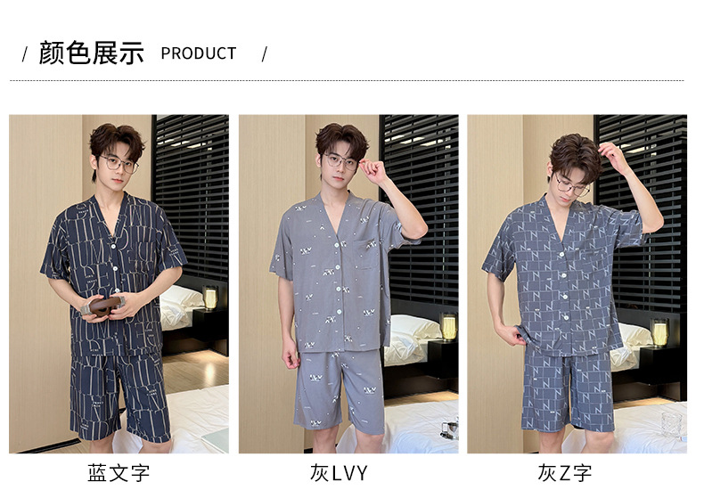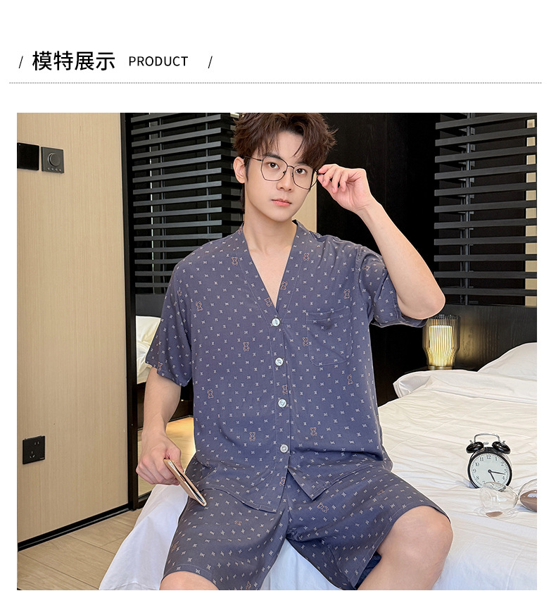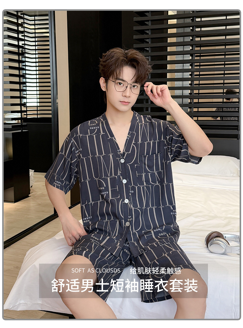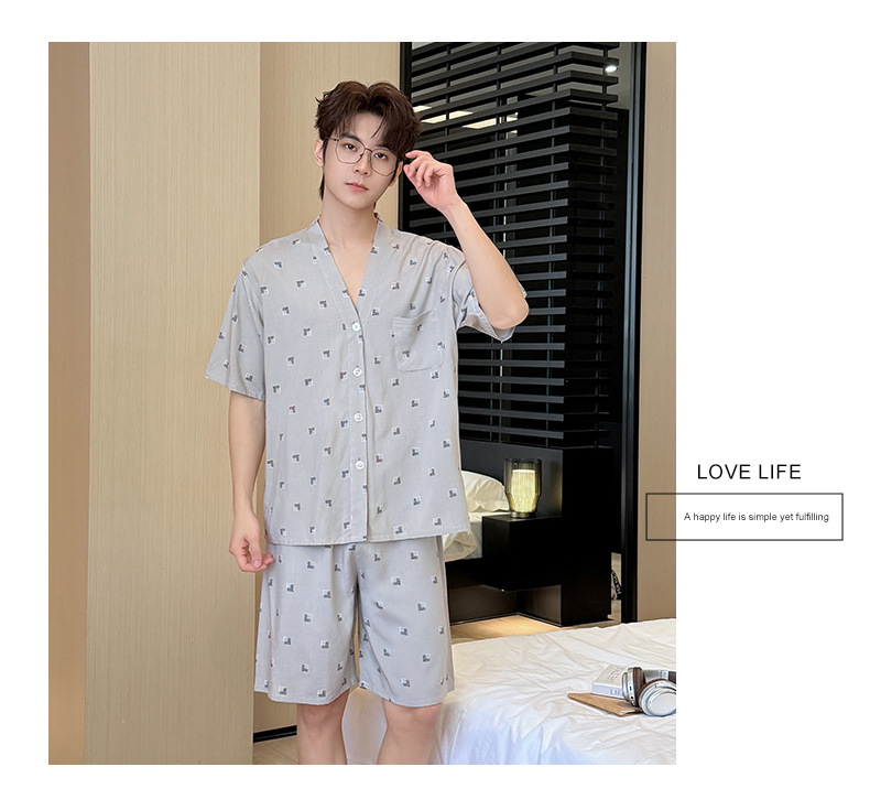 여름 남성 면 실크 잠옷, 반팔 가디건, 루즈한 캐주얼 레이온 체크 무늬 잠옷, 집 옷, 야외에서 착용 가능