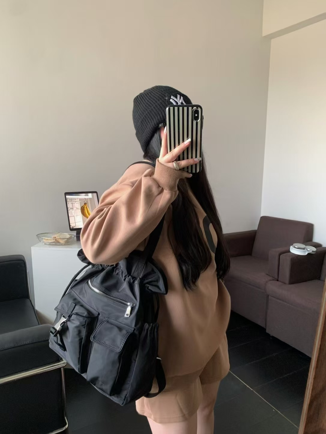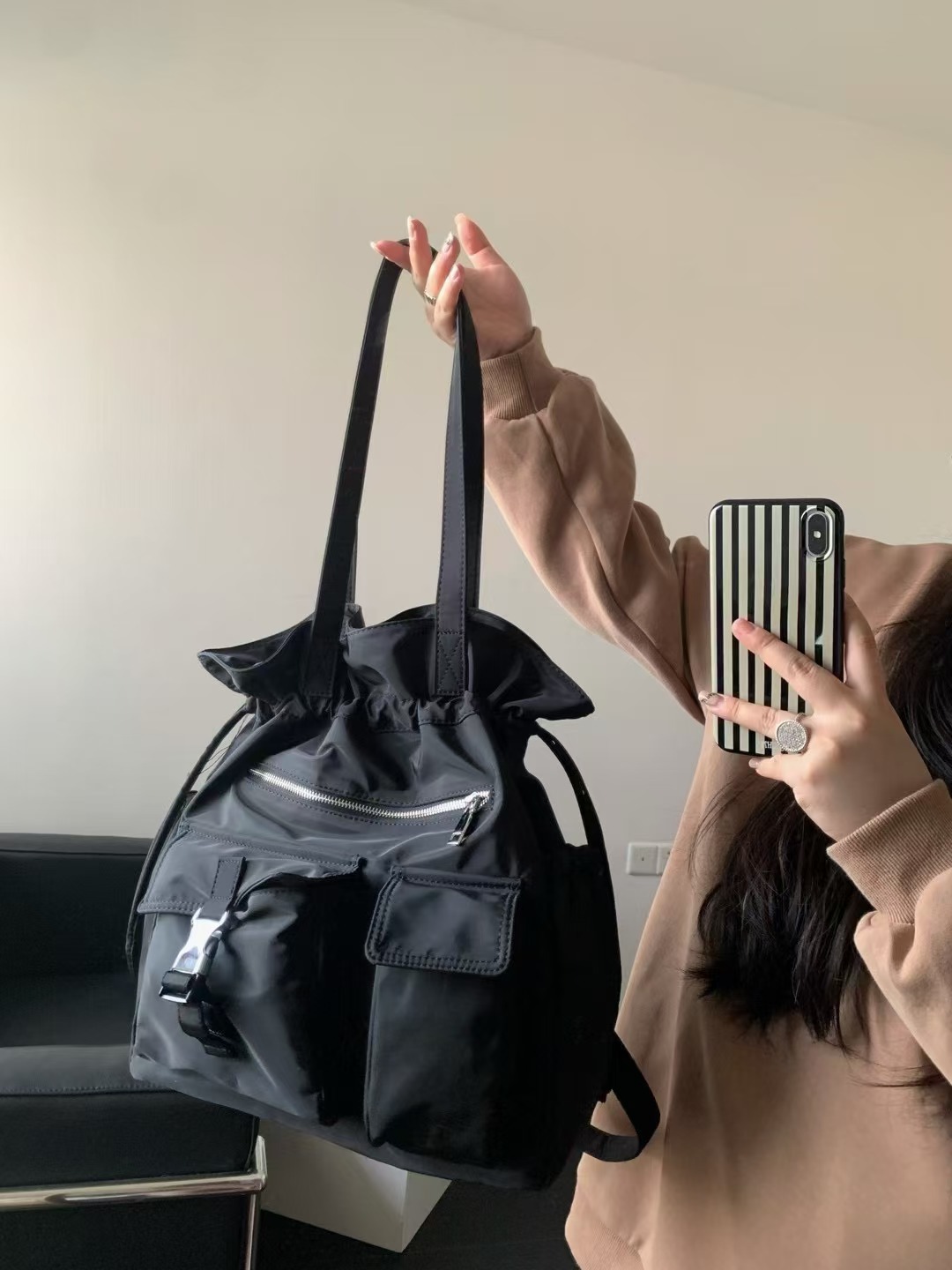 멀티 포켓 듀얼 사용 캐주얼 휴대용 어깨 가방 2025 새로운 여성 가방 나일론 간단한 대용량 배낭