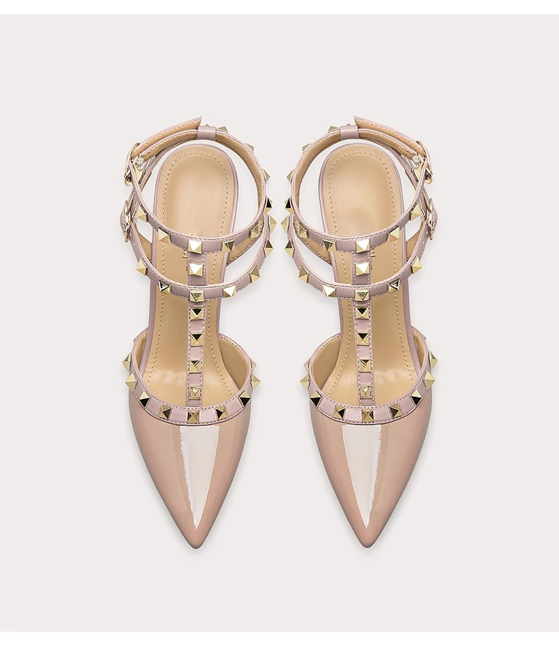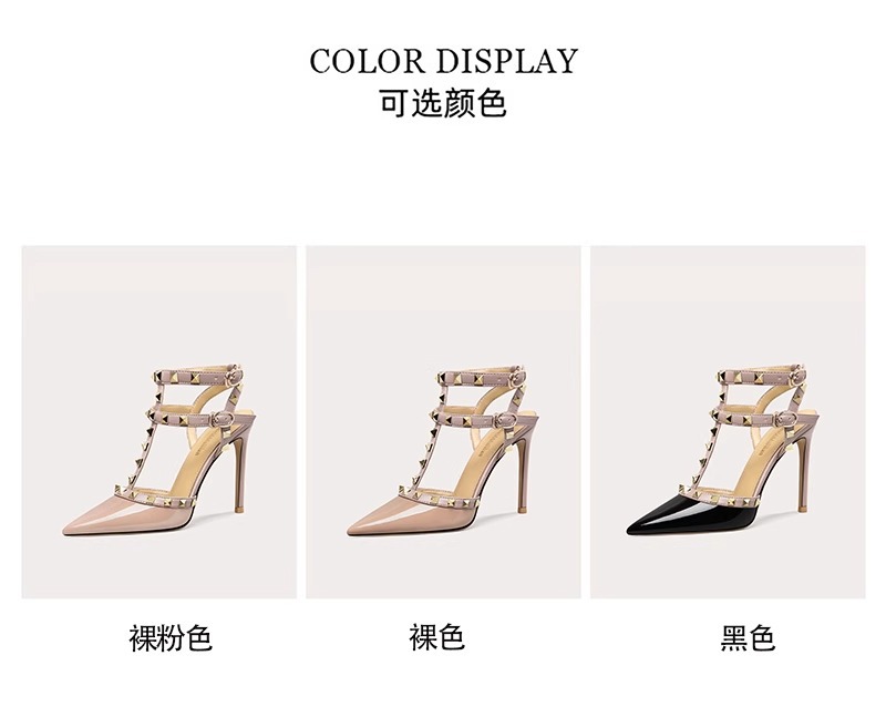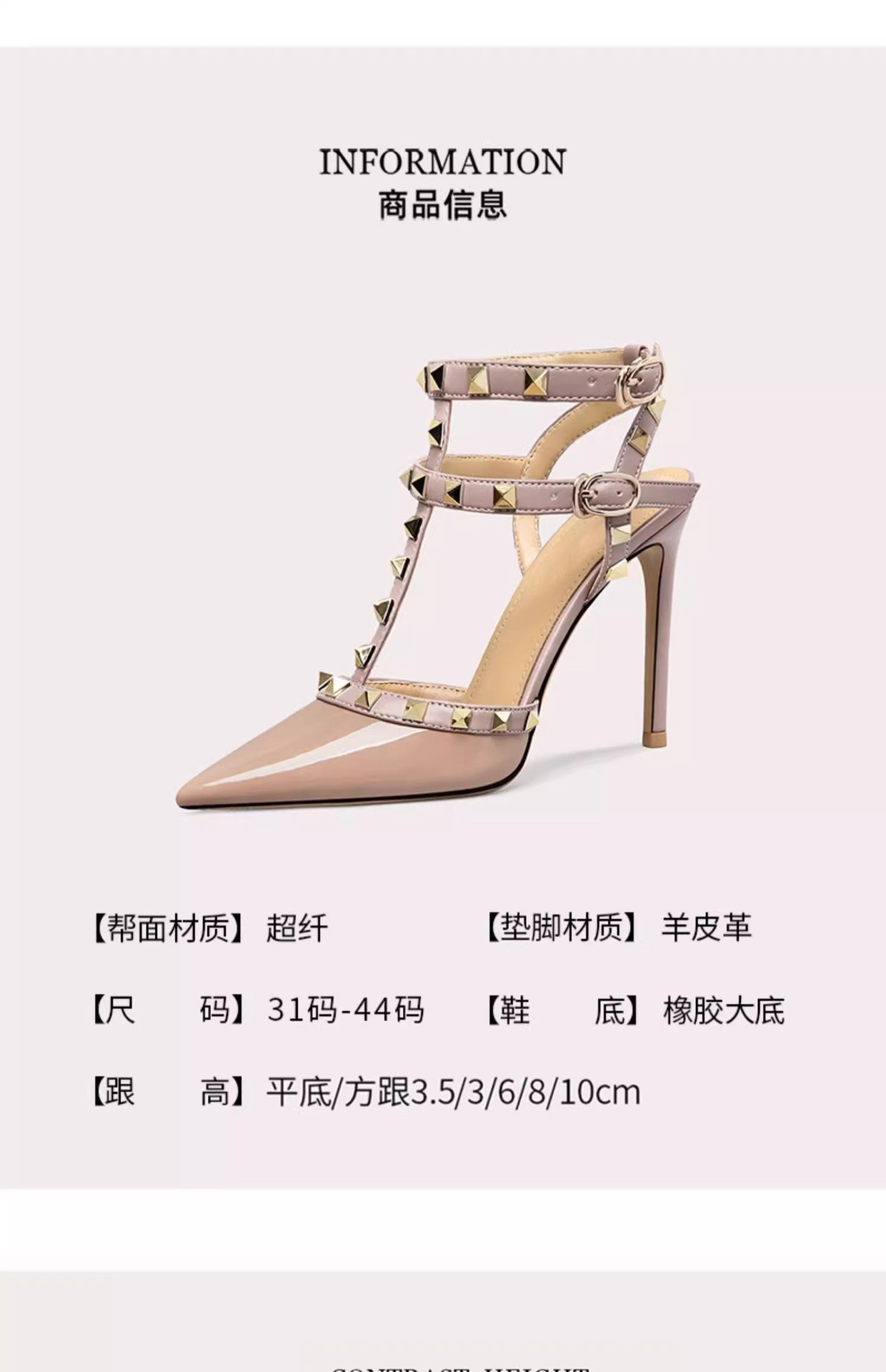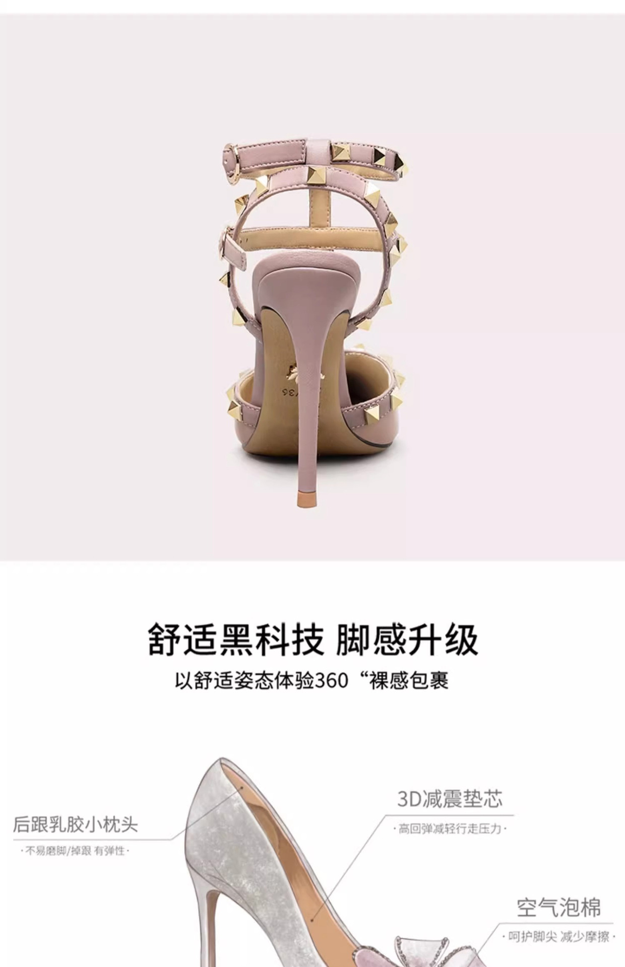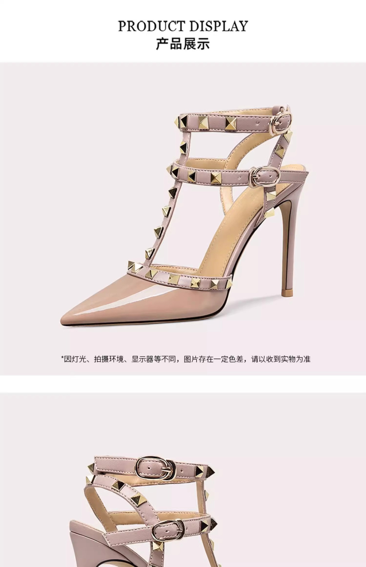 확대 된 뾰족한 하이힐 여성 섹시한 리벳 왕실 자매 스타일 기질 사교계 바오 터우 샌들 플러스 사이즈 여성 신발 41-44