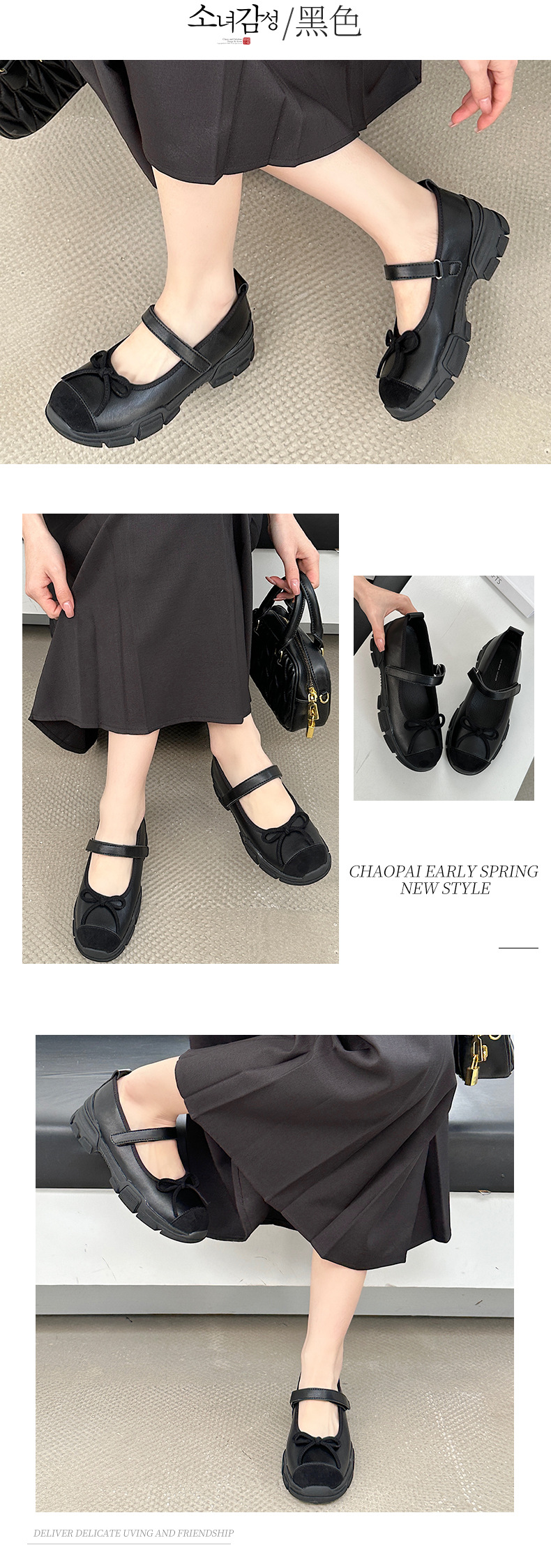 초인기 동대문 리본 굽 두꺼운 밑창 여성용 2026 봄여름 얕은 구두 로퍼 메리제인 여성화