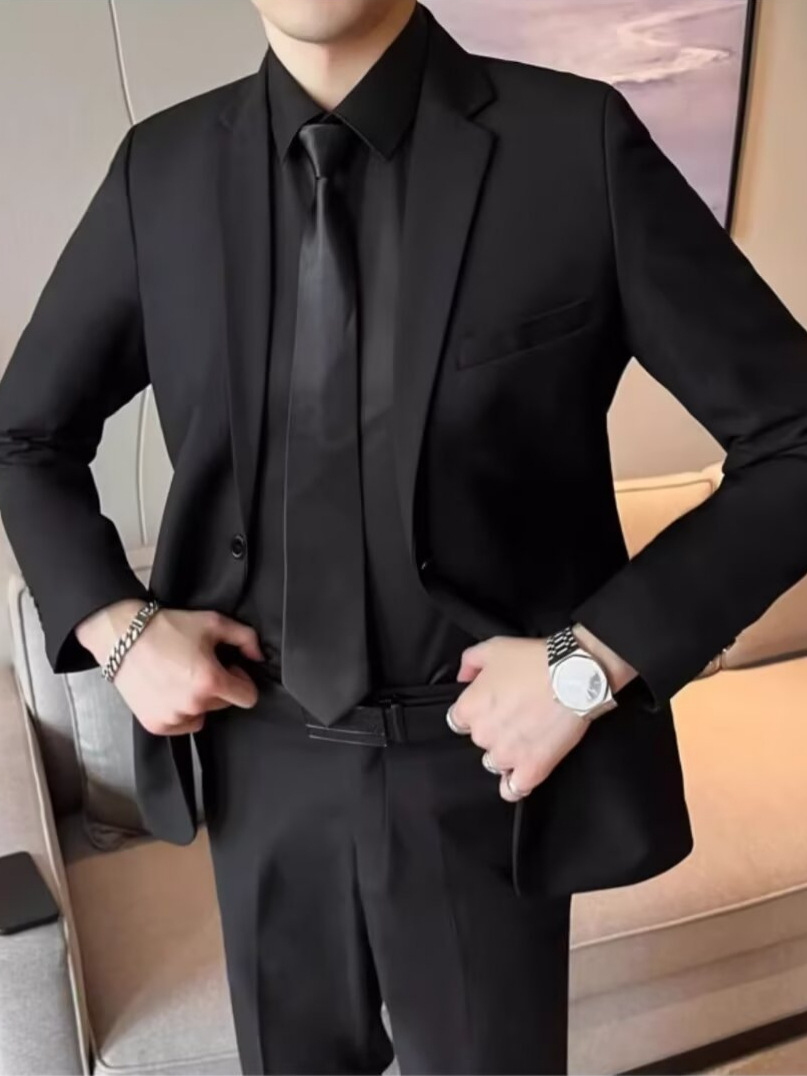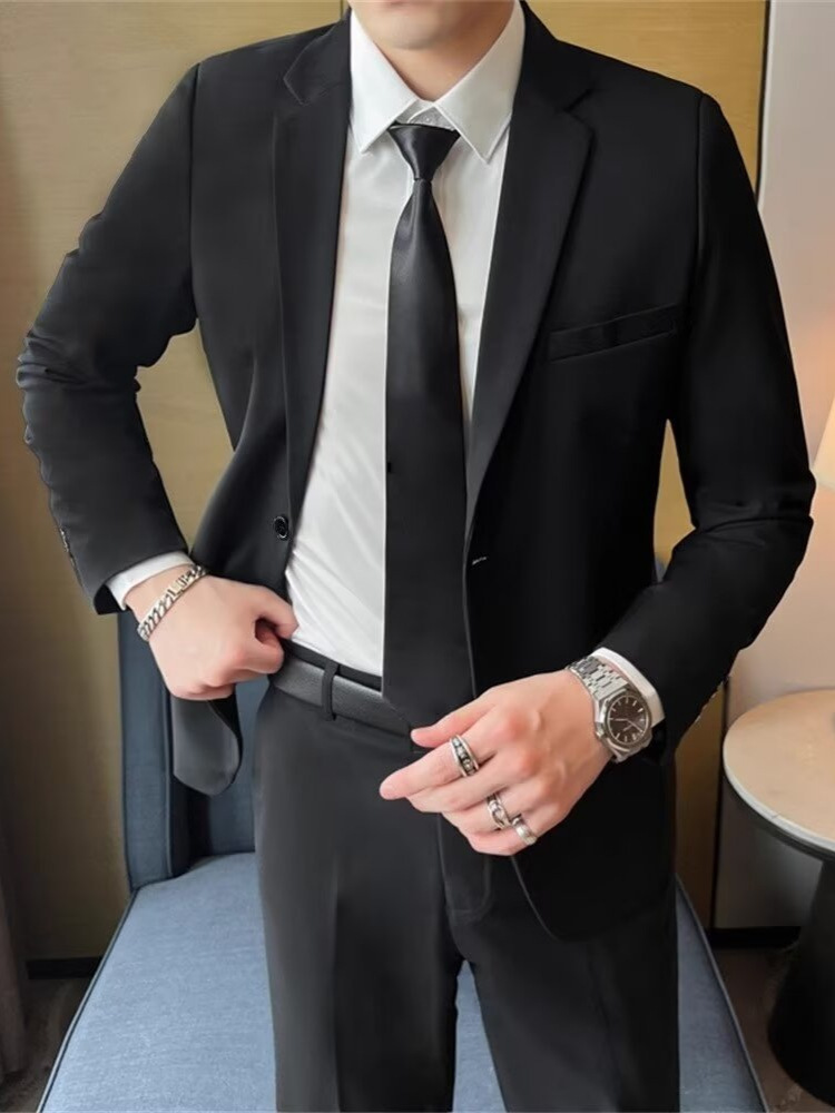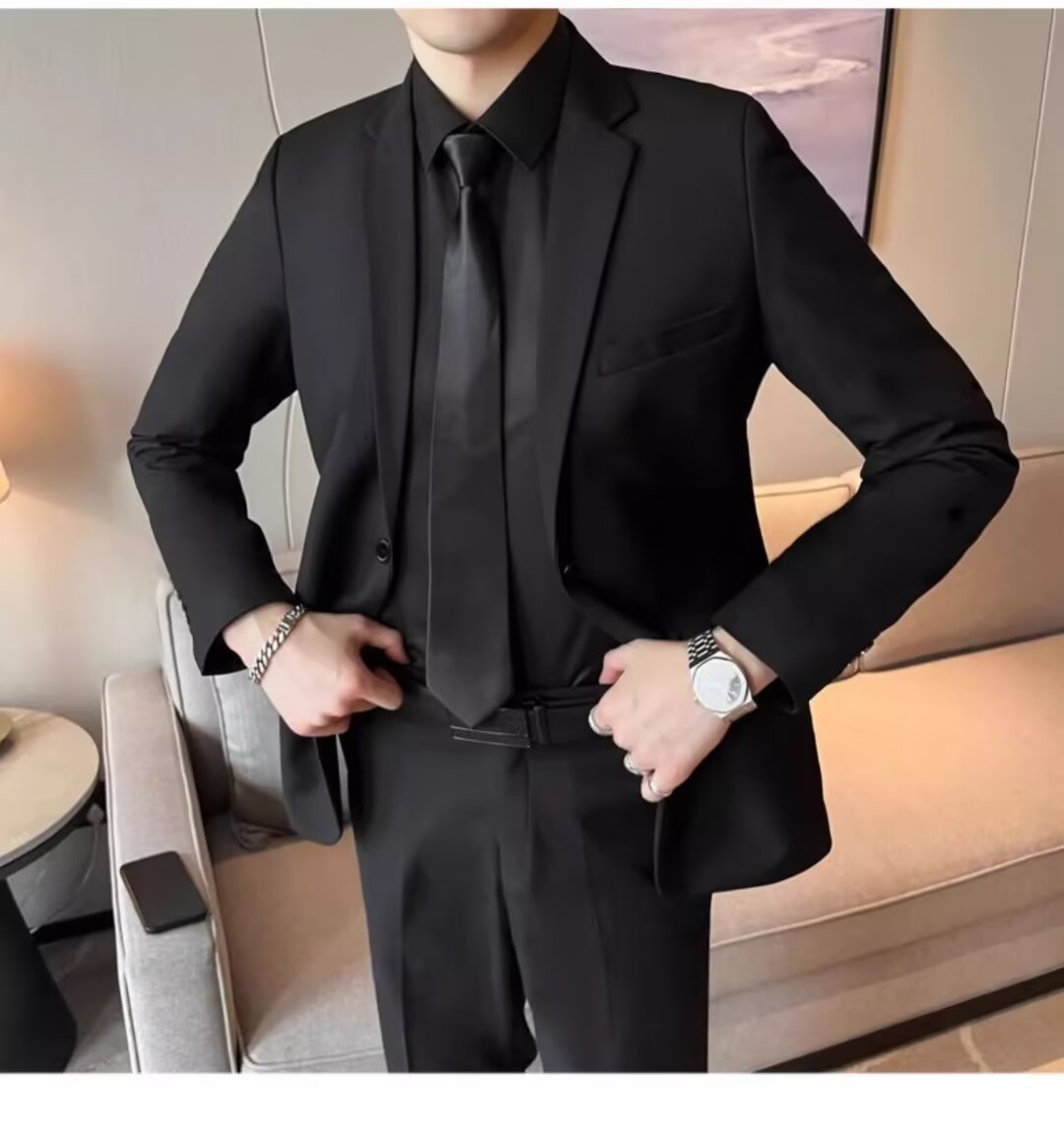 세트 남성 자켓 슬림핏 블랙 캐주얼 비즈니스 원피스 전문 한국 청소년 플러스 사이즈 베스트 맨 원피스 세트
