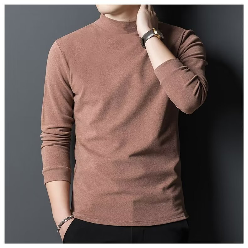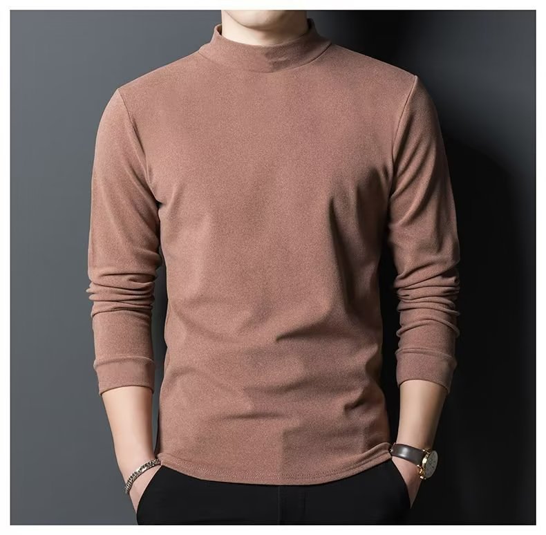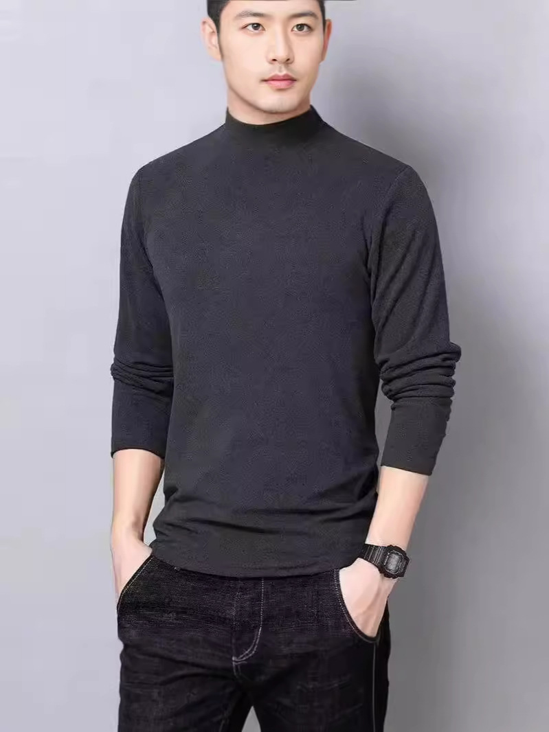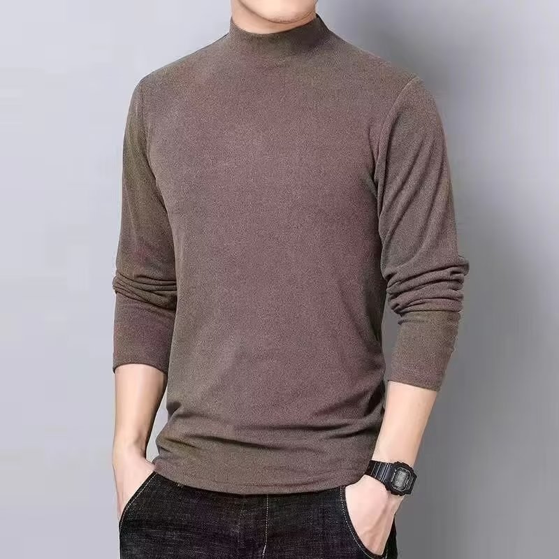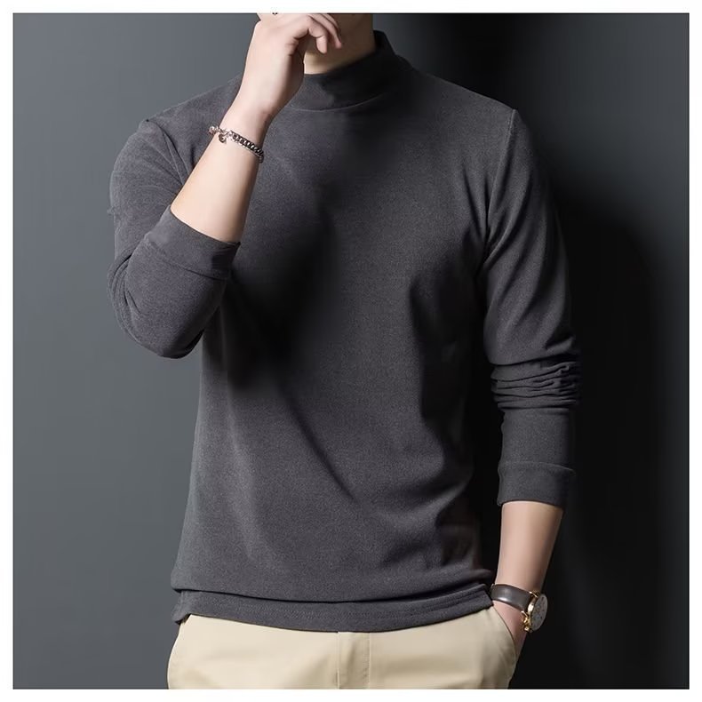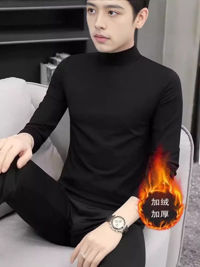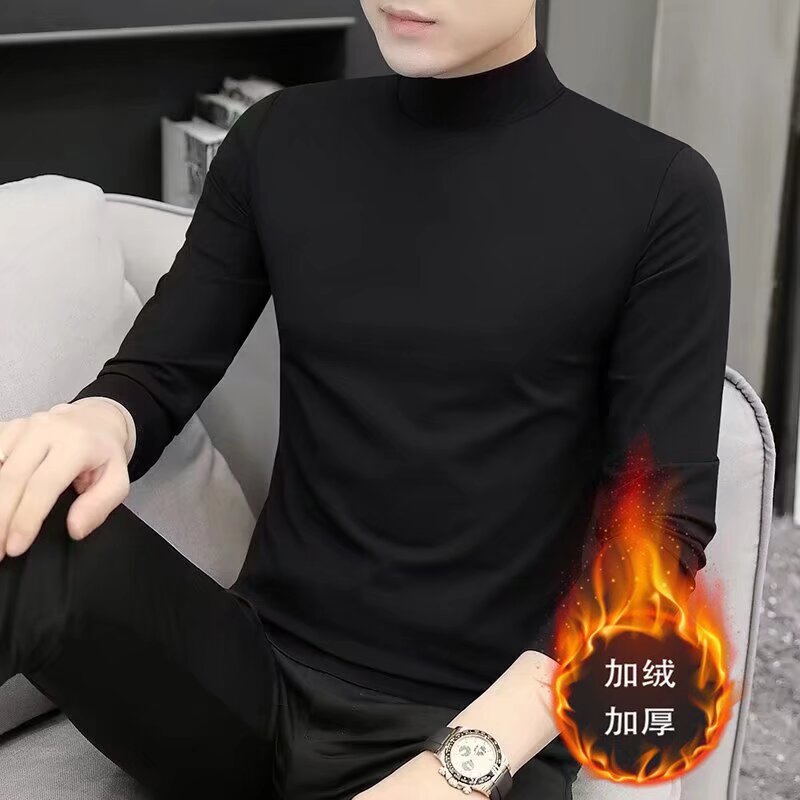 양털 반 높이 칼라 긴팔 티셔츠 남성용 가을과 겨울 슬림핏 솔리드 컬러 유행 의류 남성용 열 속옷베이스 셔츠