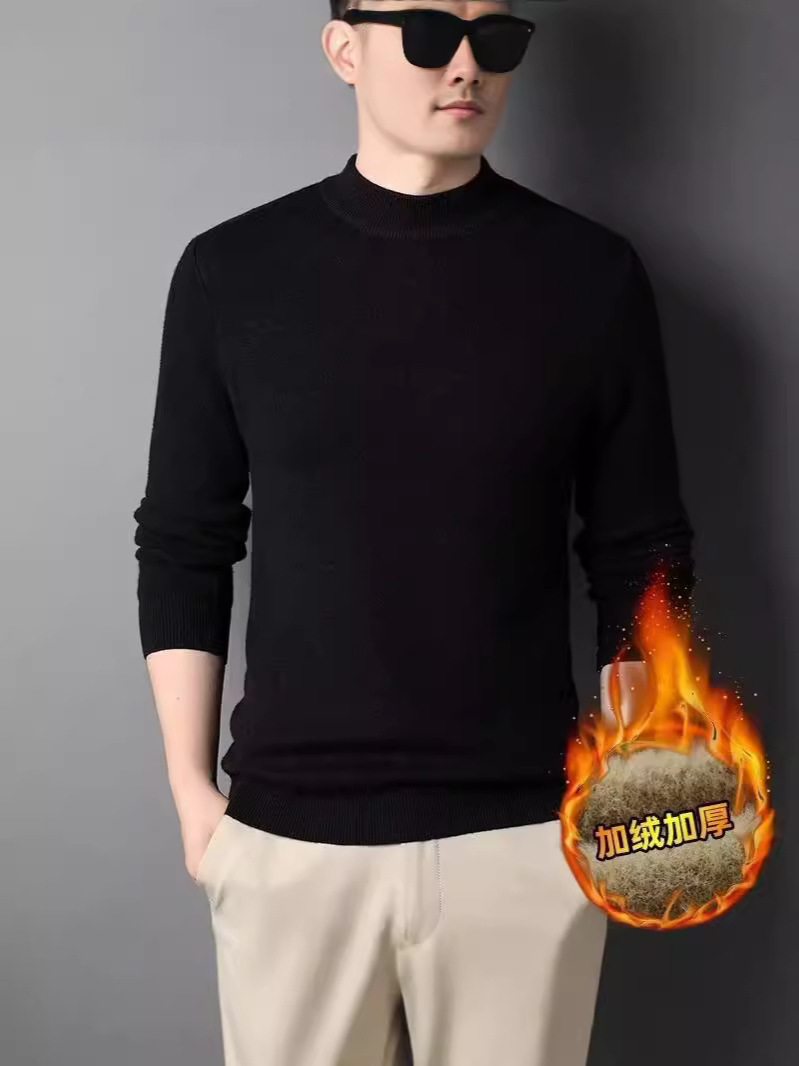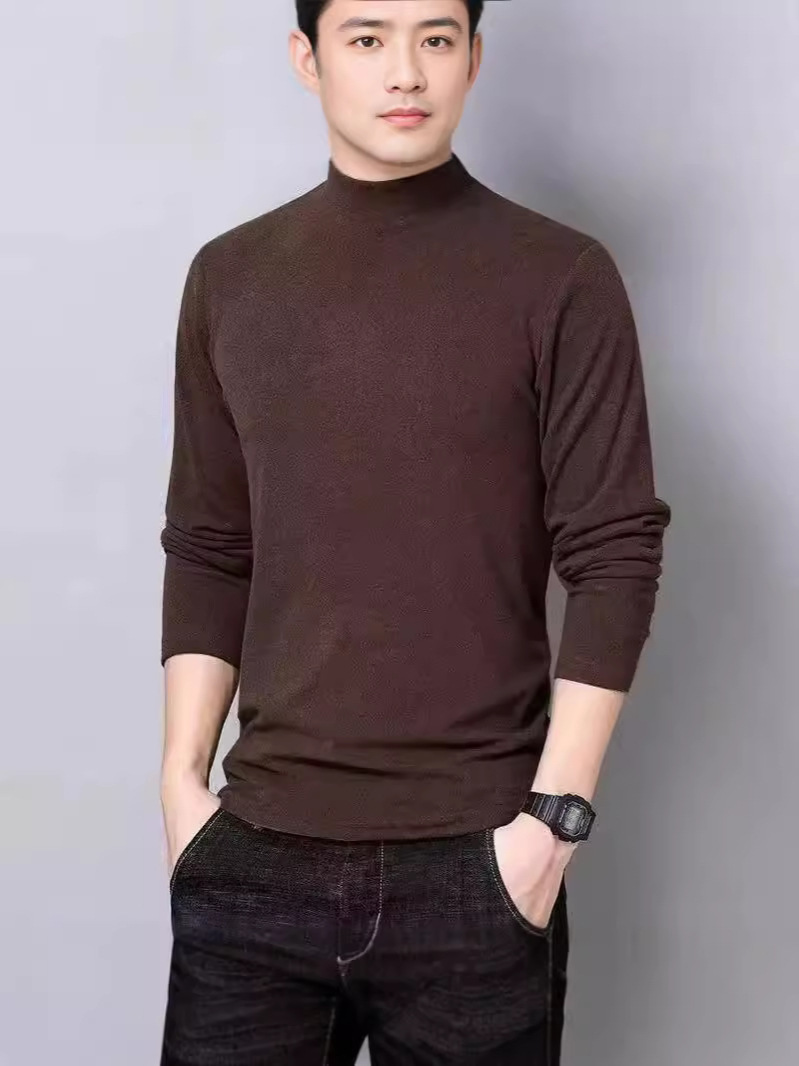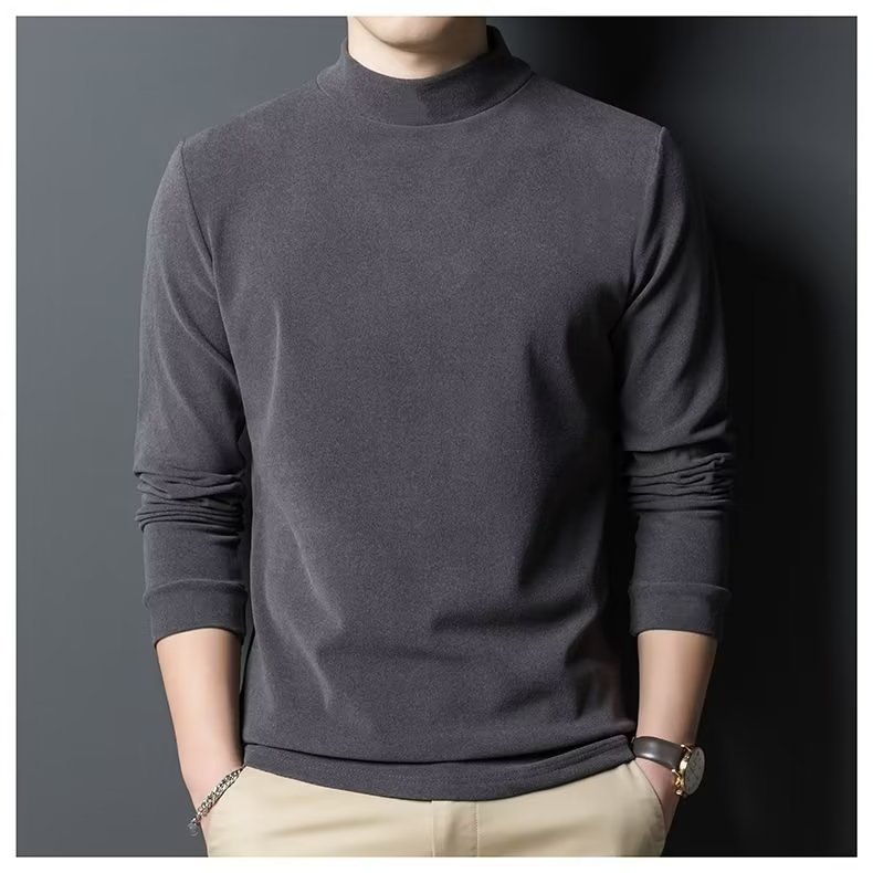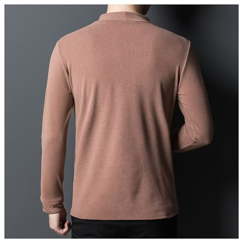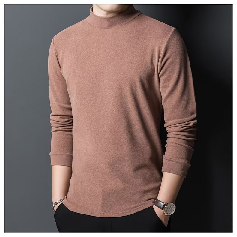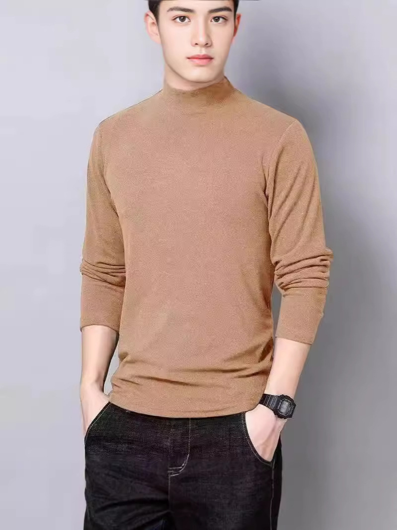 양털 반 높이 칼라 긴팔 티셔츠 남성용 가을과 겨울 슬림핏 솔리드 컬러 유행 의류 남성용 열 속옷베이스 셔츠