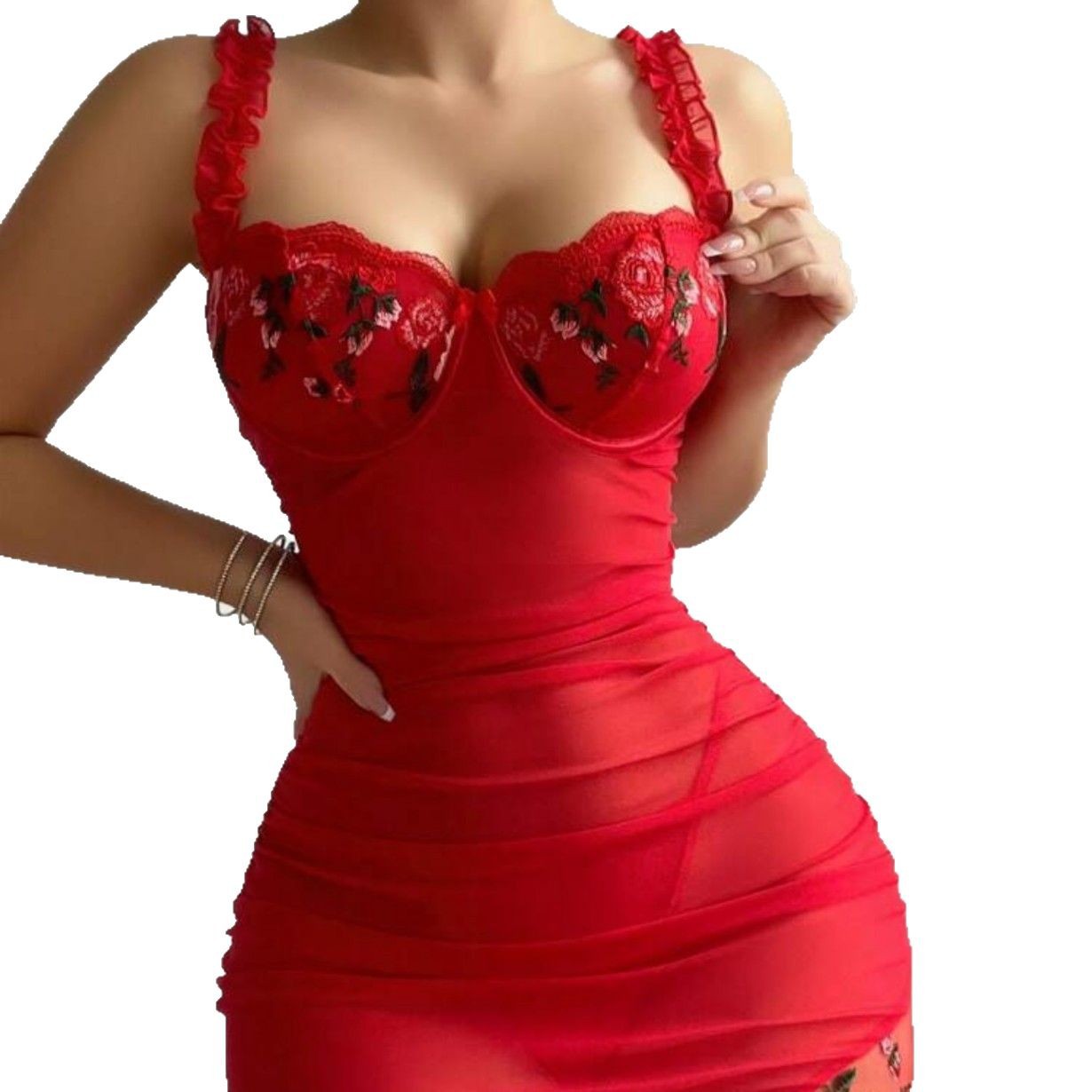 Dai Yan 국경 새로운 섹시한 란제리 레이스 관점 유혹 자수 나이트 드레스 Thong 타이트 힙 원피스
