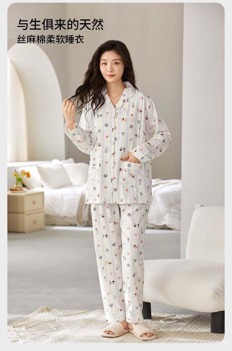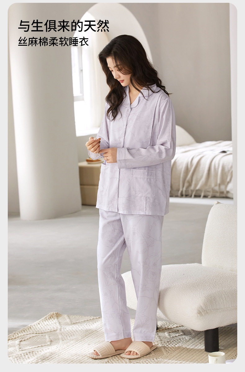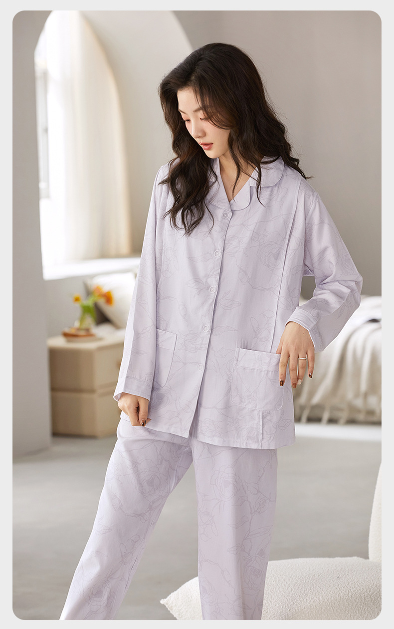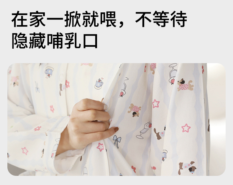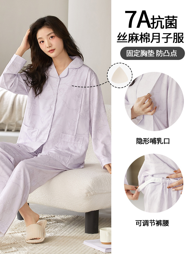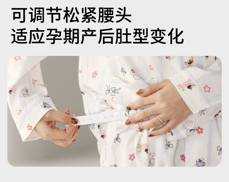 休闲外出孕妇月子服睡衣上衣有哺乳口,裤子可调节大小。