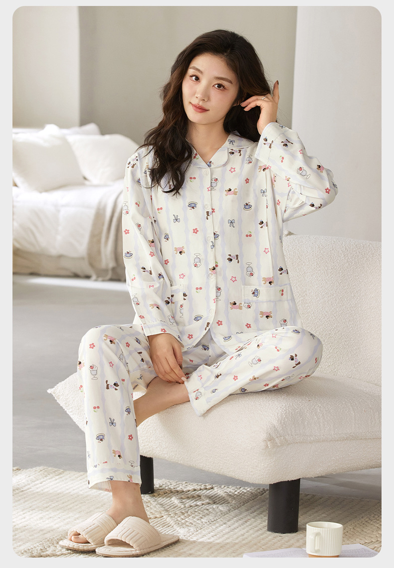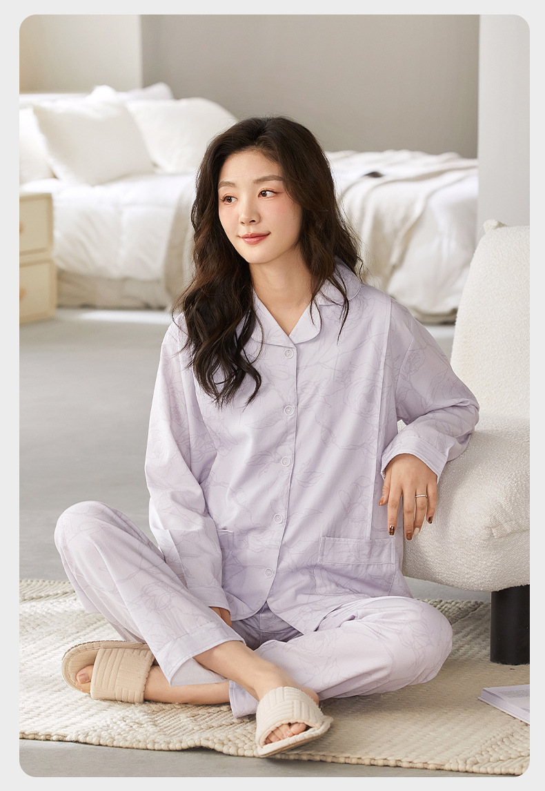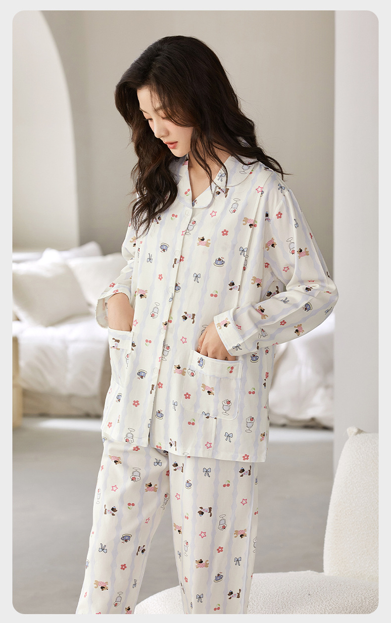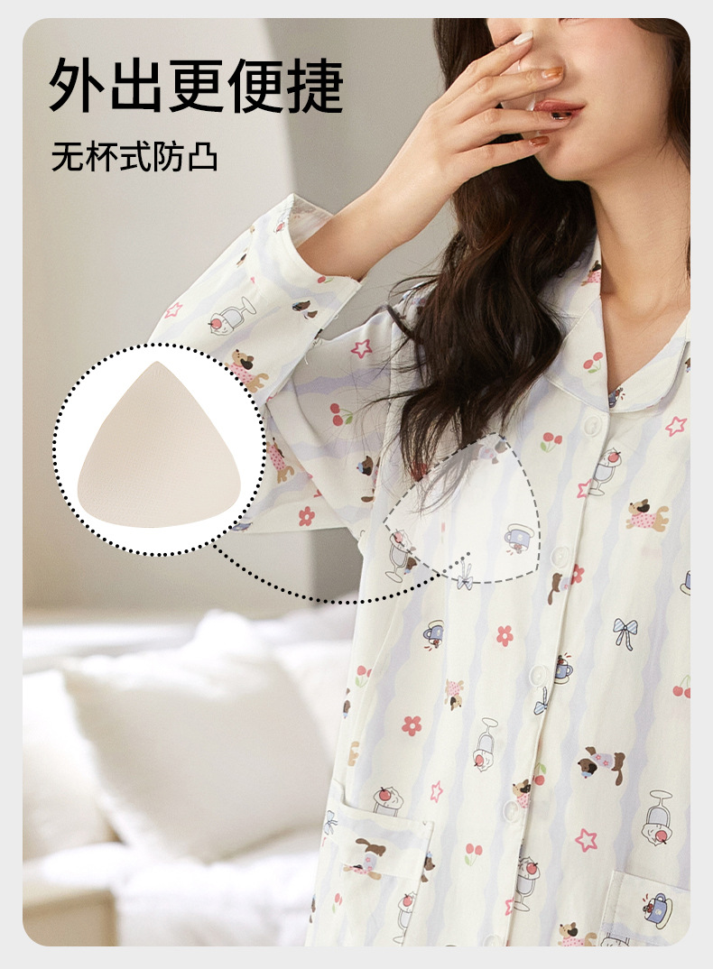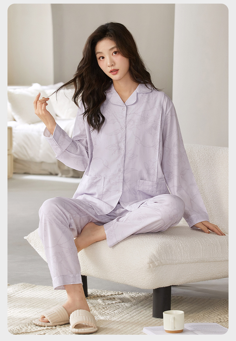 休闲外出孕妇月子服睡衣上衣有哺乳口,裤子可调节大小。