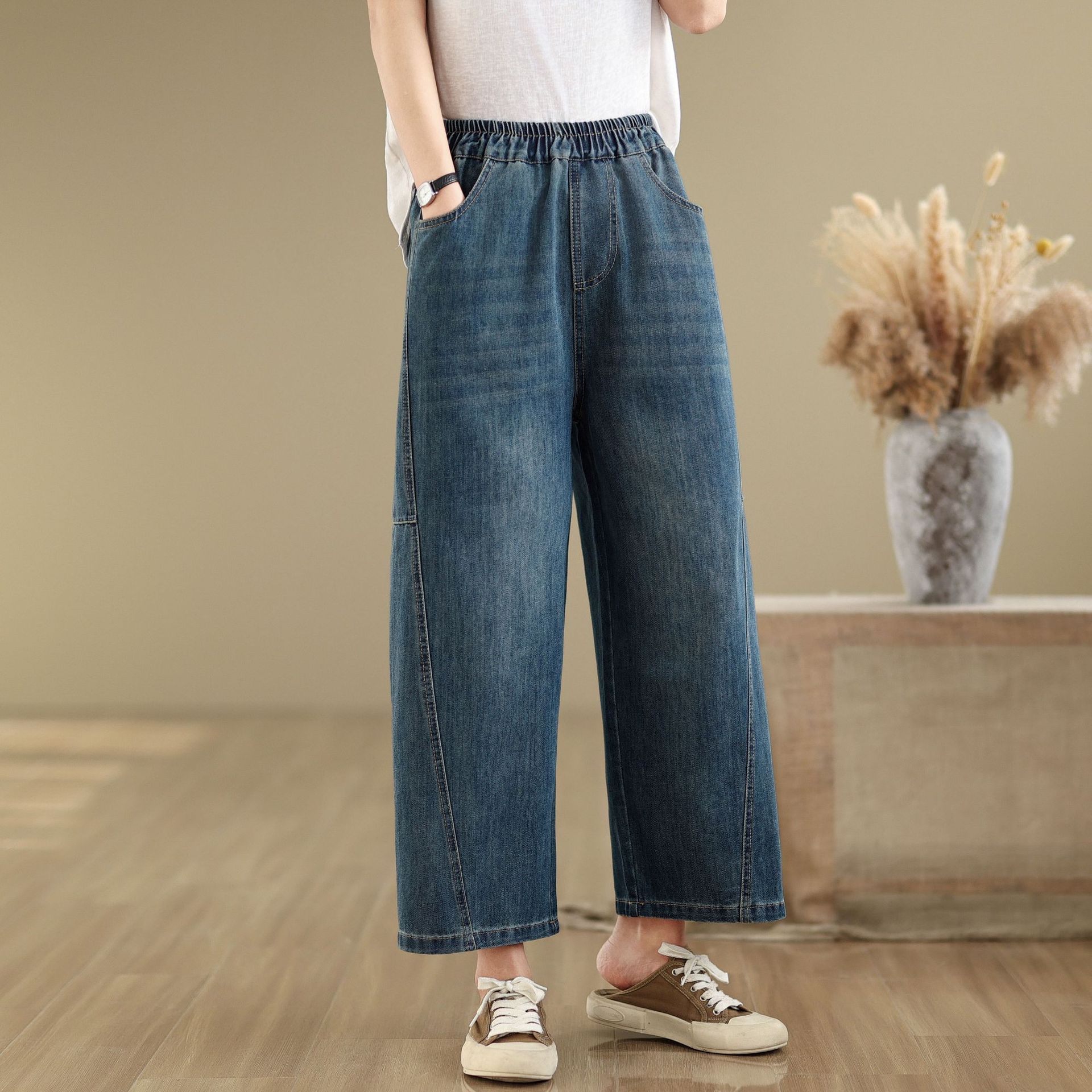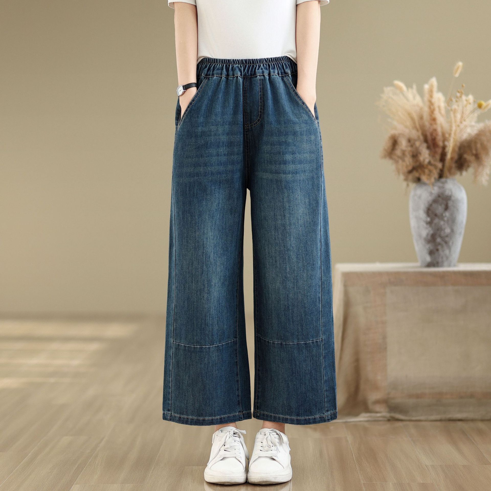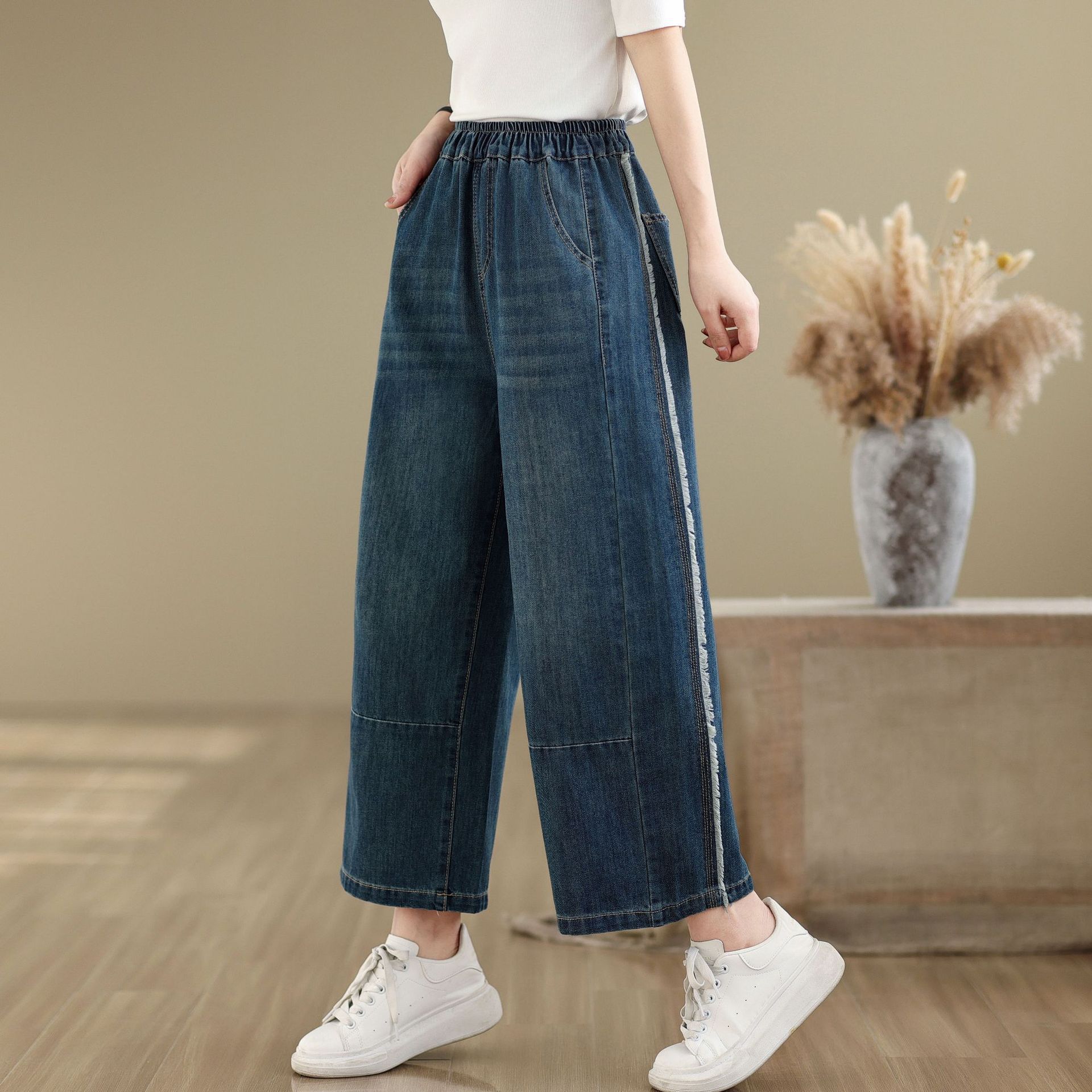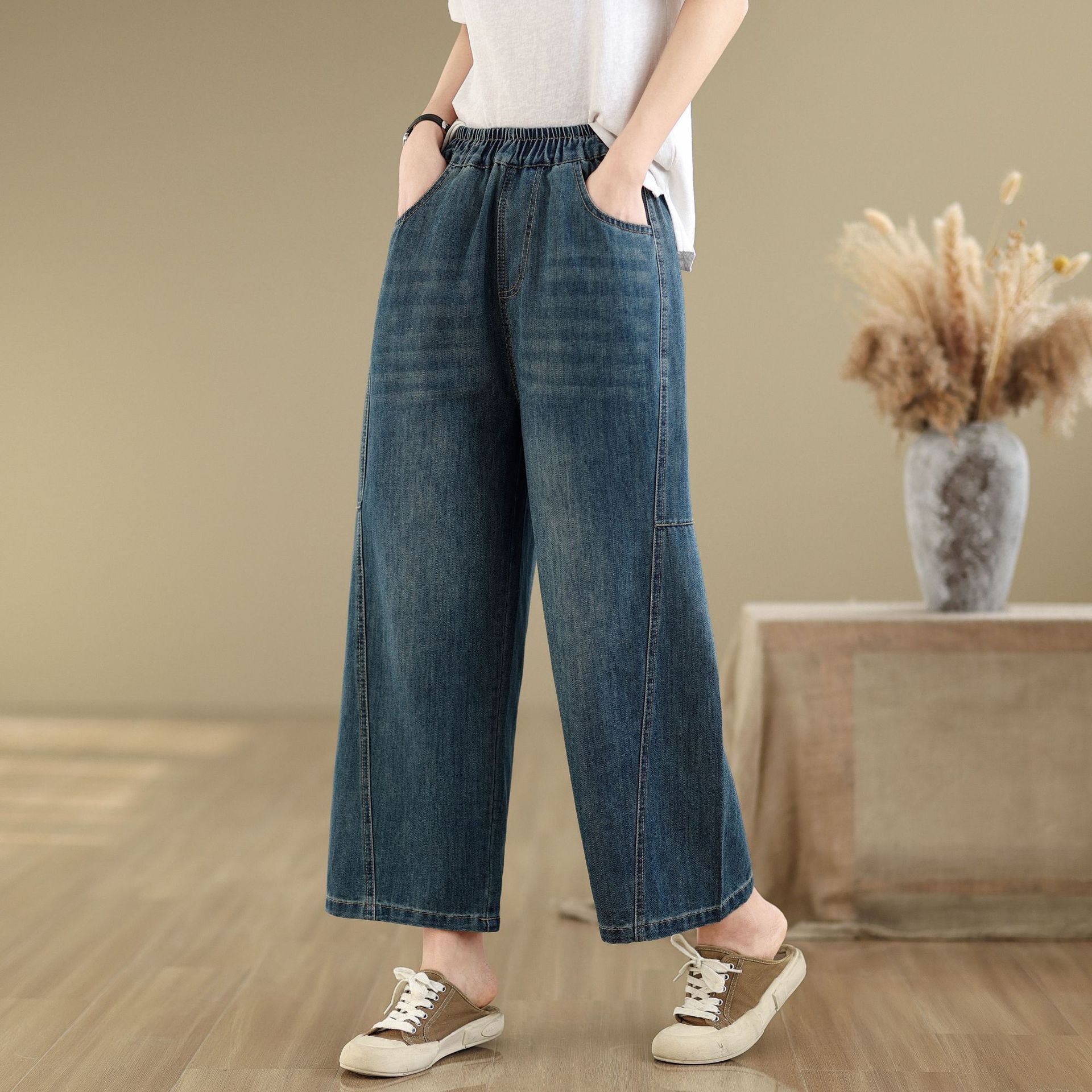 한국 스타일 새로운 빈티지 단색 바느질 플라크 스트레이트 다리 바지 느슨한 높은 허리 스트레이트 레그 청바지