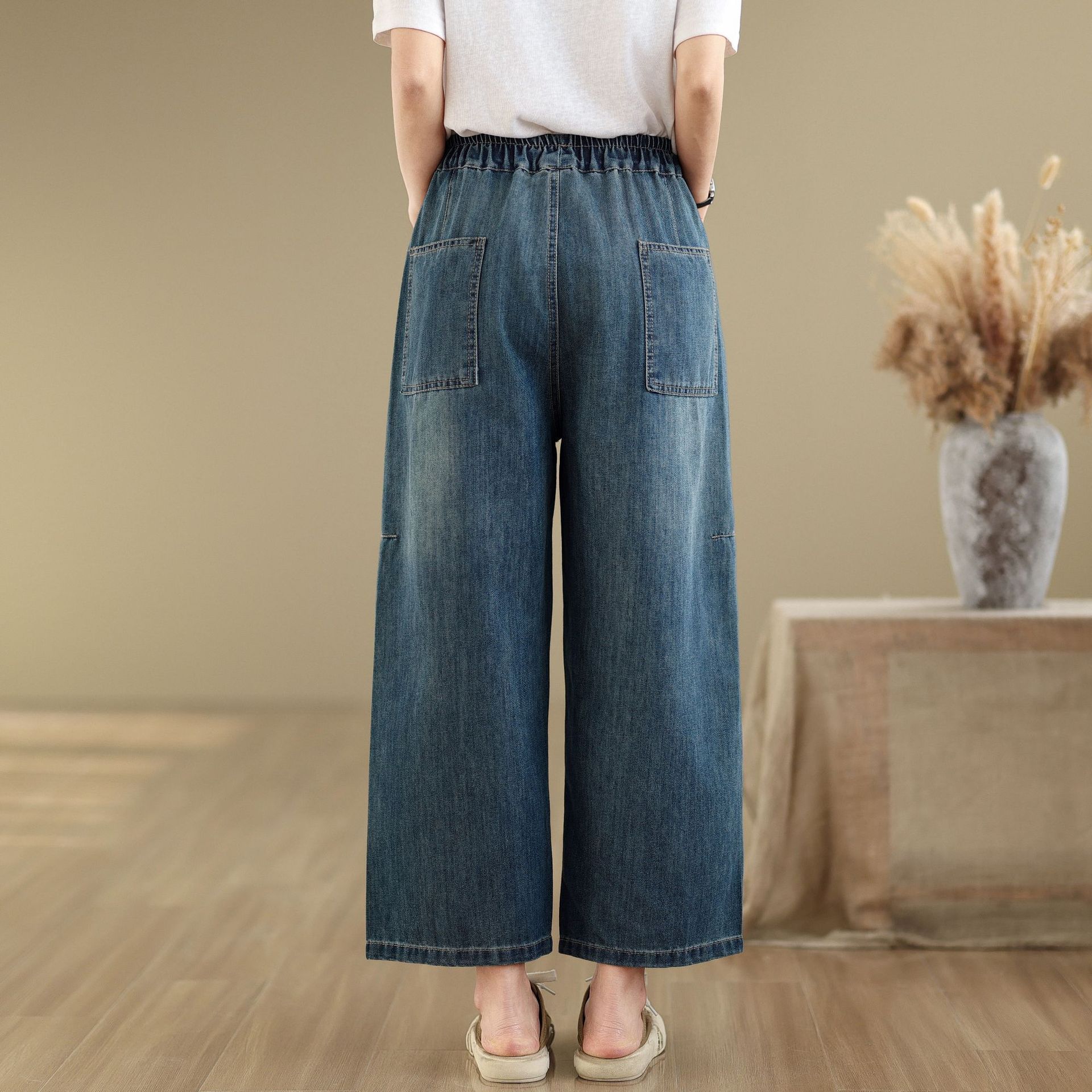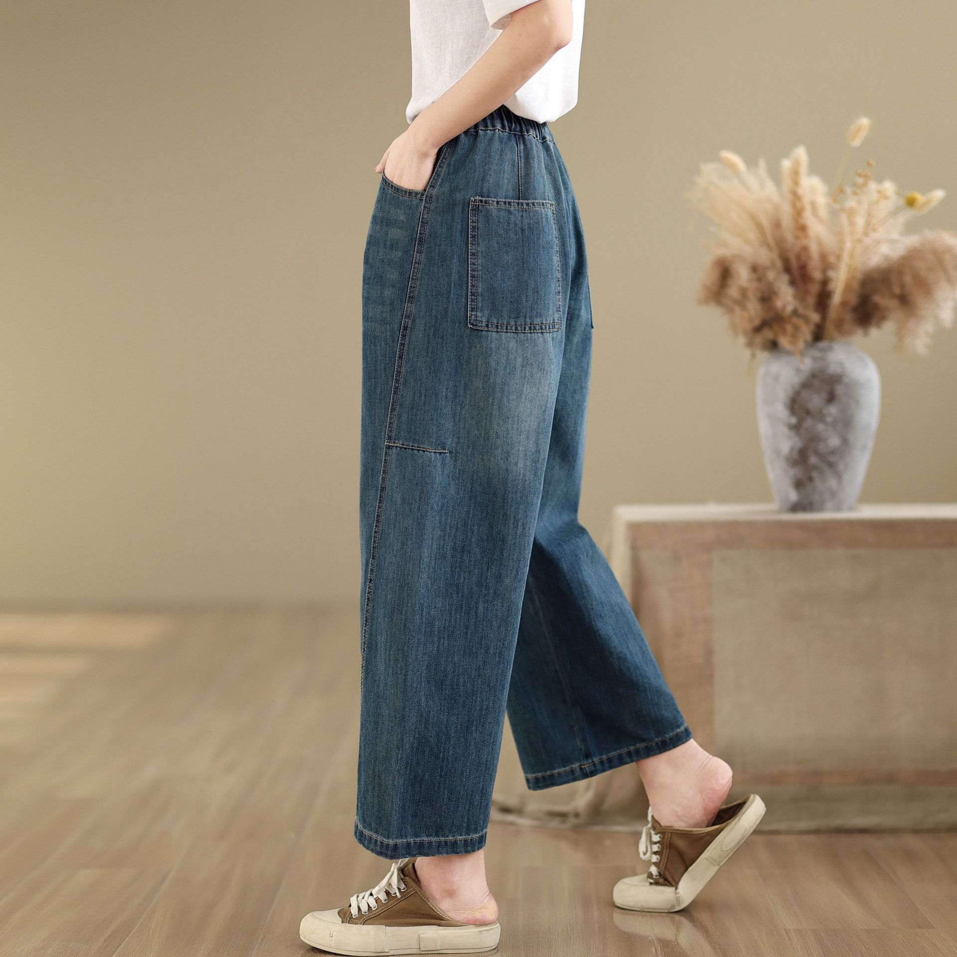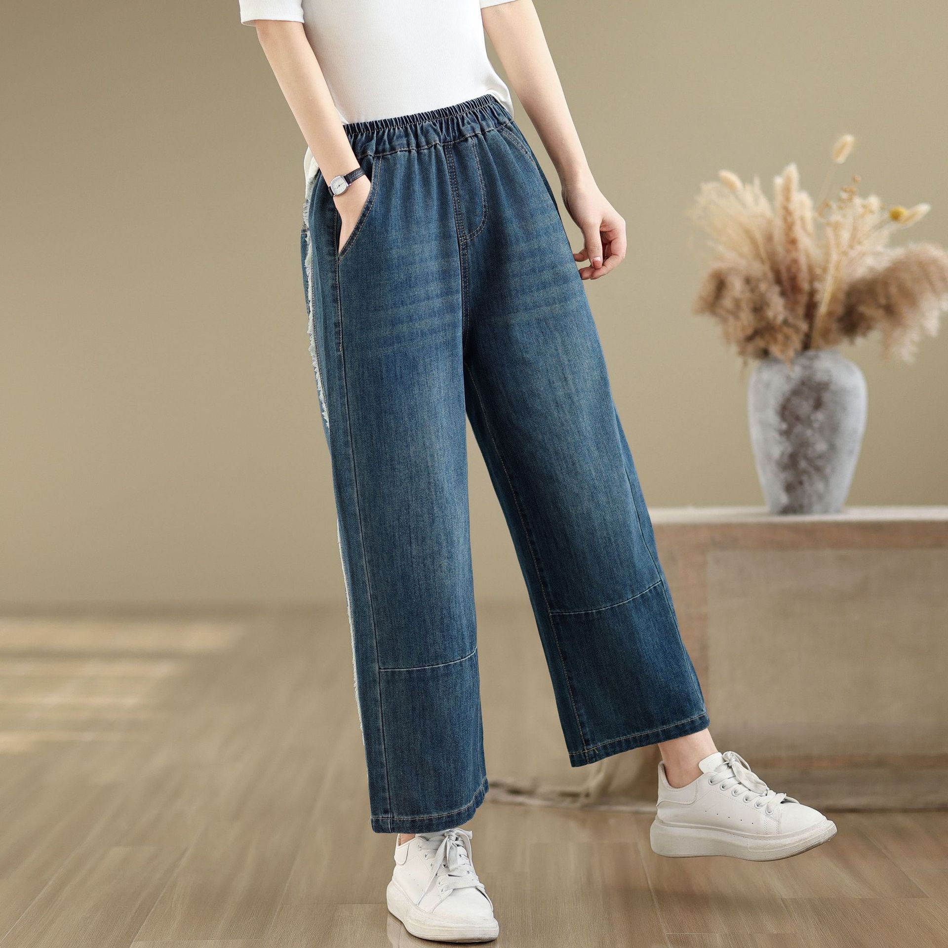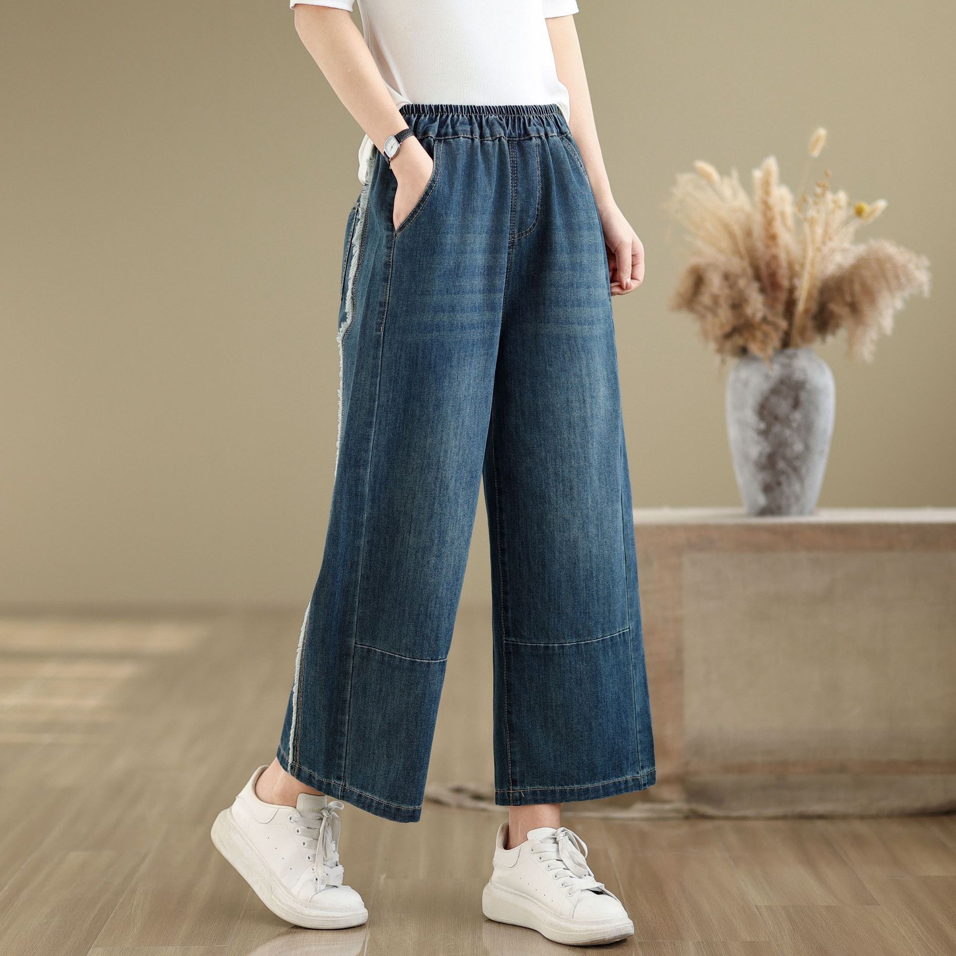 한국 스타일 새로운 빈티지 단색 바느질 플라크 스트레이트 다리 바지 느슨한 높은 허리 스트레이트 레그 청바지