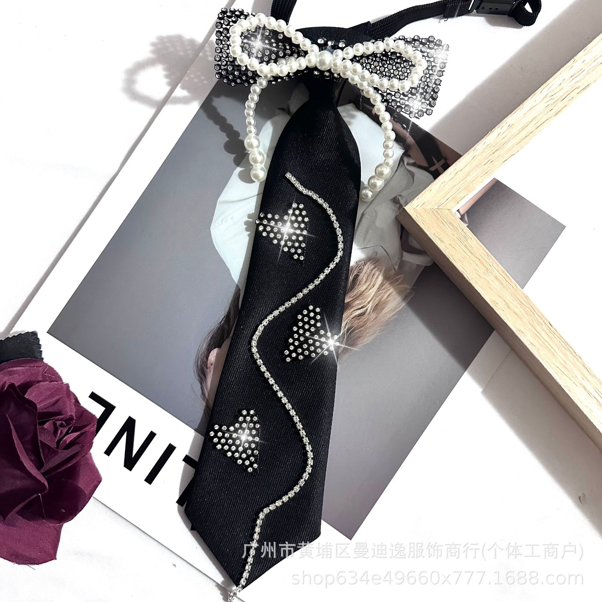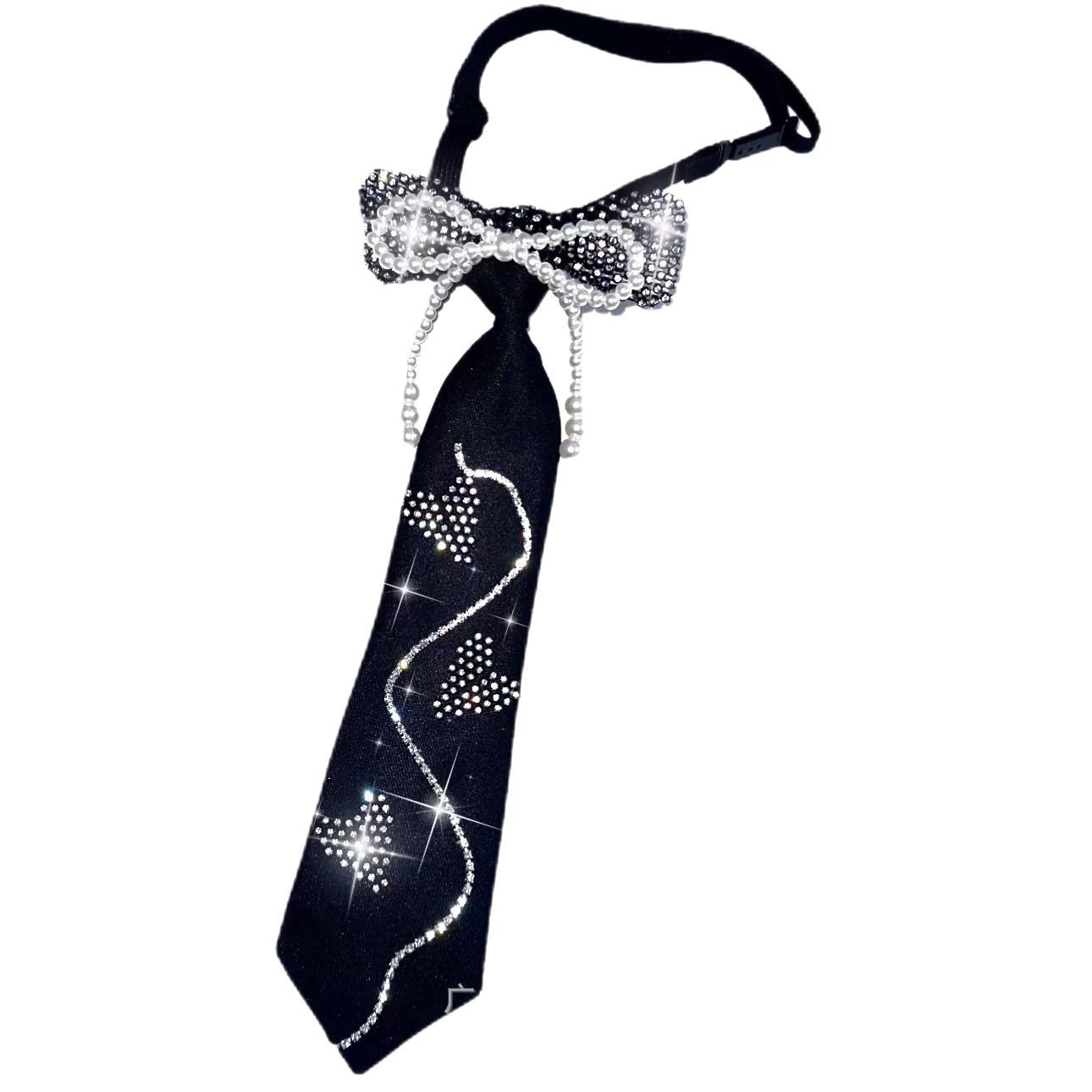 2023 새로운 학생 스타일 대학 스타일 셔츠 활 넥타이 여성 플래시 다이아몬드 활 내 쿨 스위트 JK 타이 트렌디