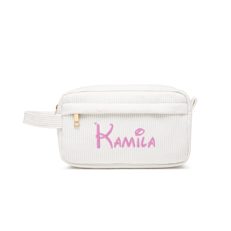 Etsy 개인화 된 자수 새로운 코듀로이 화장품 가방 보석 동전 지갑 휴대용 미니 가방 여성용 보관 가방