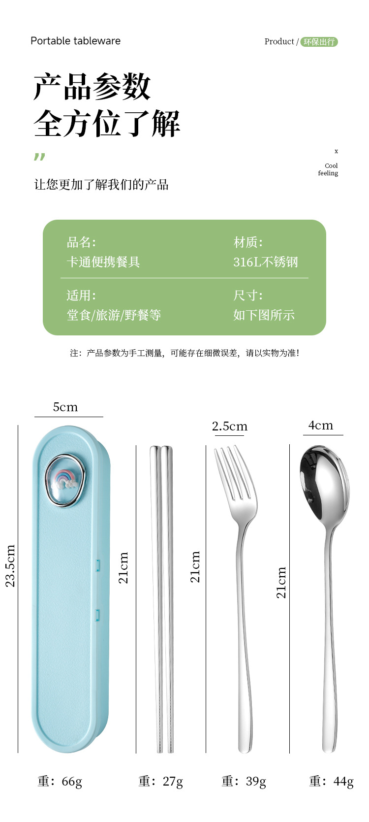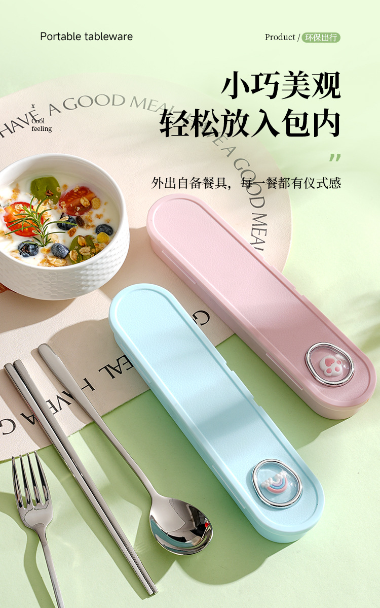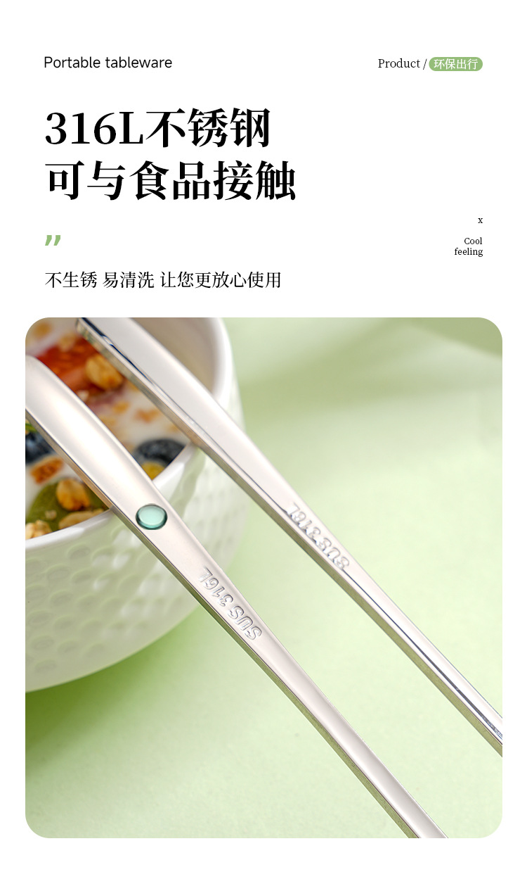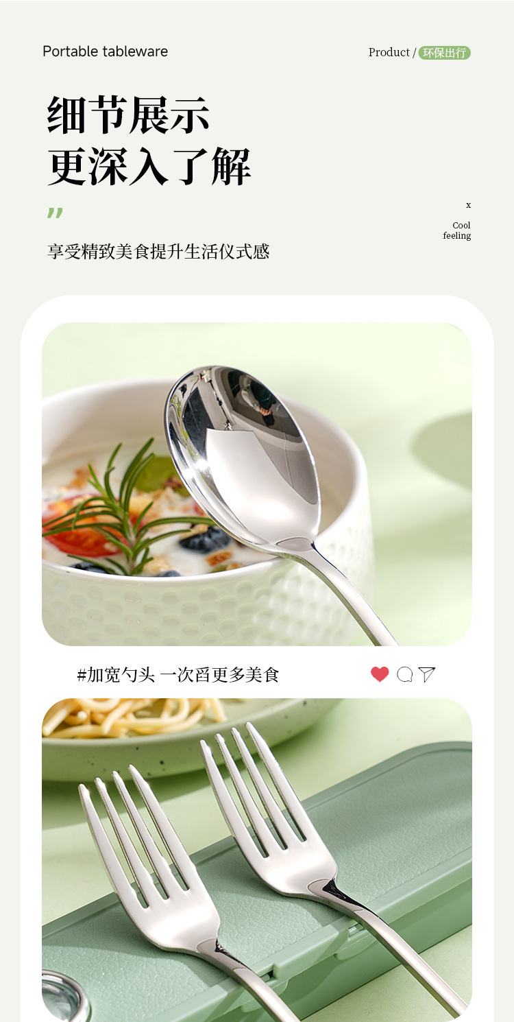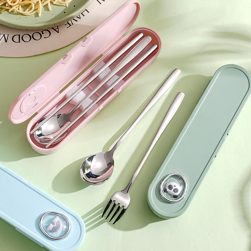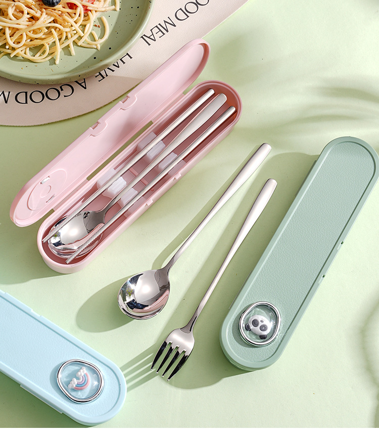 2025 새로운 316 스테인리스 휴대용 식기 숟가락 젓가락 세트 야외 여행 3 조각 학생 식기