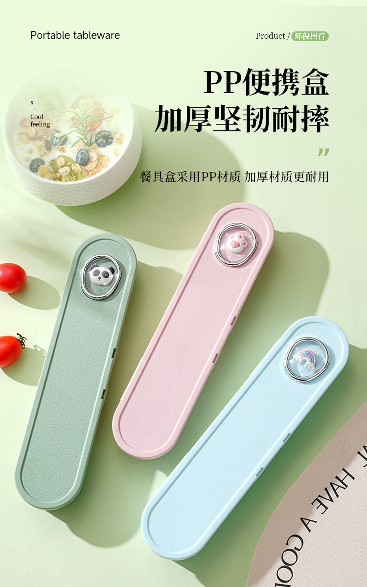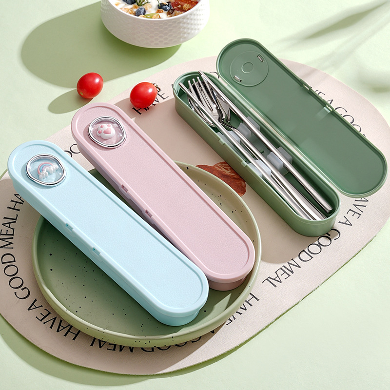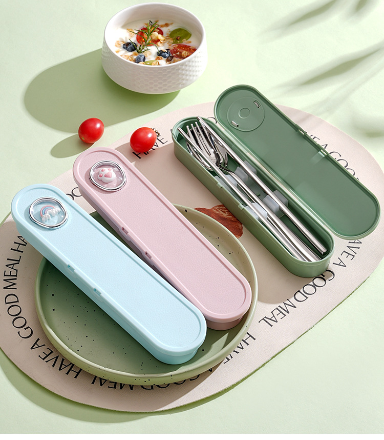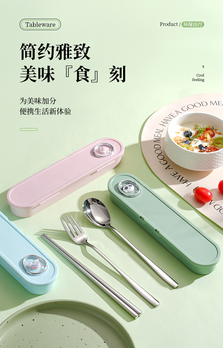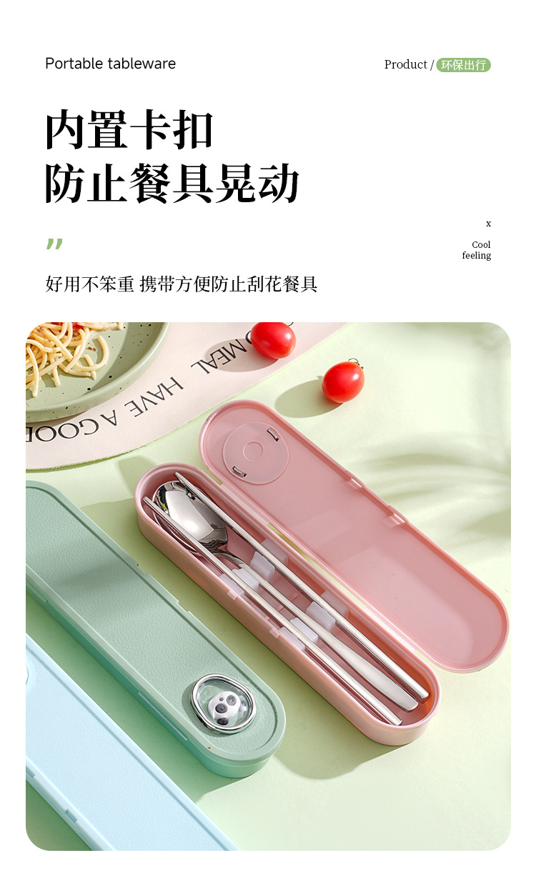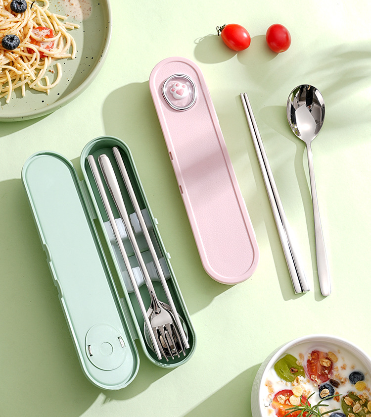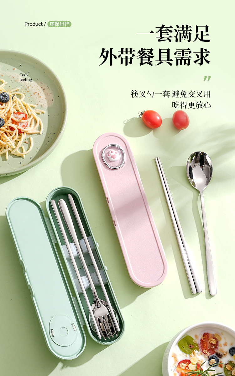 2025 새로운 316 스테인리스 휴대용 식기 숟가락 젓가락 세트 야외 여행 3 조각 학생 식기
