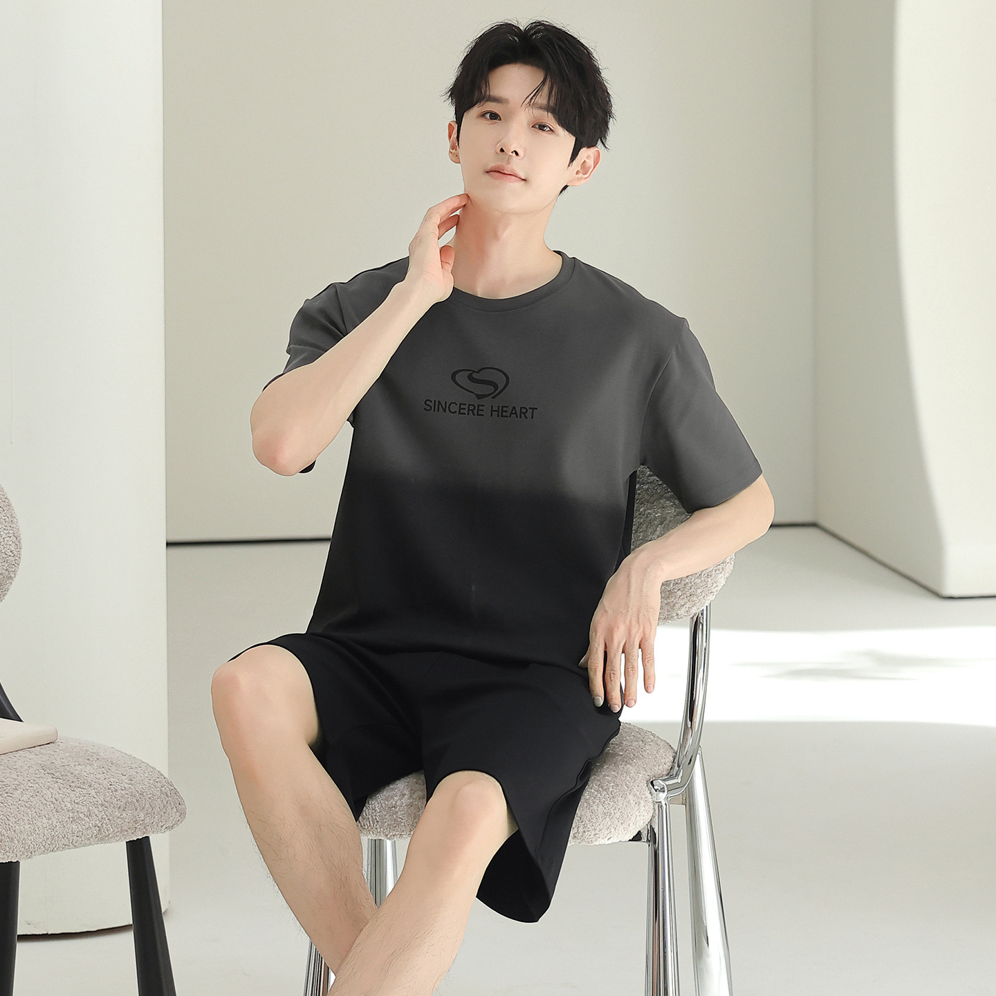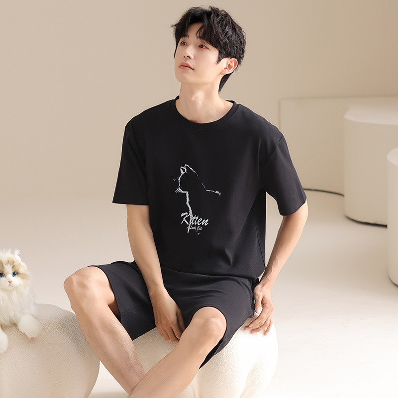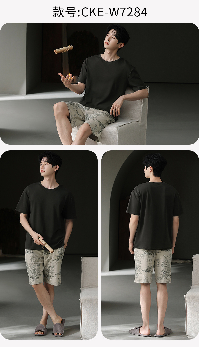 외부에서 착용 가능한 순면 잠옷, 남성용 여름 캐주얼 반팔 반바지, 플러스 사이즈 홈웨어 세트, 신상품 풀오버