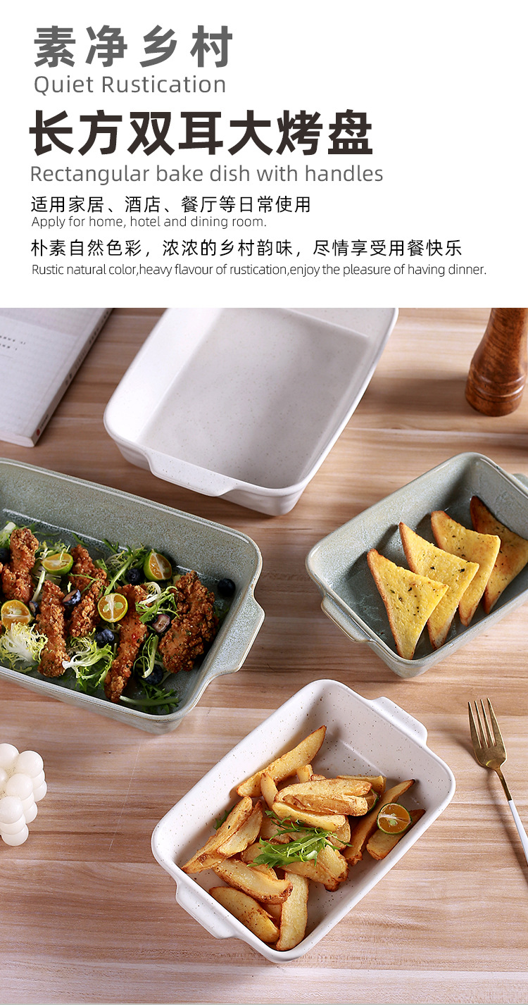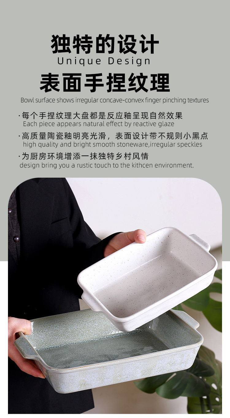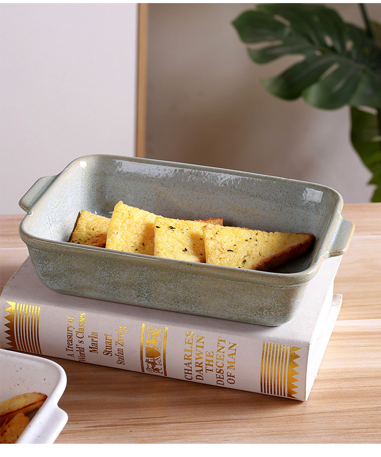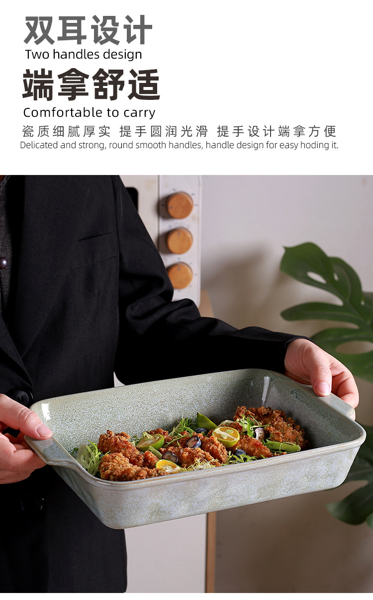 북유럽 스타일의 가마에서 구운 사각 스테이크 접시, 아마존 전용, 레스토랑 및 식당에서 사용 가능, 고급스러운 식기