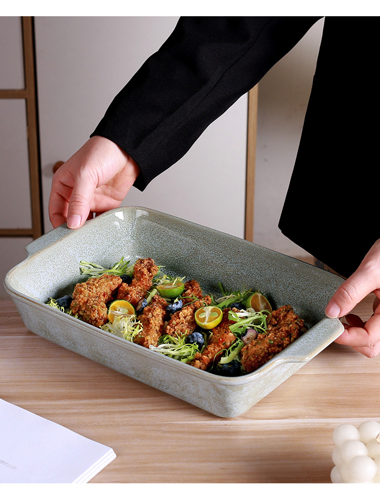 9inch 이중 귀 베이킹 팬 - 녹색 반응 유약