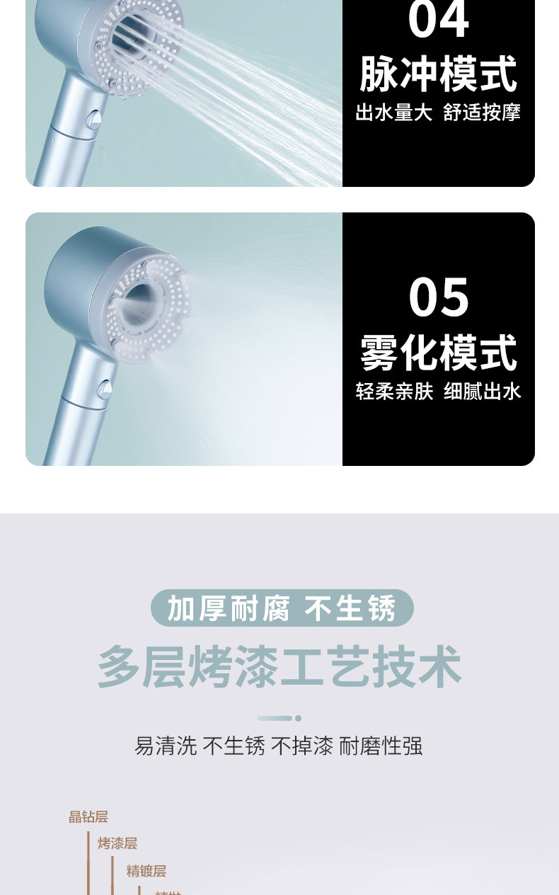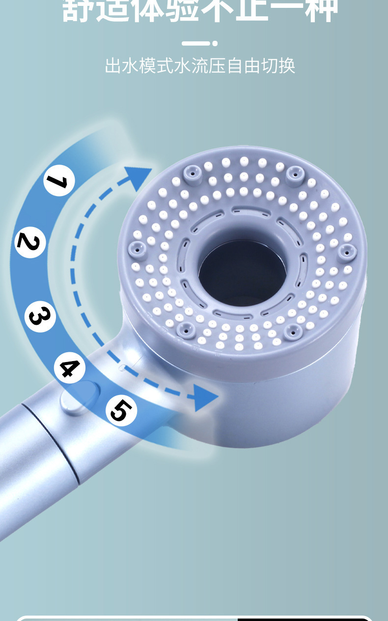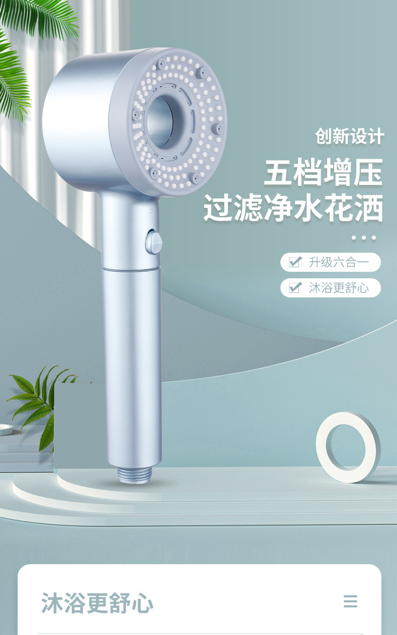 국경 간 5 블록 그물 빨간 헤어 드라이어 샤워 헤드 원 키 워터 스톱 5 기능 가압 목욕 샤워 헤드 영어 컬러 박스