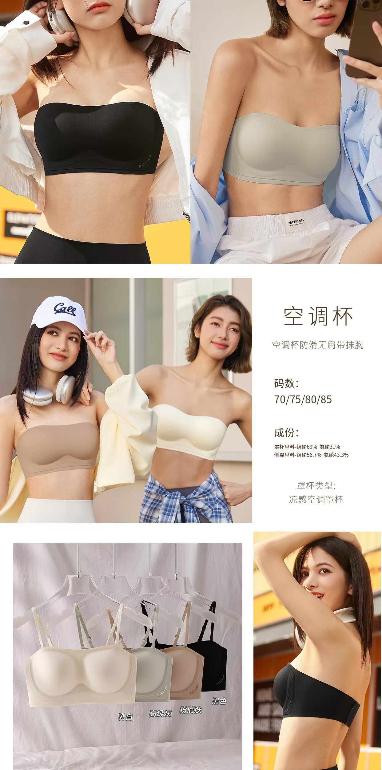 얇은 스트랩리스 푸쉬업 파운데이션 스킨 브라 미끄럼 방지 탑 브라 편안한 백리스 봄 여름 무봉제 인비저블 브라 6073