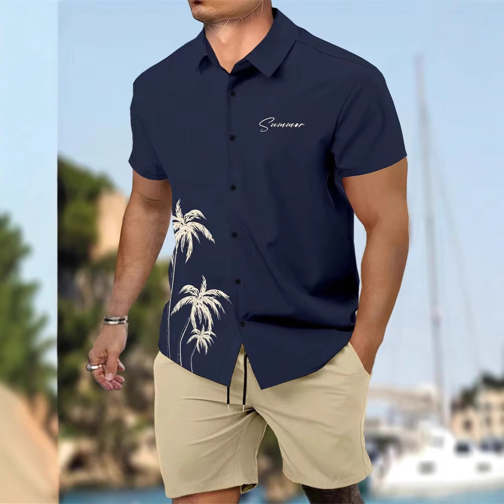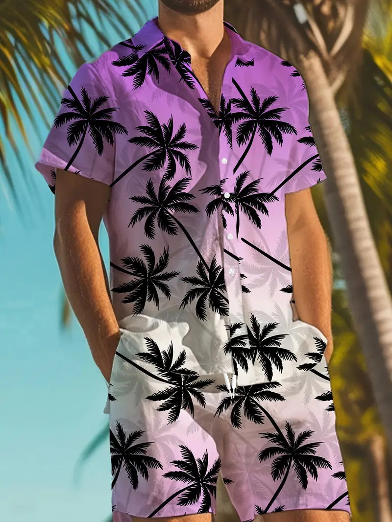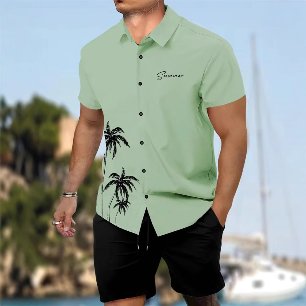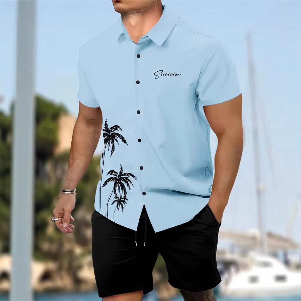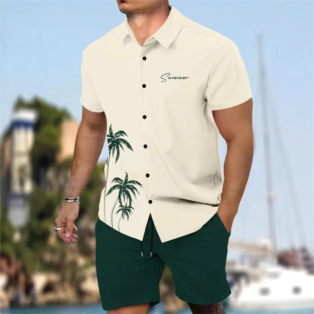 크로스 국경 AliExpress 남자의 새로운 패션 하와이 짧은 소매 반바지 비치 스타일 캐주얼 프린트 셔츠 세트 남성