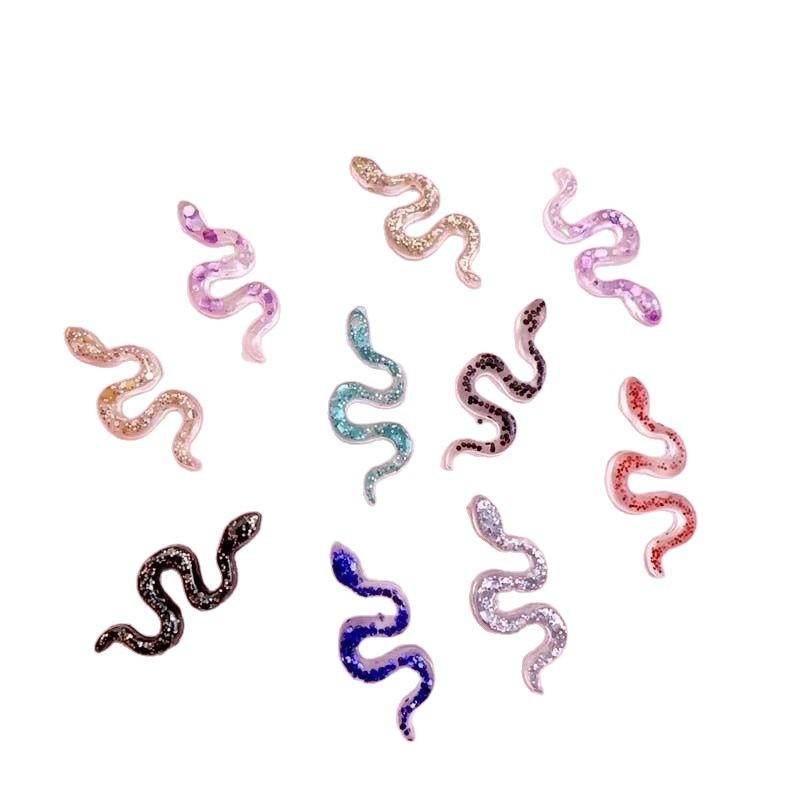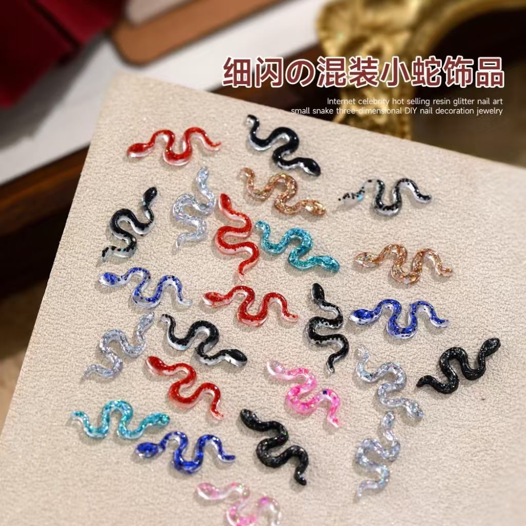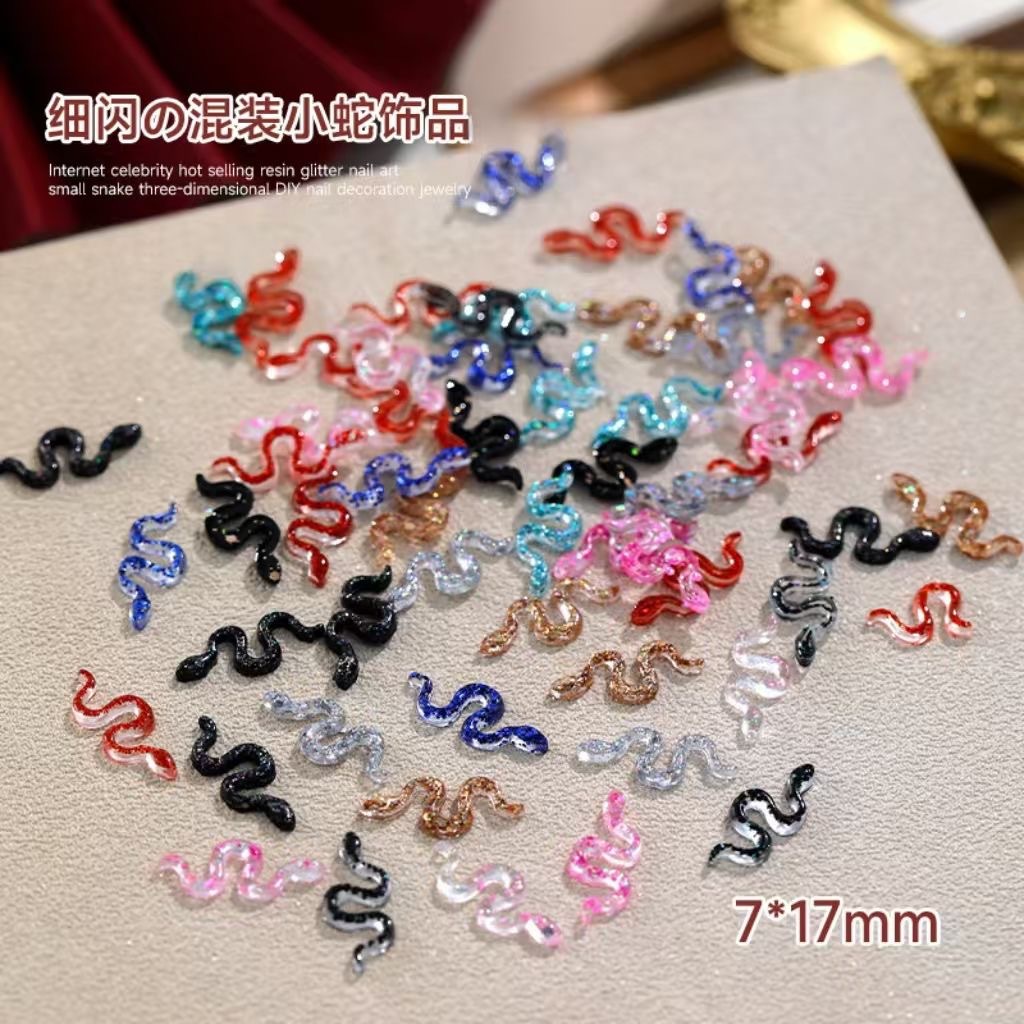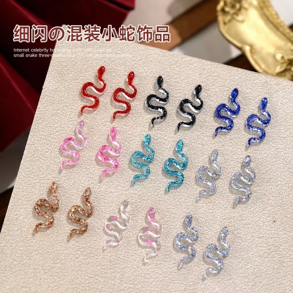 혼합 고급 플래시 네일 작은 뱀 보석 미니 슈퍼 반짝이는 3 차원 시뮬레이션 수지 뱀 네일 액세서리 도매