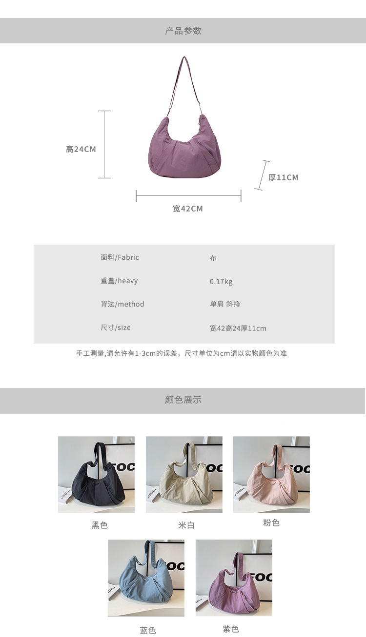 국경 간 2025 새로운 경량 주름 만두 가방 여성 가방 캐주얼 크로스 바디 가방 대용량 다목적 솔리드 컬러 숄더 백