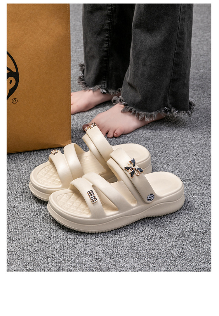 여름 새로운 두꺼운 나비가 장식 된 여성 슬리퍼 야외 해변 신발 캐주얼 실내 여성용 샌들