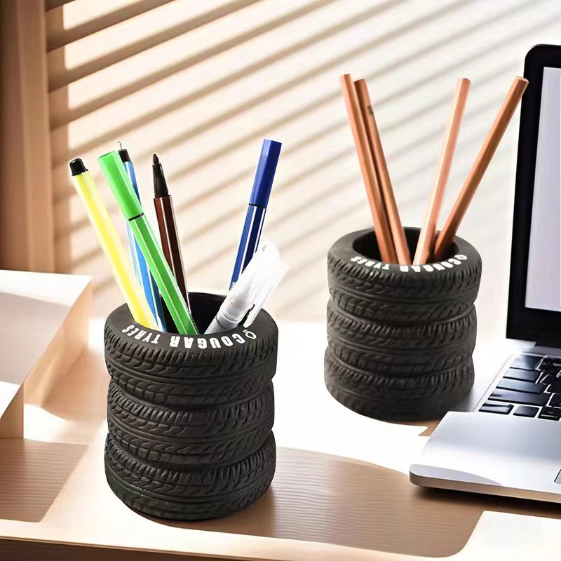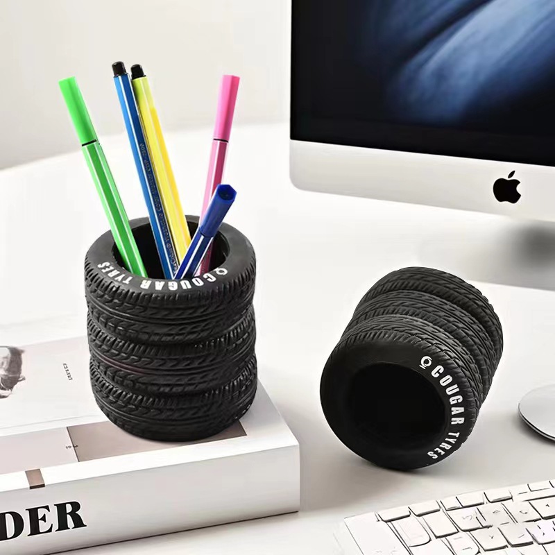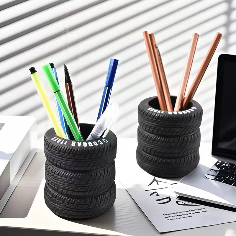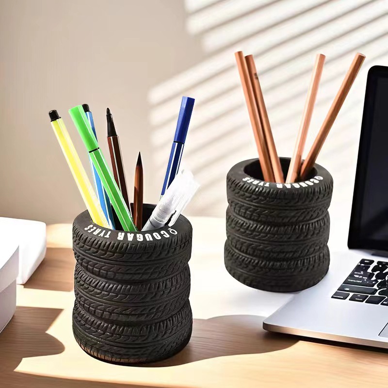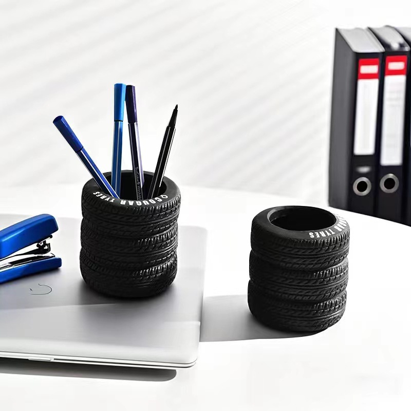 타이어 펜 컨테이너 사무실 데스크탑 장식품 창조적 인 학생 다기능 저장 컨테이너 틈새 하이 엔드 장식 펜 컨테이너