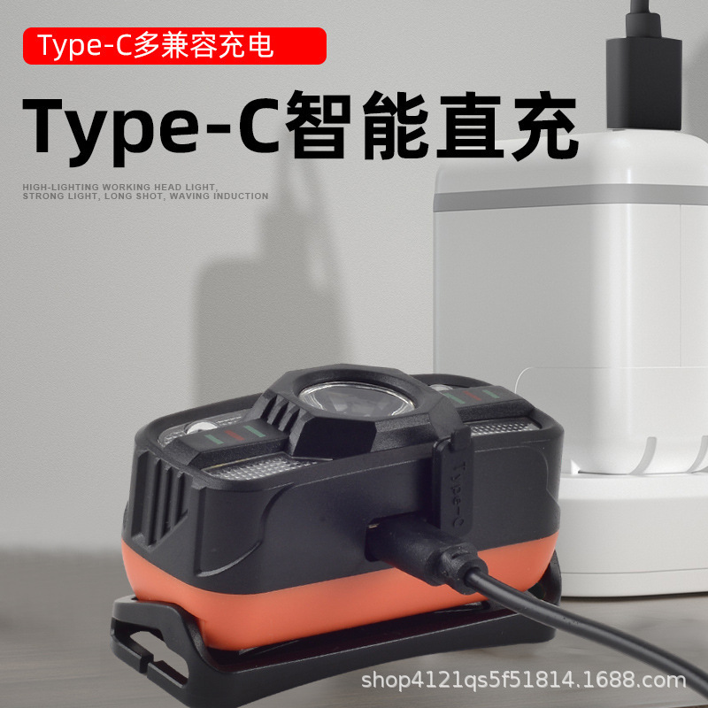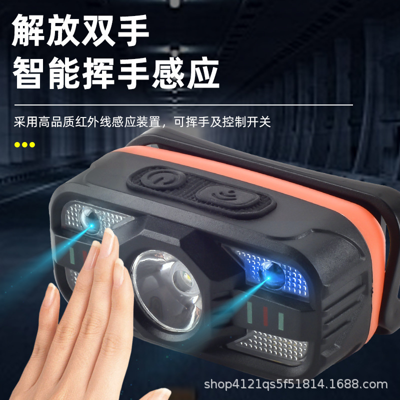국경 빨간색과 흰색 측면 조명 헤드 장착 손전등 야외 다기능 3 광원 LED 긴 지구력 야간 낚시 헤드 라이트
