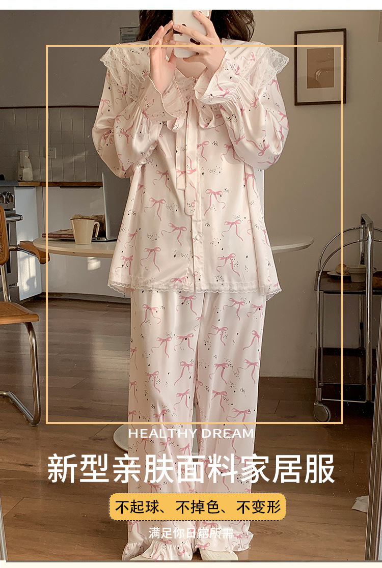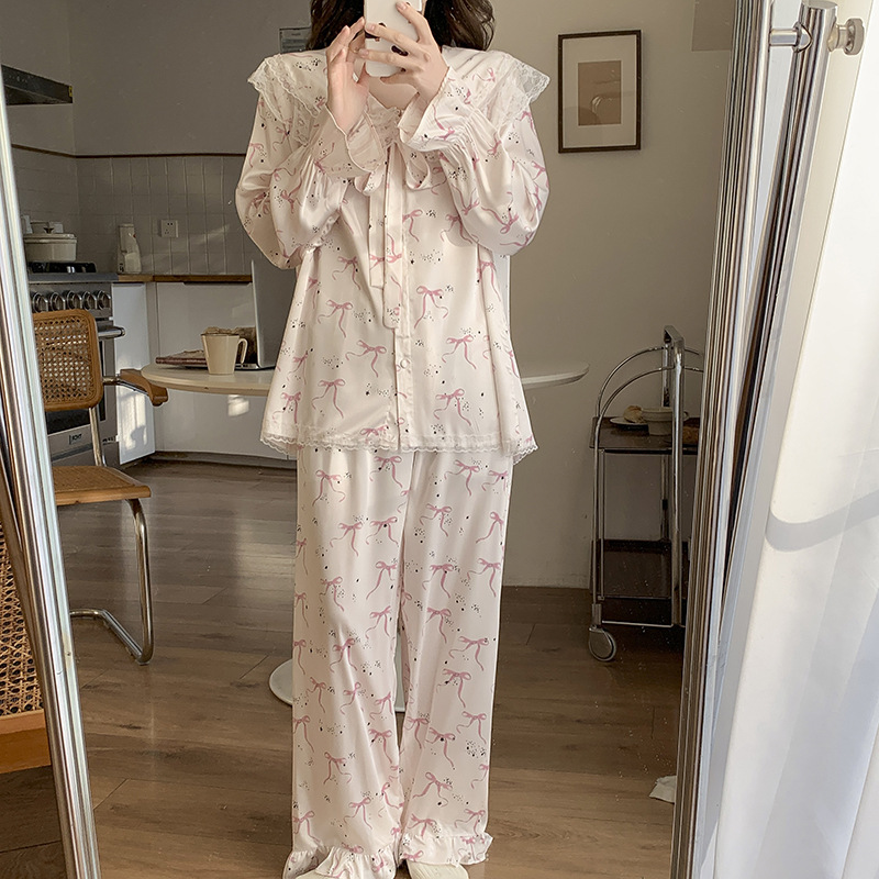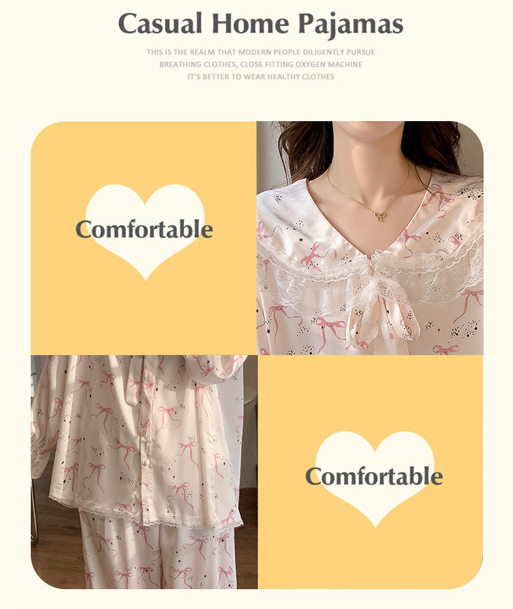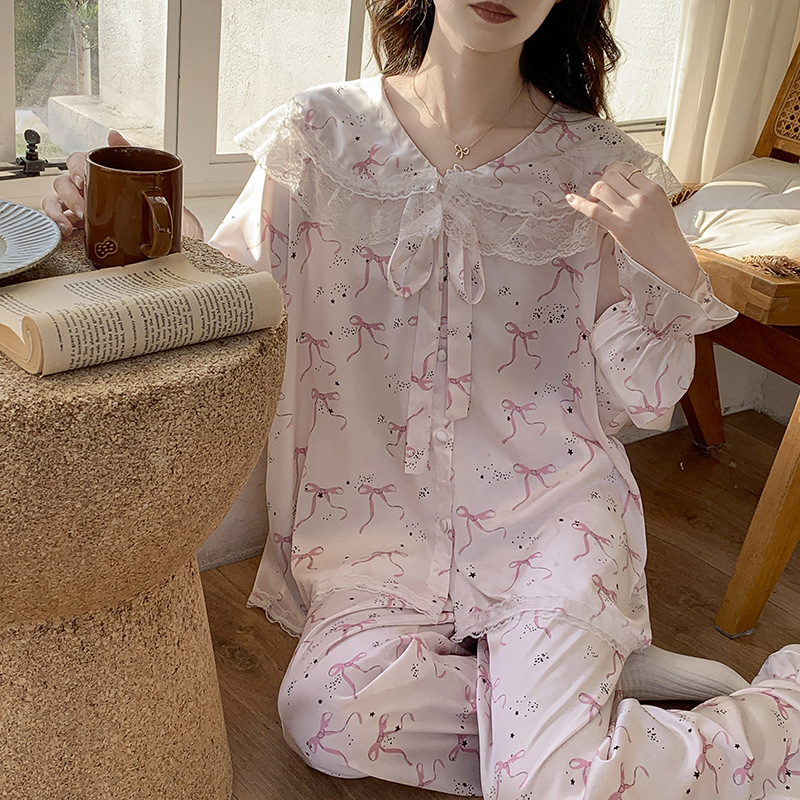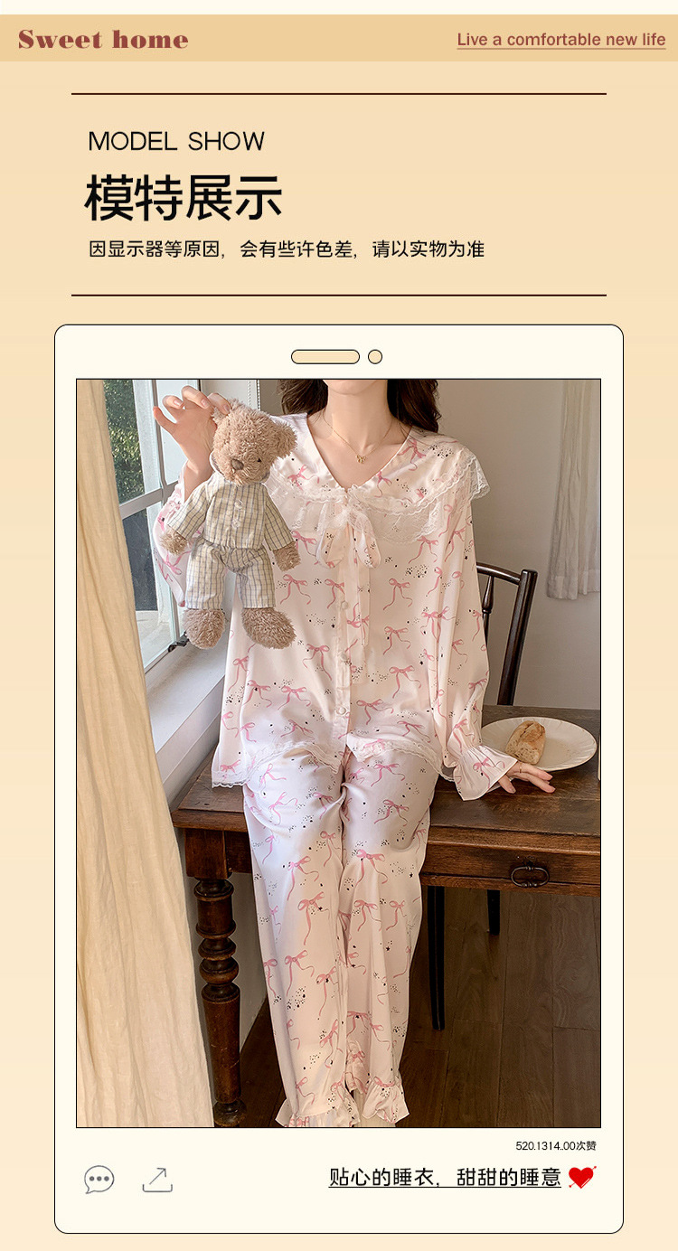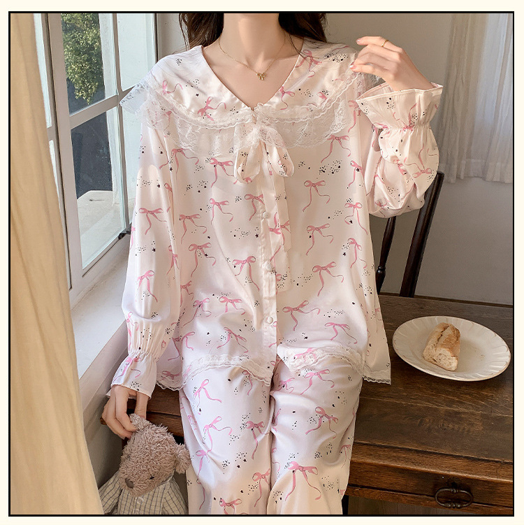 여름 새로운 빛 럭셔리 공주 스타일 얼음과 눈 실크 달콤하고 귀여운 실크 대형 옷깃 반팔 홈웨어 잠옷 세트