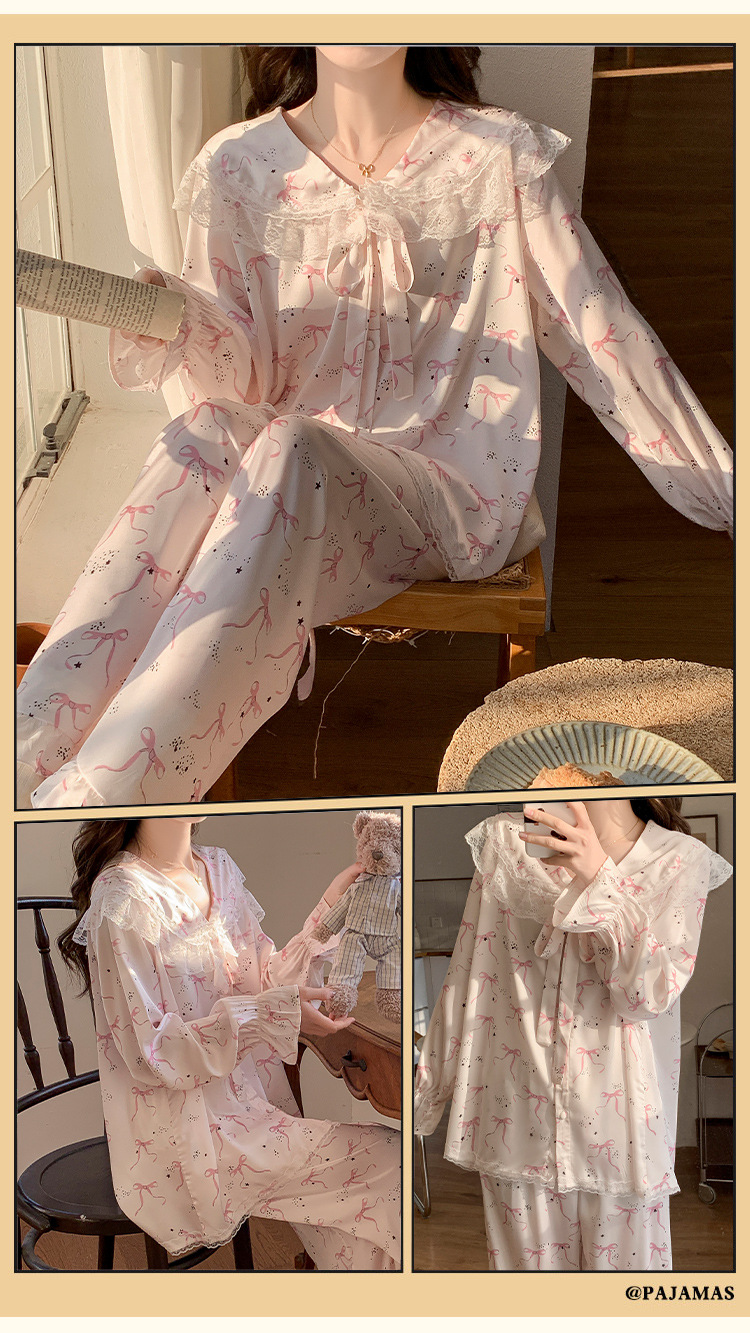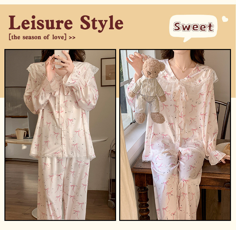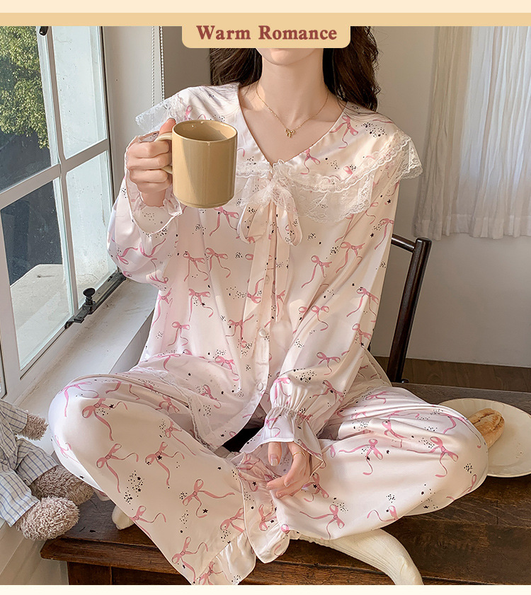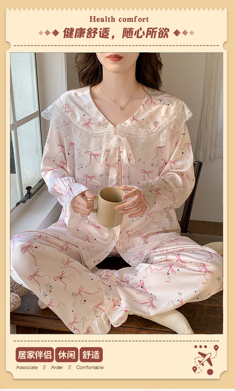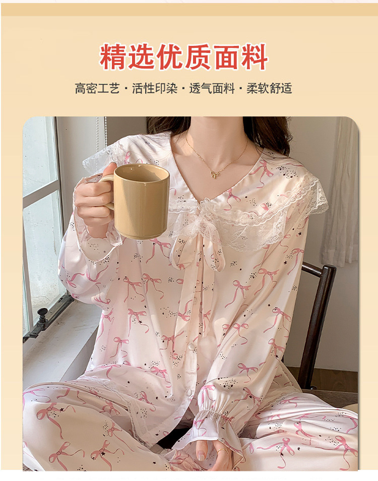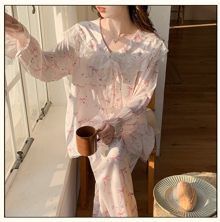 여름 새로운 빛 럭셔리 공주 스타일 얼음과 눈 실크 달콤하고 귀여운 실크 대형 옷깃 반팔 홈웨어 잠옷 세트