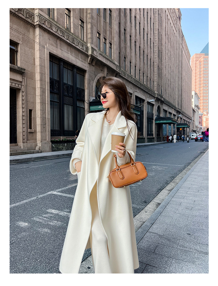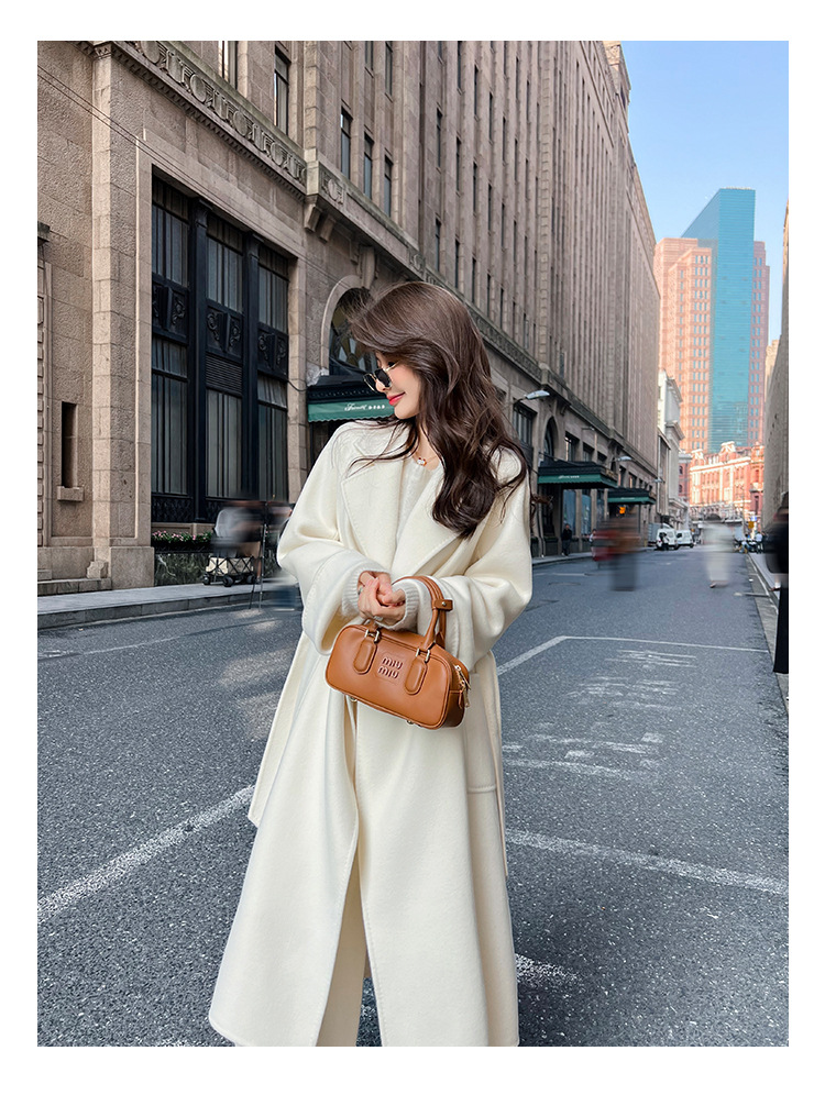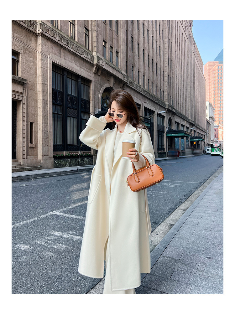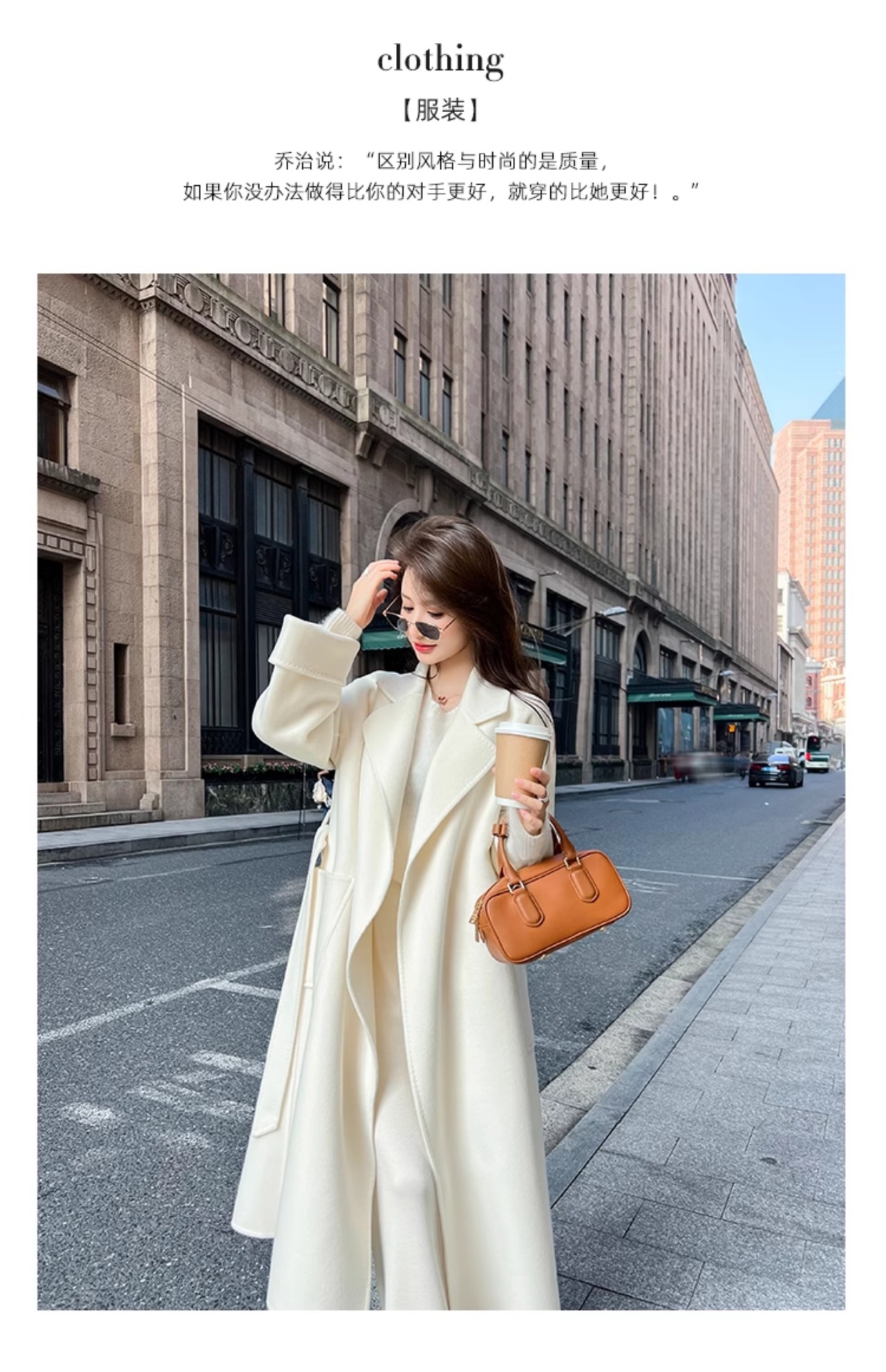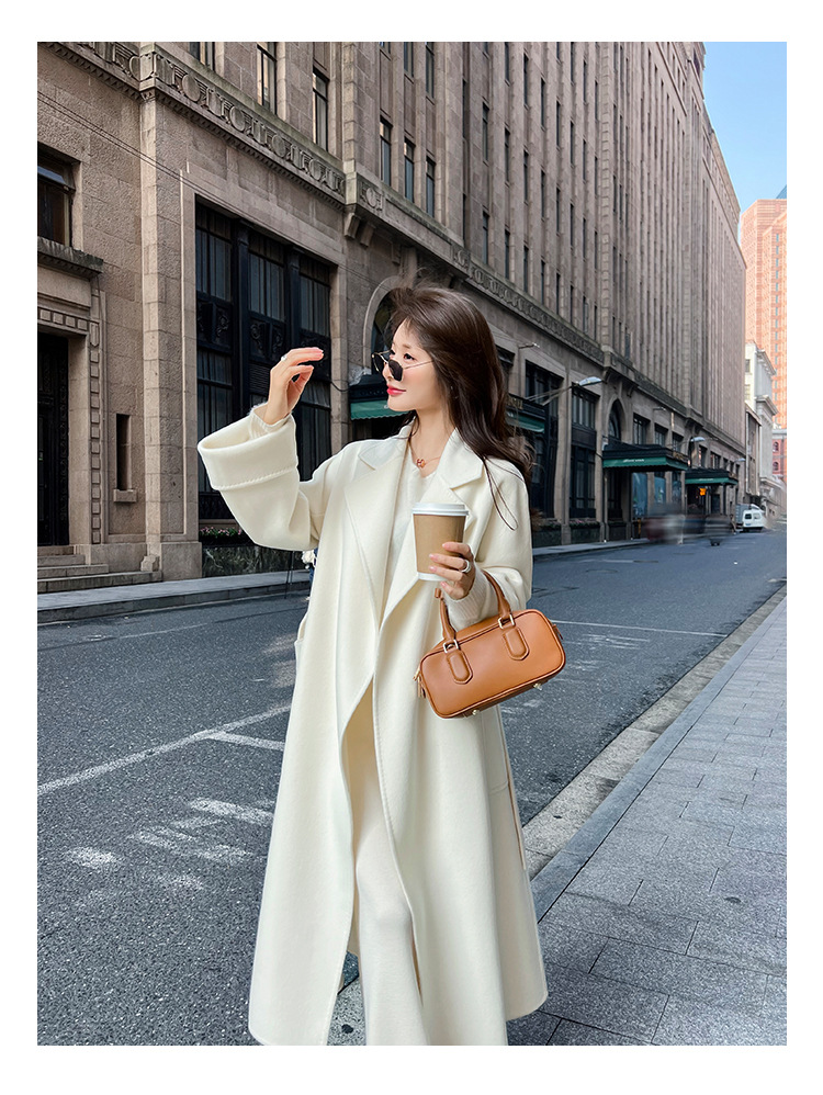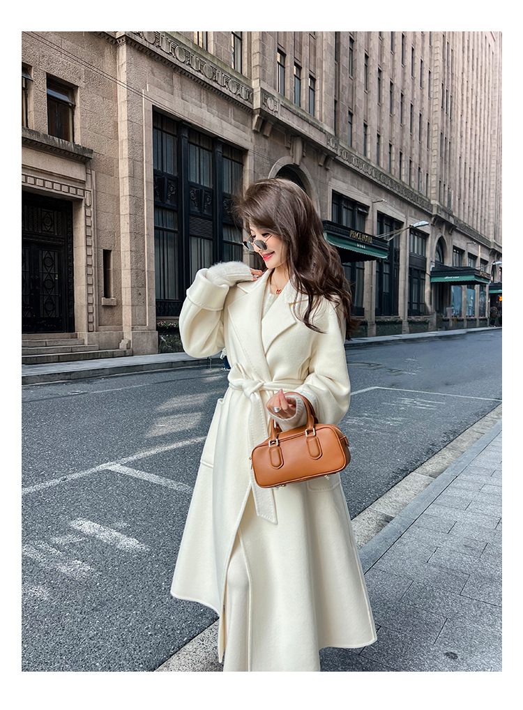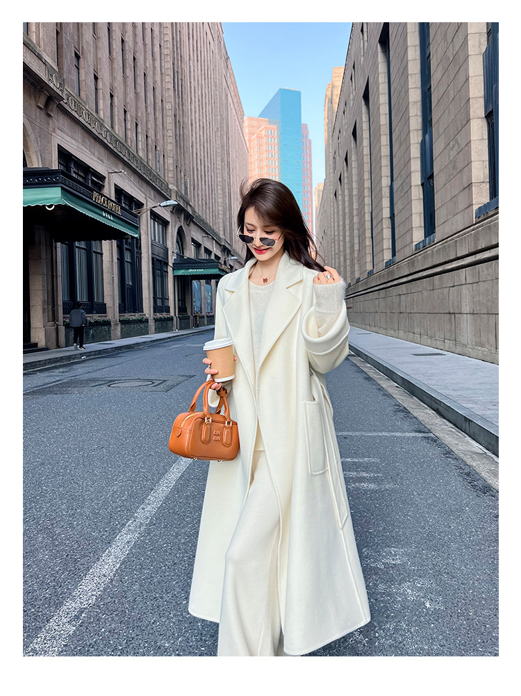 흰색 양면 캐시미어 코트 여자 중장 2025 봄 및 겨울 인기있는 새로운 헵번 스타일 고급 모직 코트