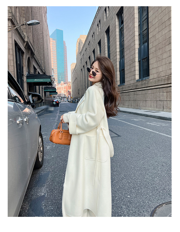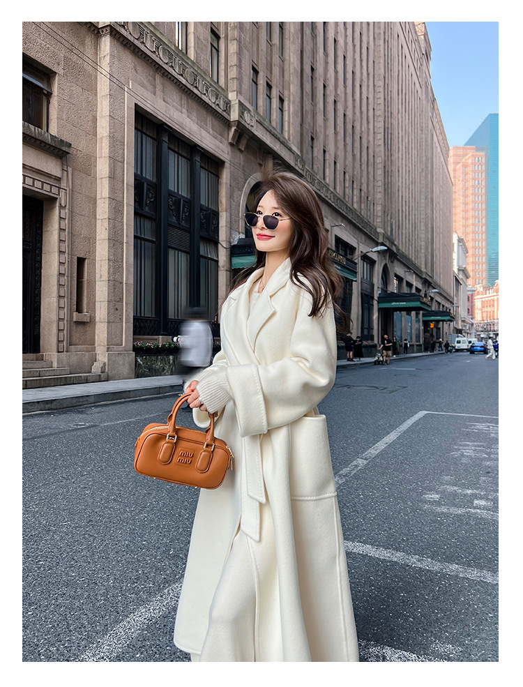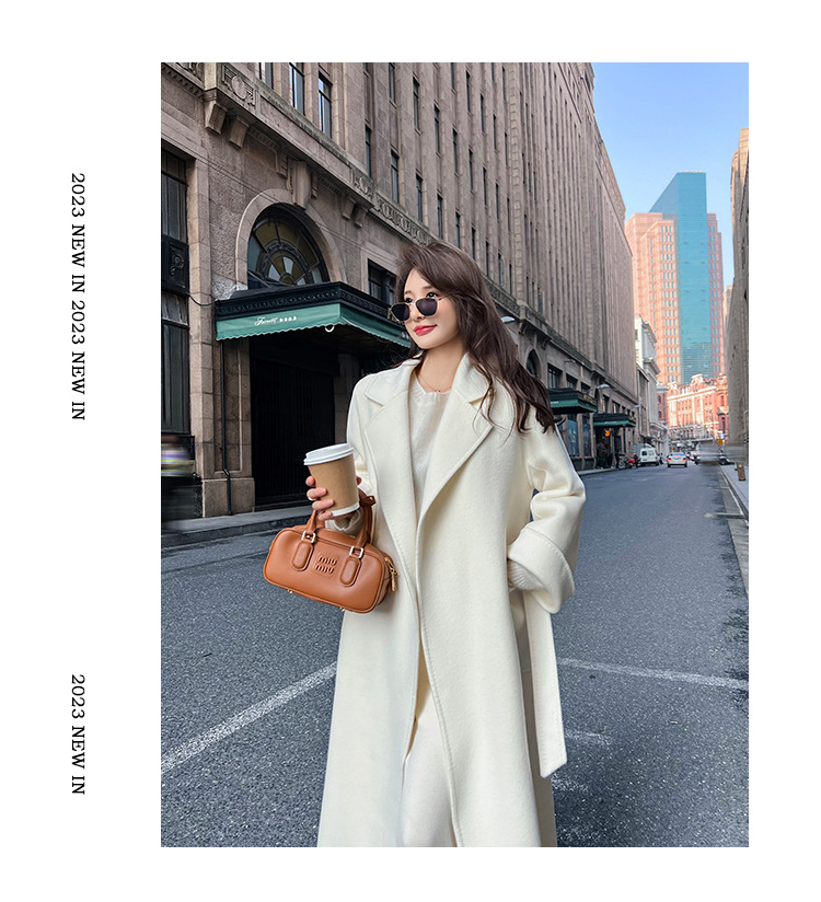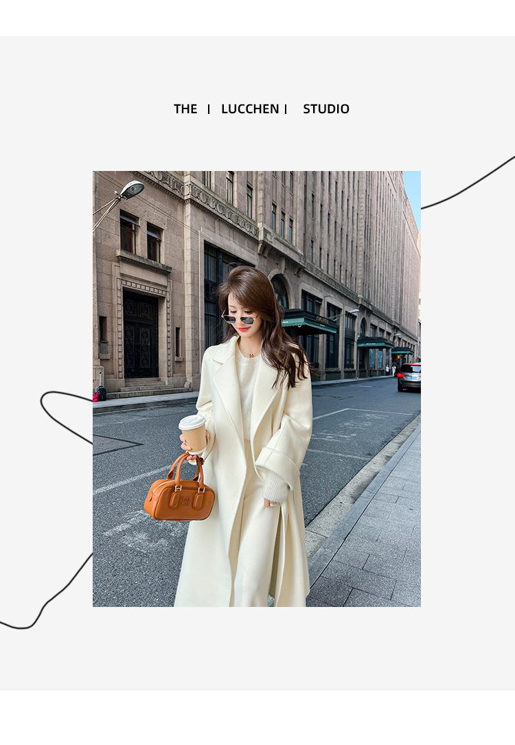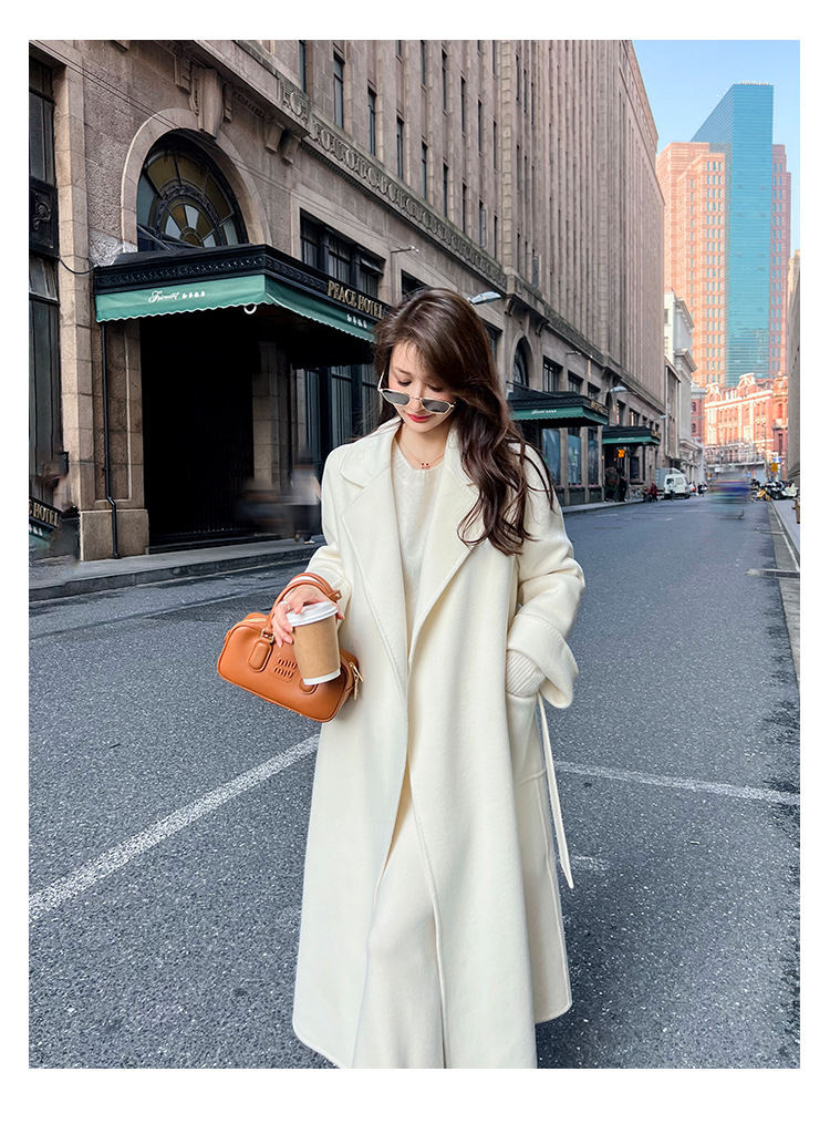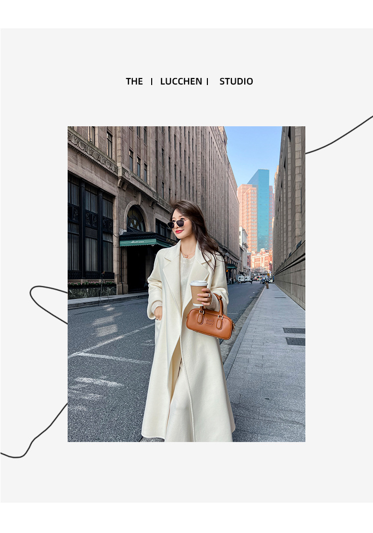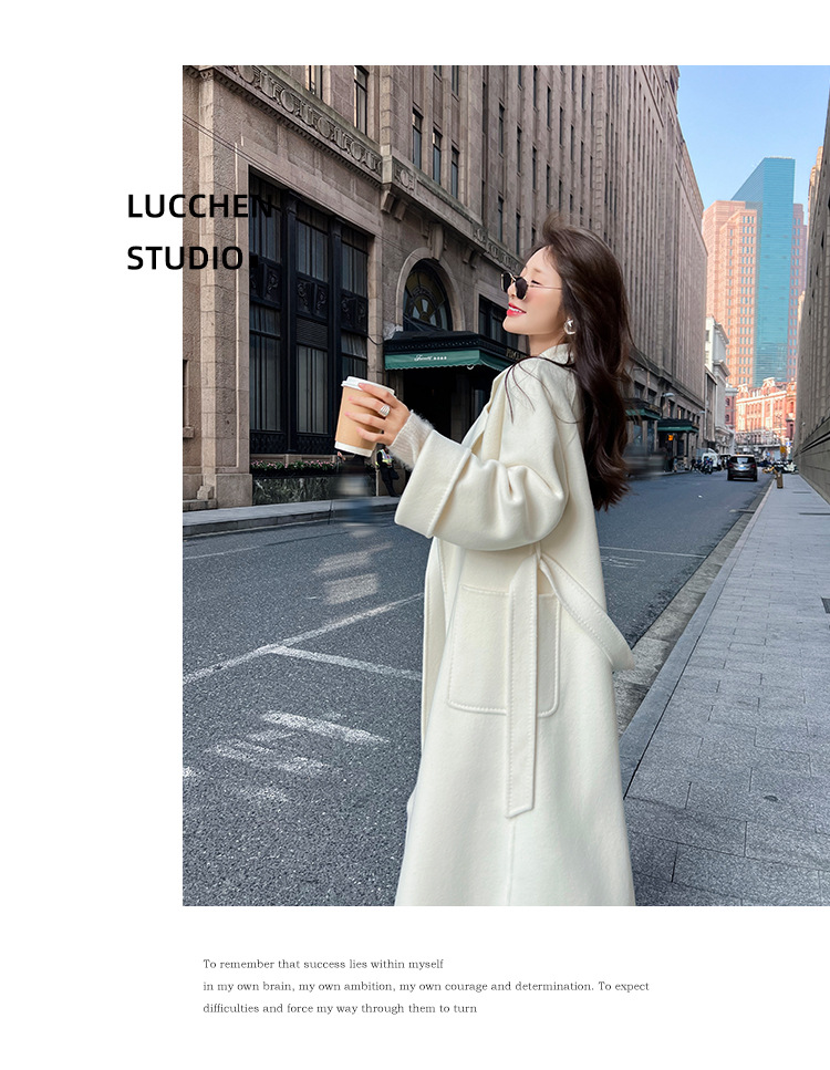 흰색 양면 캐시미어 코트 여자 중장 2025 봄 및 겨울 인기있는 새로운 헵번 스타일 고급 모직 코트