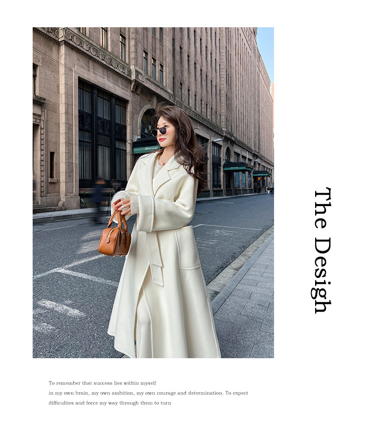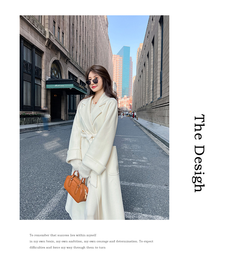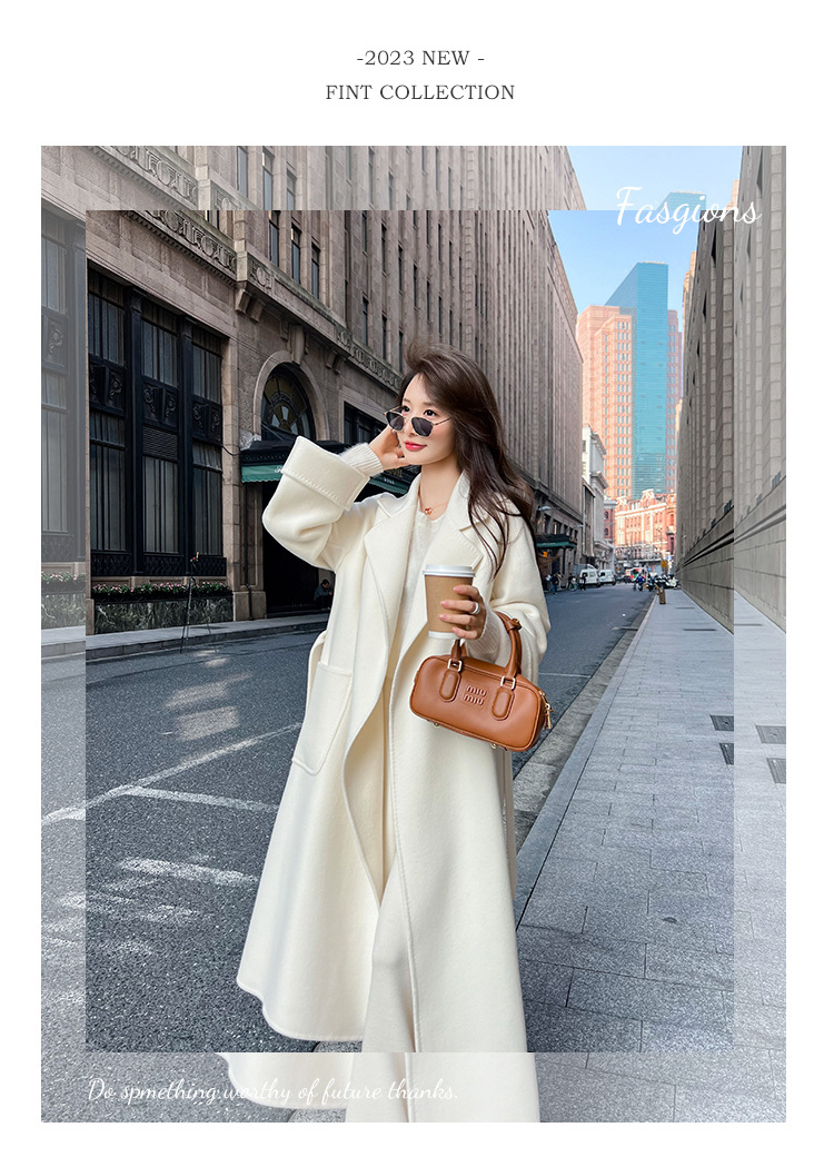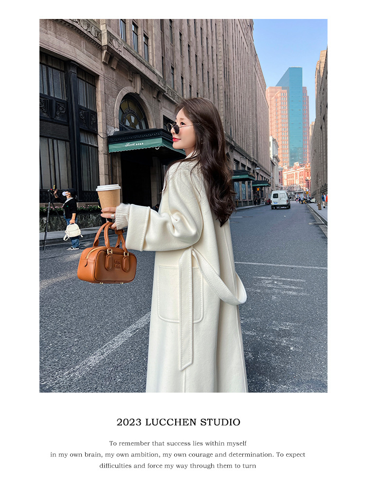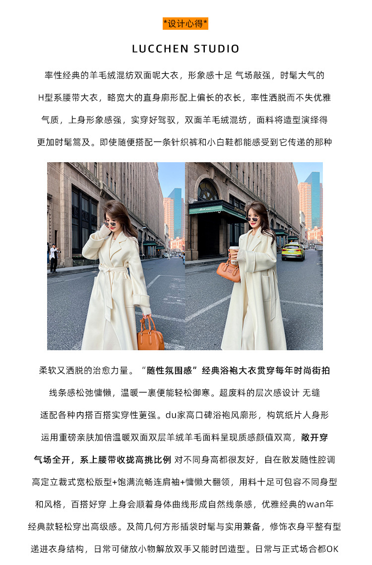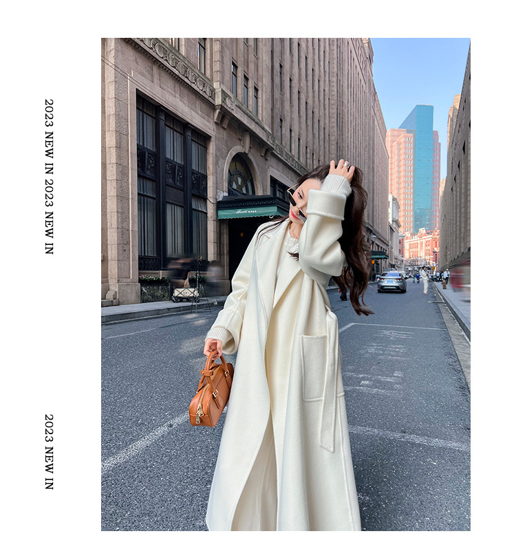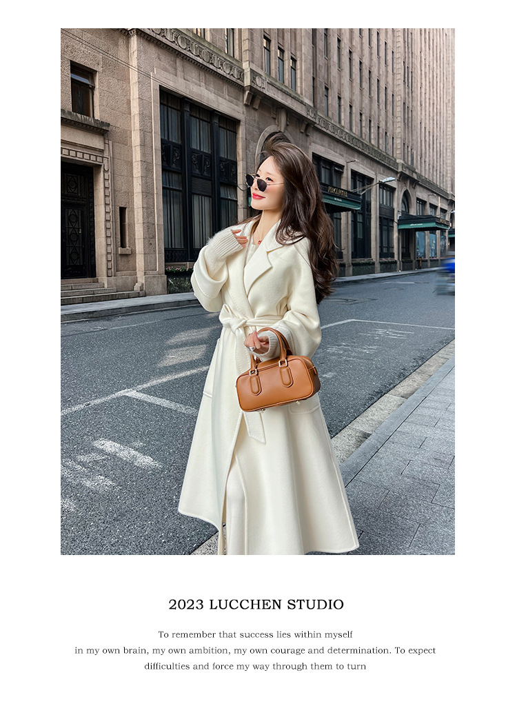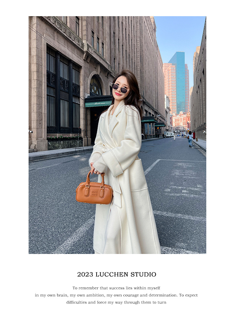 흰색 양면 캐시미어 코트 여자 중장 2025 봄 및 겨울 인기있는 새로운 헵번 스타일 고급 모직 코트