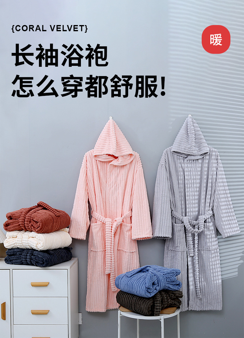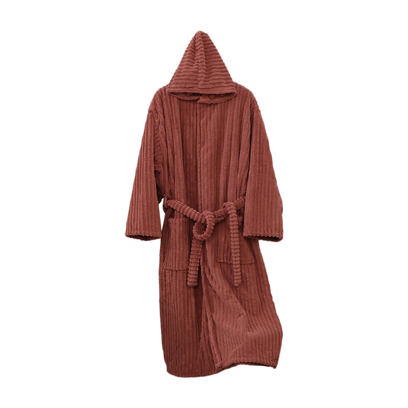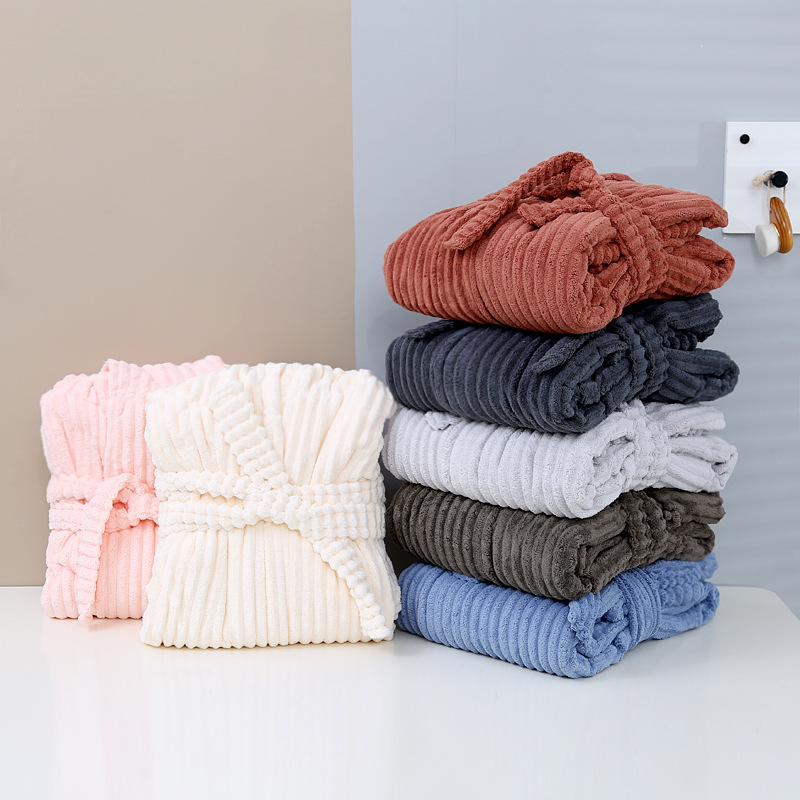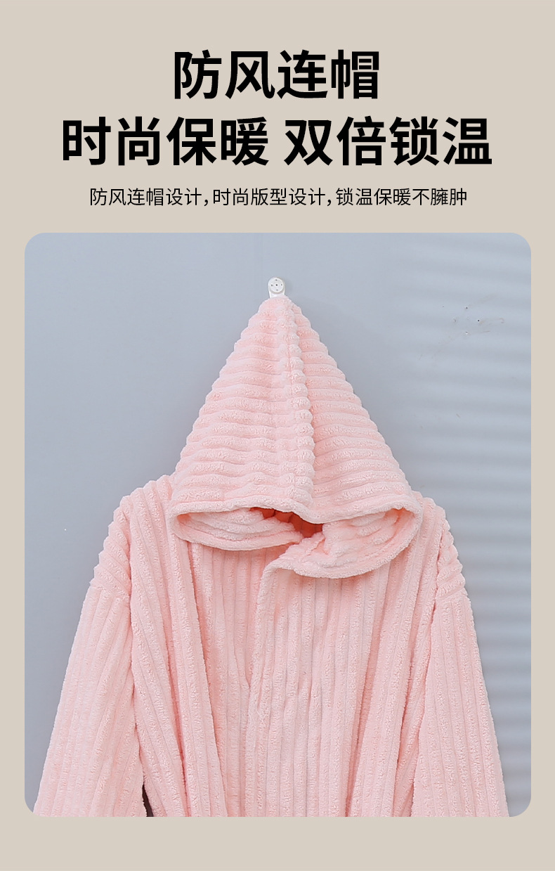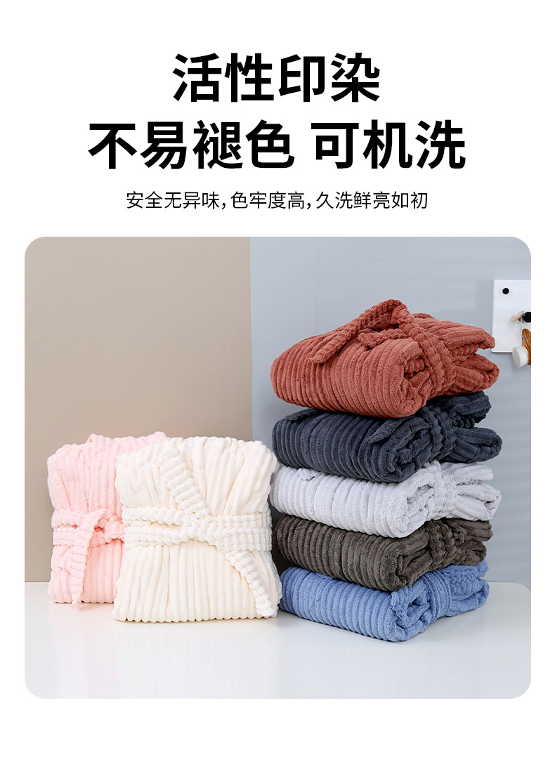 산호 양털 목욕 가운 여성의 겨울 후드 성인 부드러운 흡수성 머리없는 가을과 겨울 초대형 두꺼운 사탕 스트립 목욕 스커트
