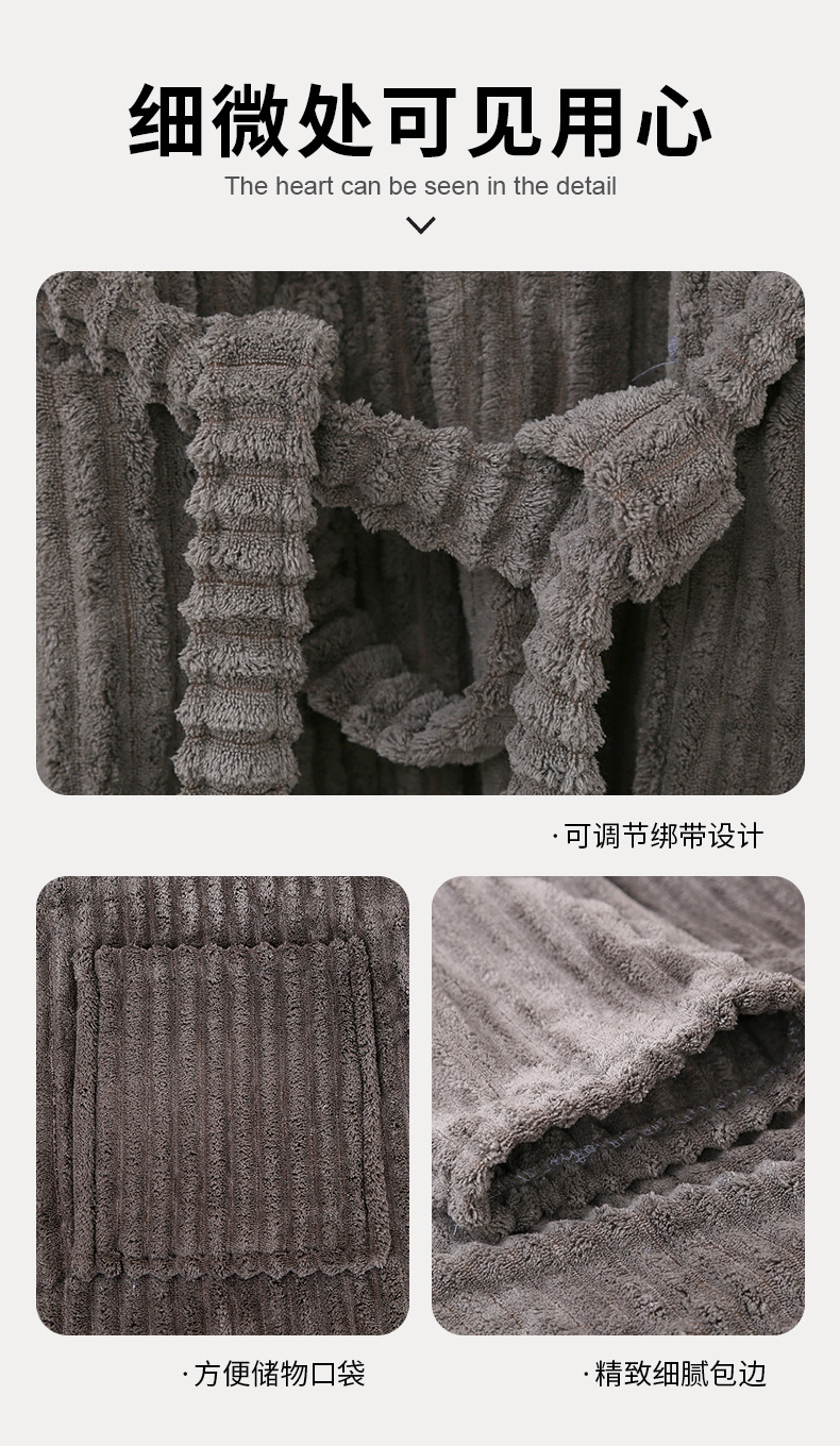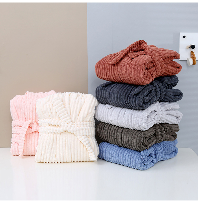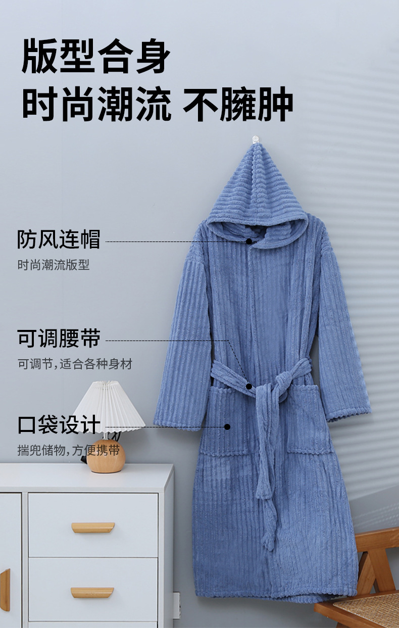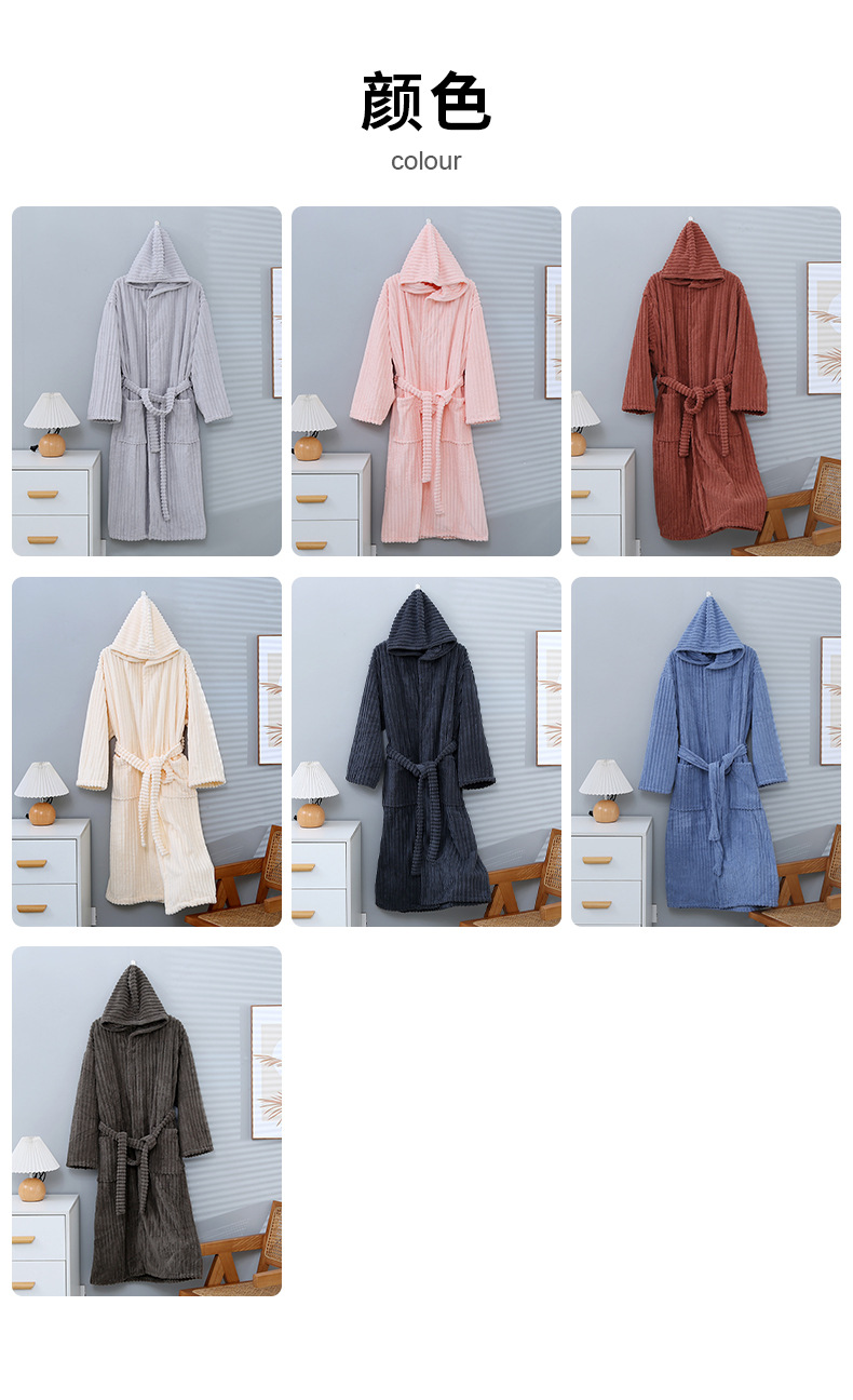 산호 양털 목욕 가운 여성의 겨울 후드 성인 부드러운 흡수성 머리없는 가을과 겨울 초대형 두꺼운 사탕 스트립 목욕 스커트