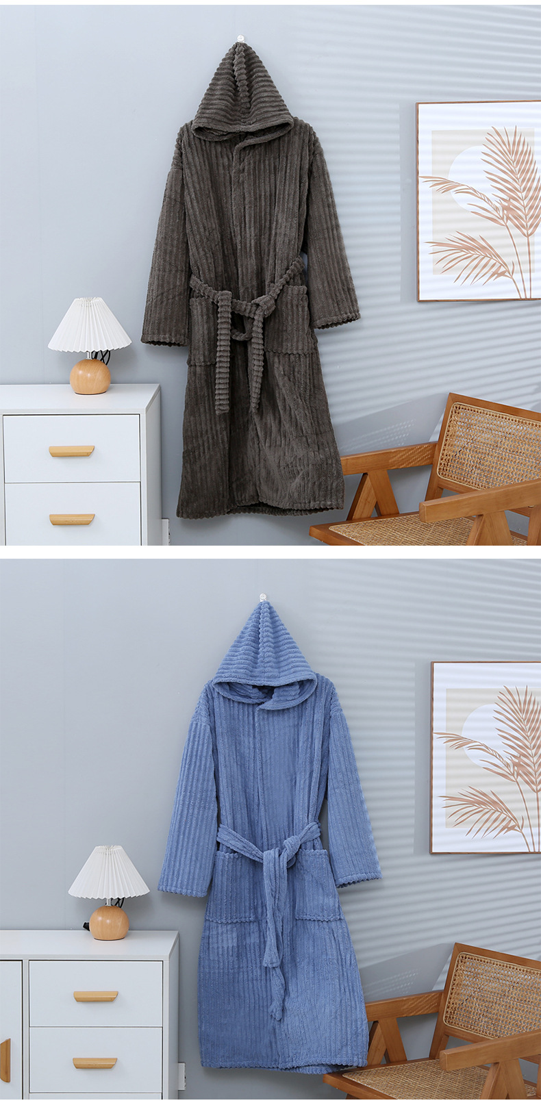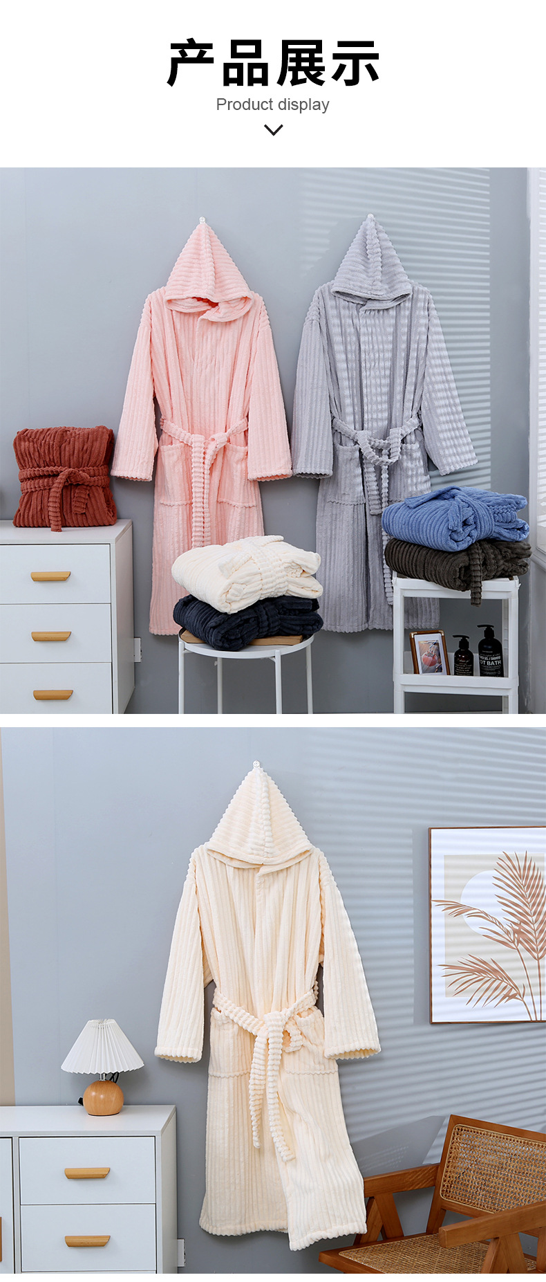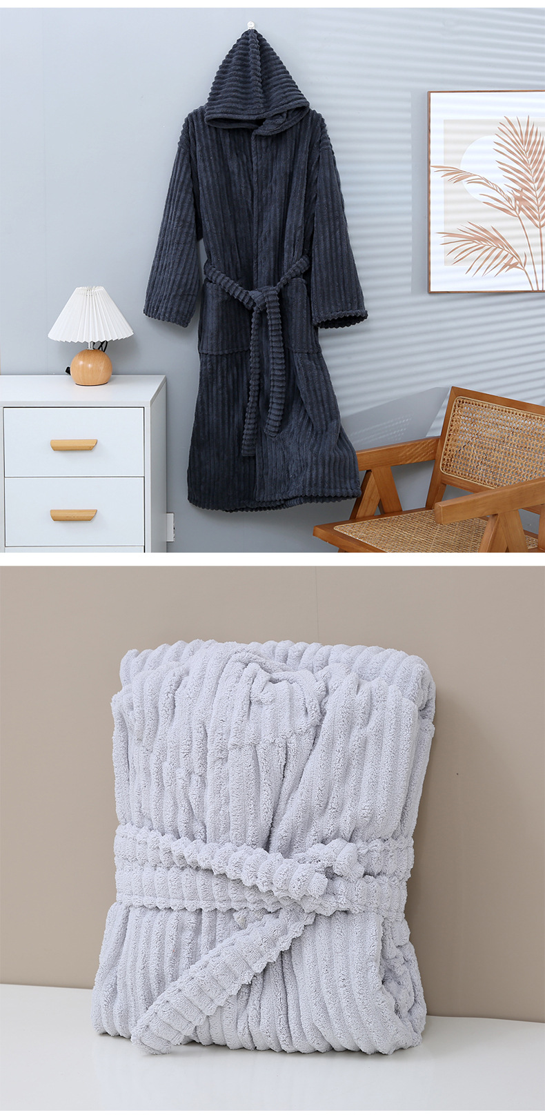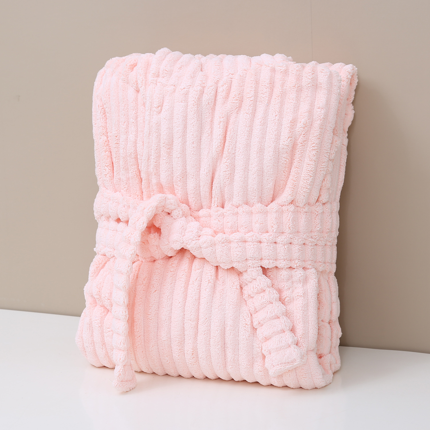 산호 양털 목욕 가운 여성의 겨울 후드 성인 부드러운 흡수성 머리없는 가을과 겨울 초대형 두꺼운 사탕 스트립 목욕 스커트