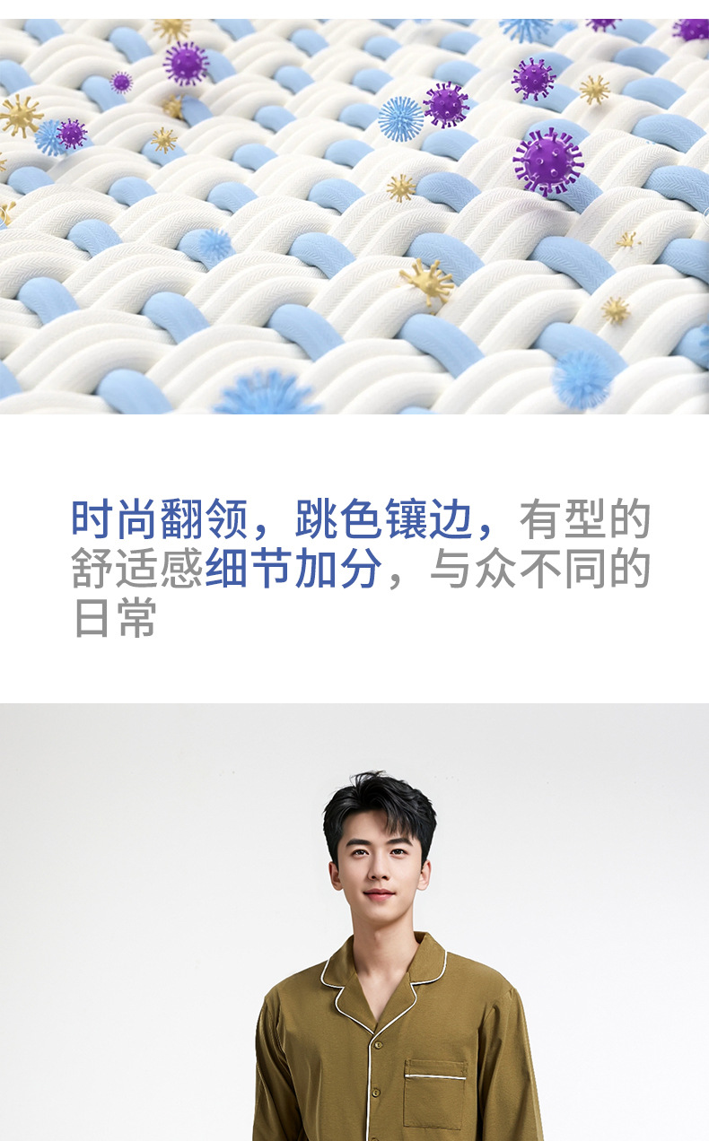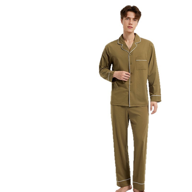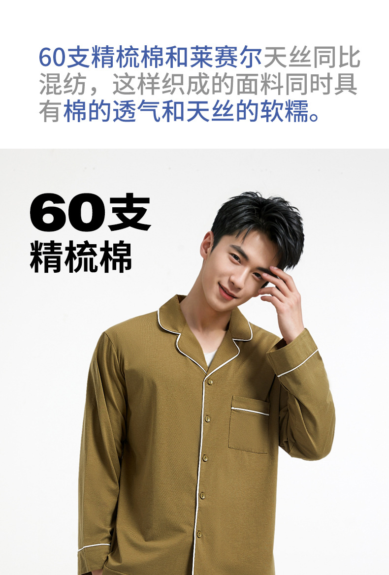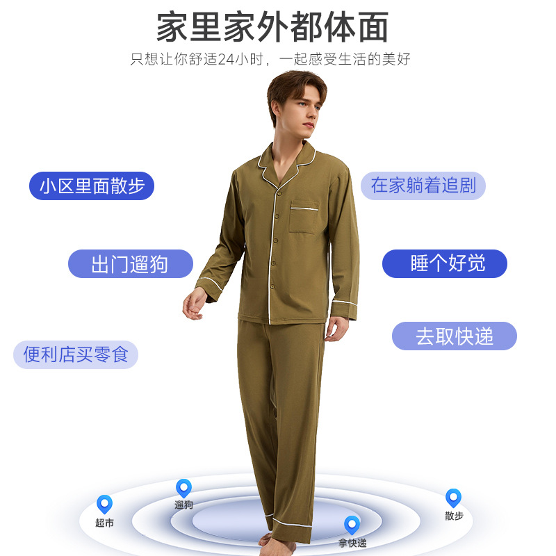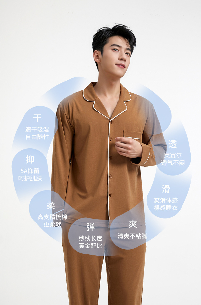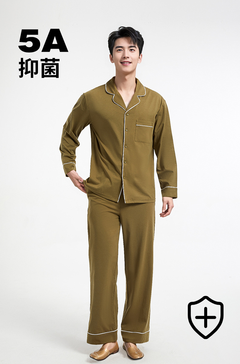 봄, 가을용 코마면 남성 홈웨어, 라펠 칼라 긴팔 긴바지 세트, 외출복으로도 착용 가능, 항균 잠옷, 남성용 항균 통기성 잠옷