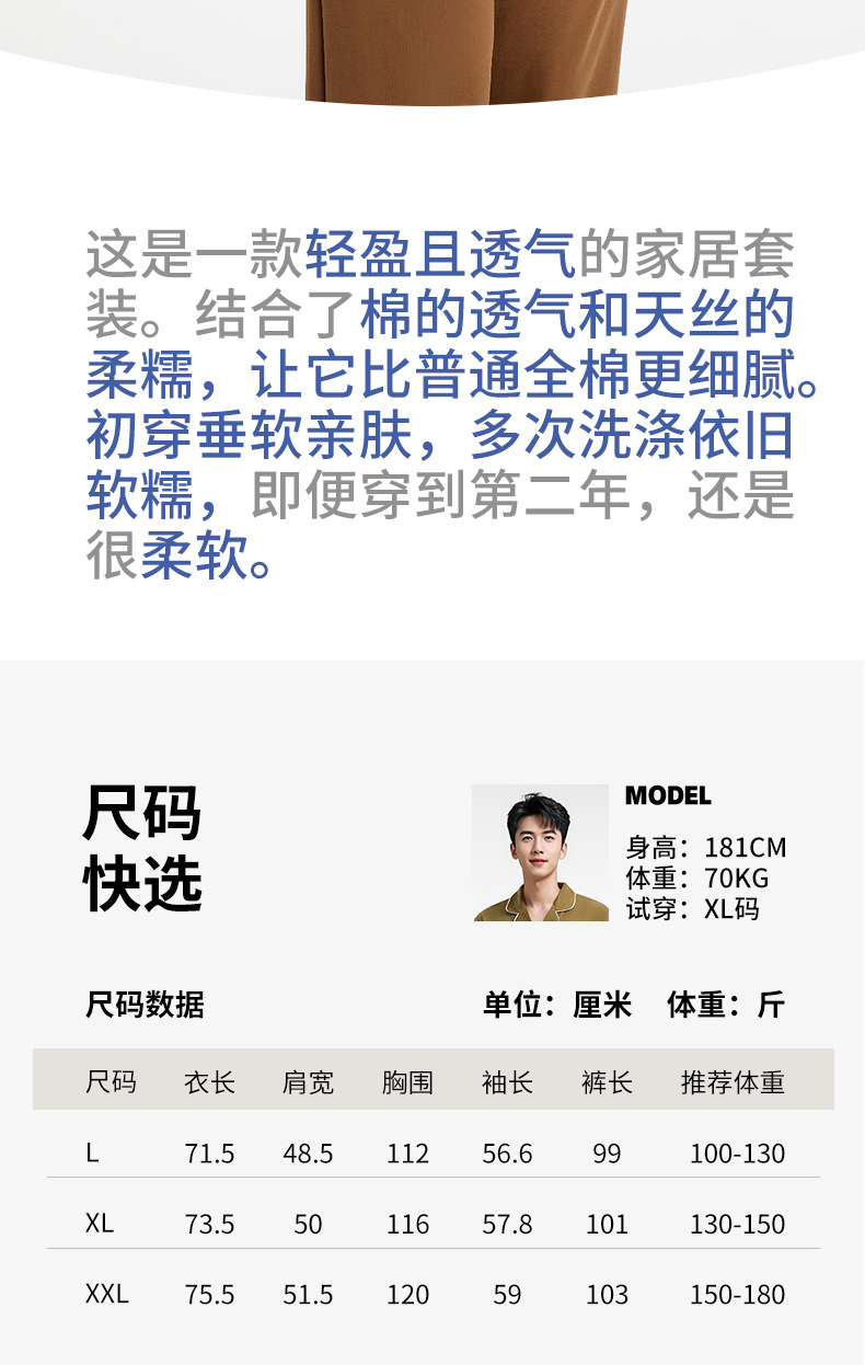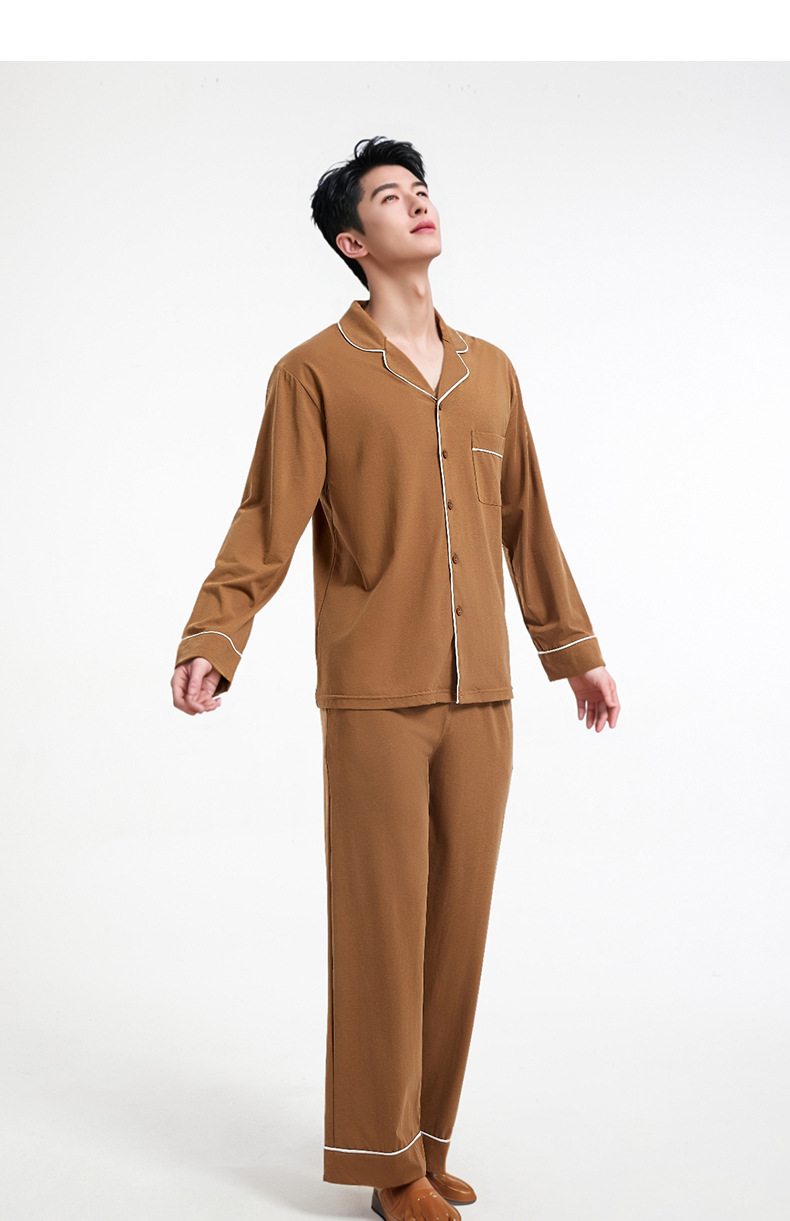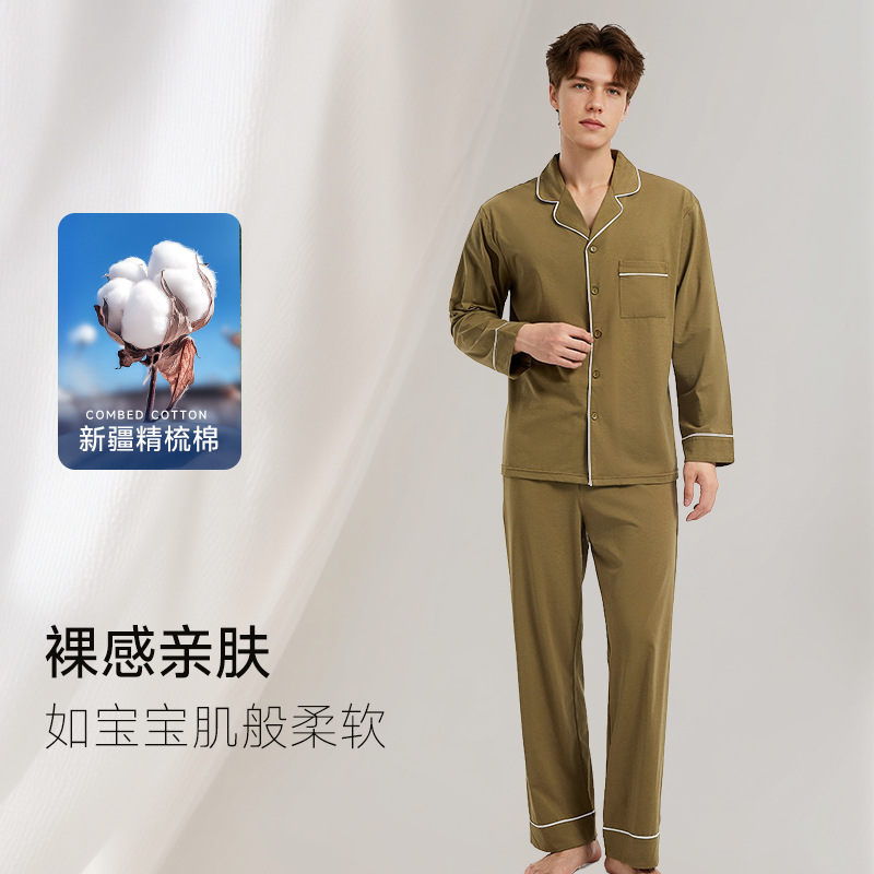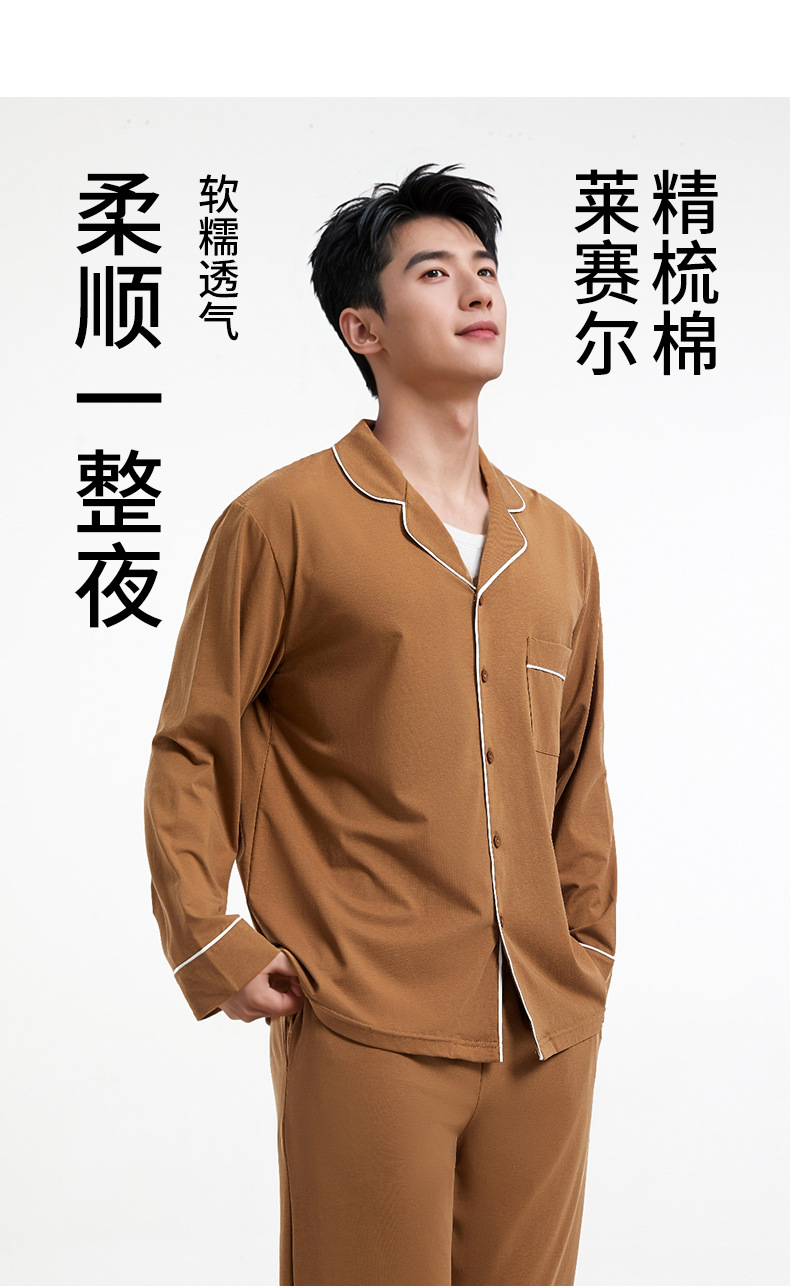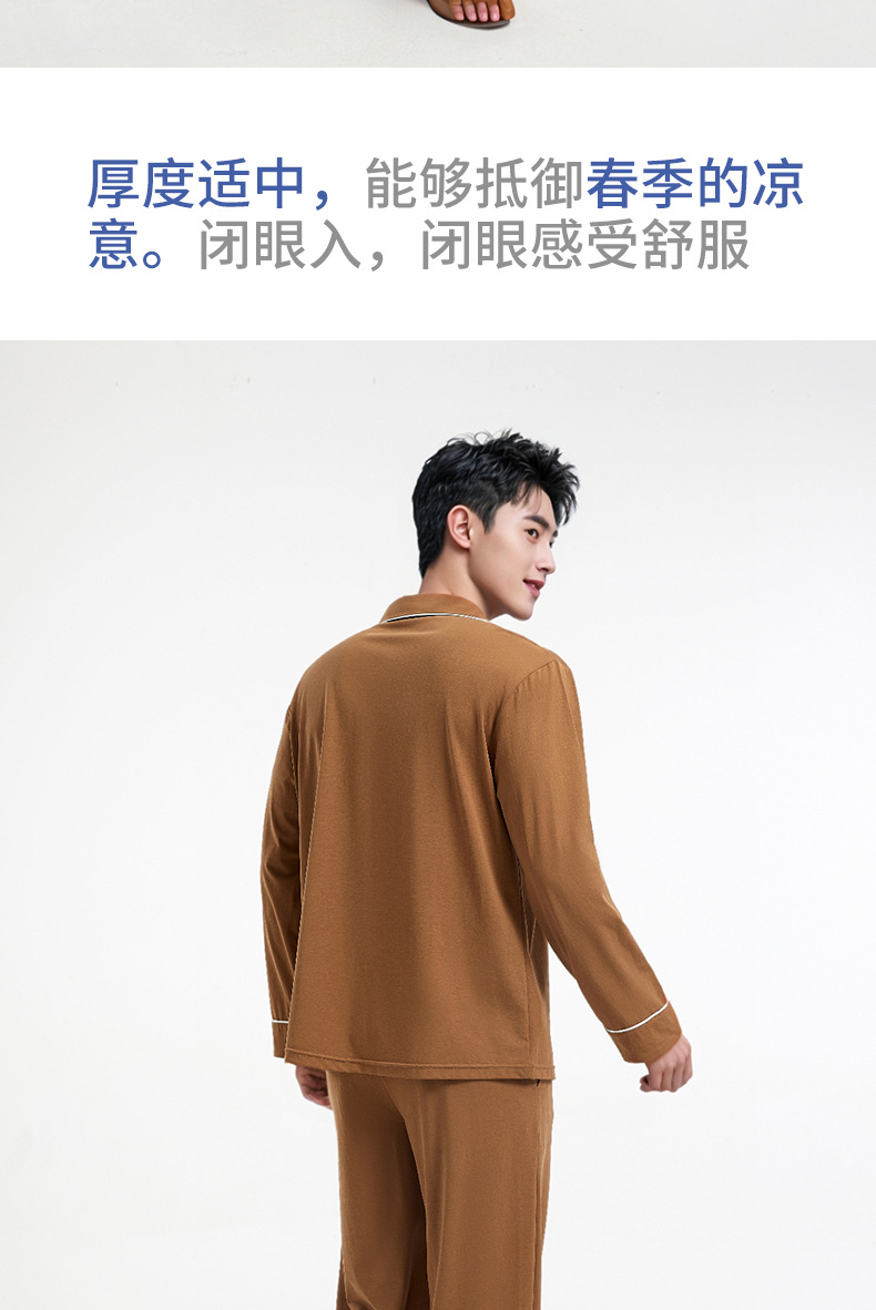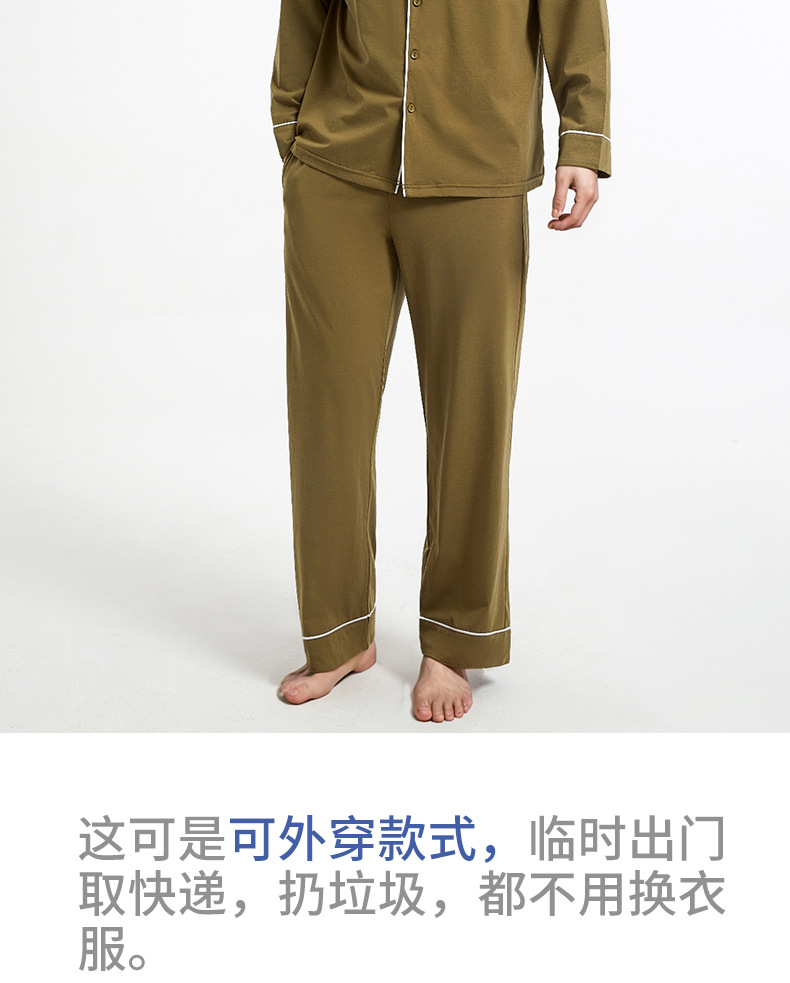 봄, 가을용 코마면 남성 홈웨어, 라펠 칼라 긴팔 긴바지 세트, 외출복으로도 착용 가능, 항균 잠옷, 남성용 항균 통기성 잠옷