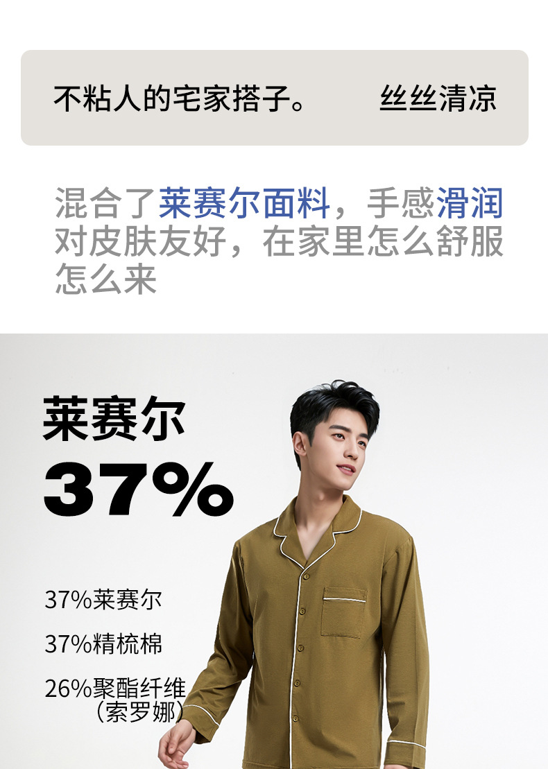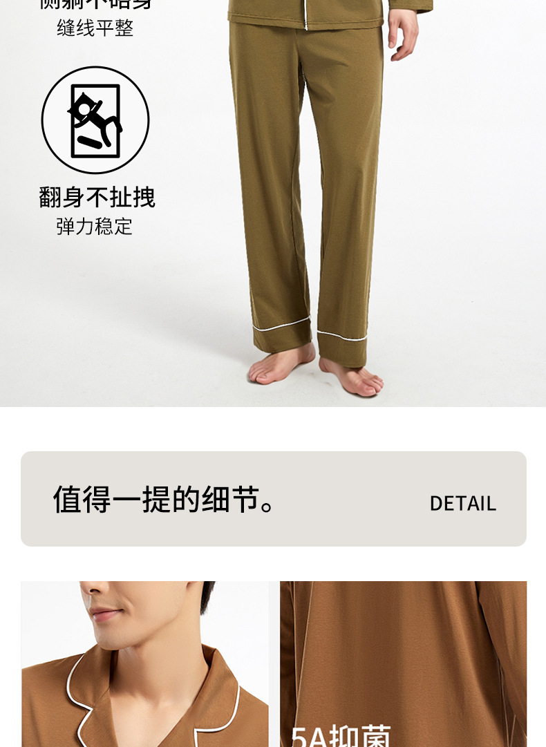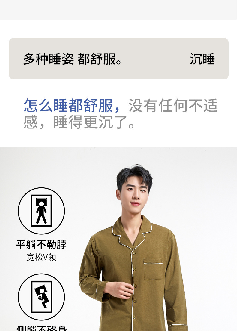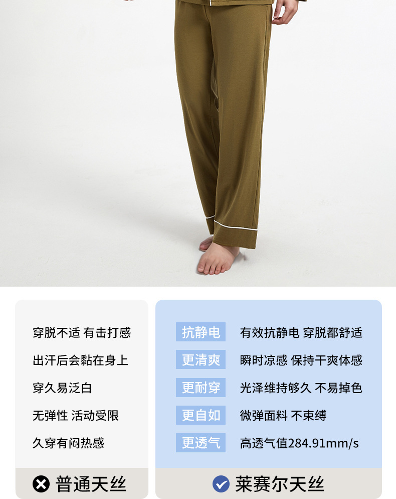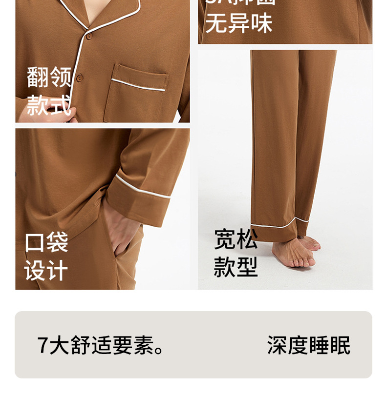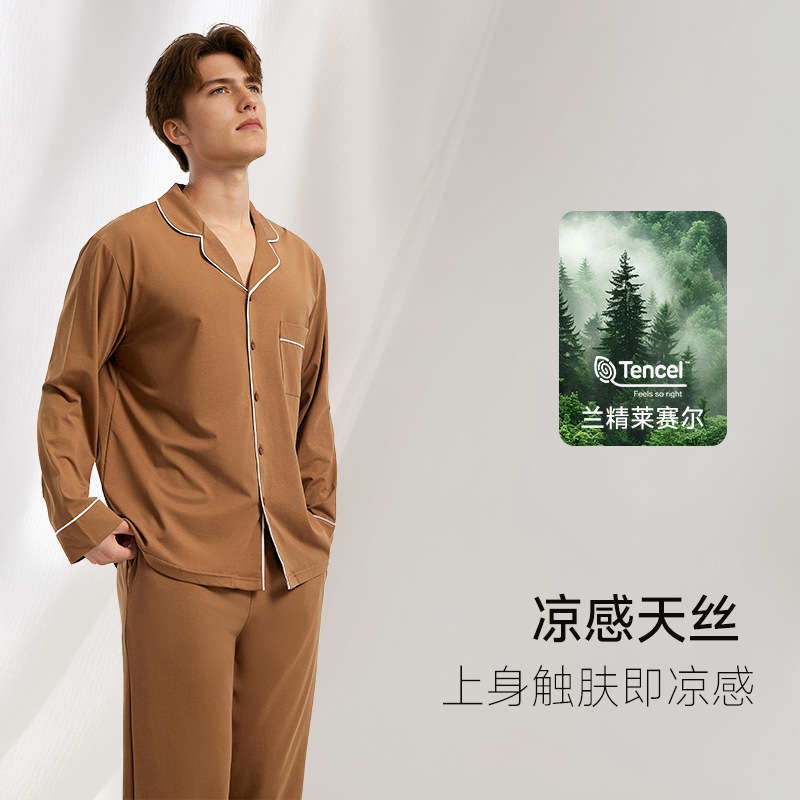 봄, 가을용 코마면 남성 홈웨어, 라펠 칼라 긴팔 긴바지 세트, 외출복으로도 착용 가능, 항균 잠옷, 남성용 항균 통기성 잠옷