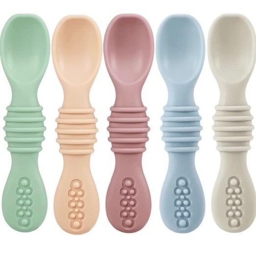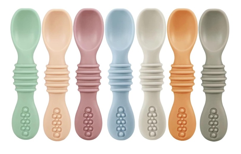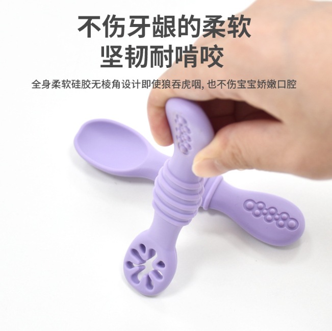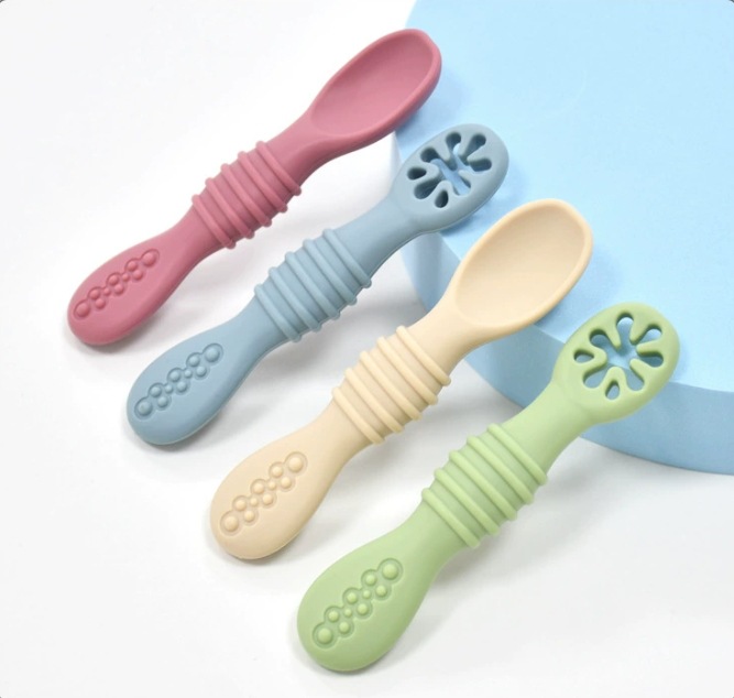 아기용 실리콘 점착식 부드러운 숟가락과 포크, 영유아 식사 훈련용 식기, 이유식, 수유용품