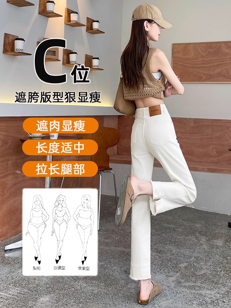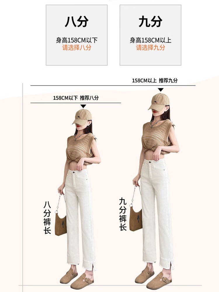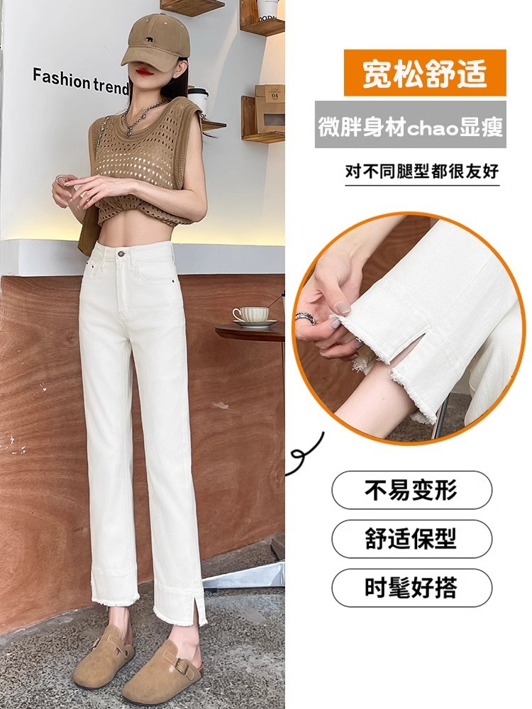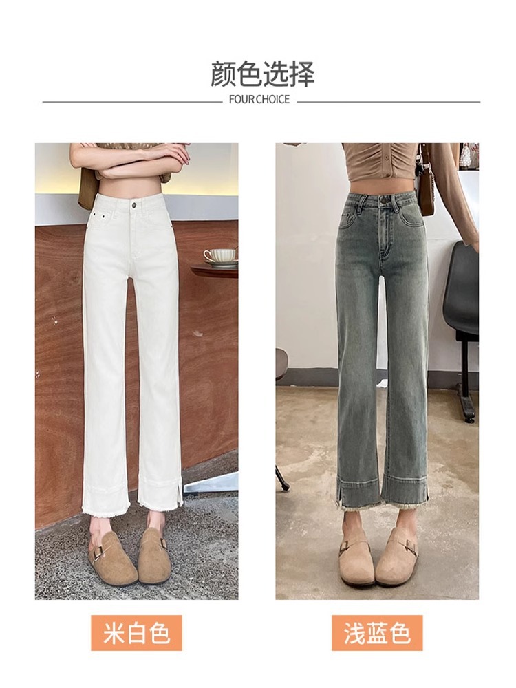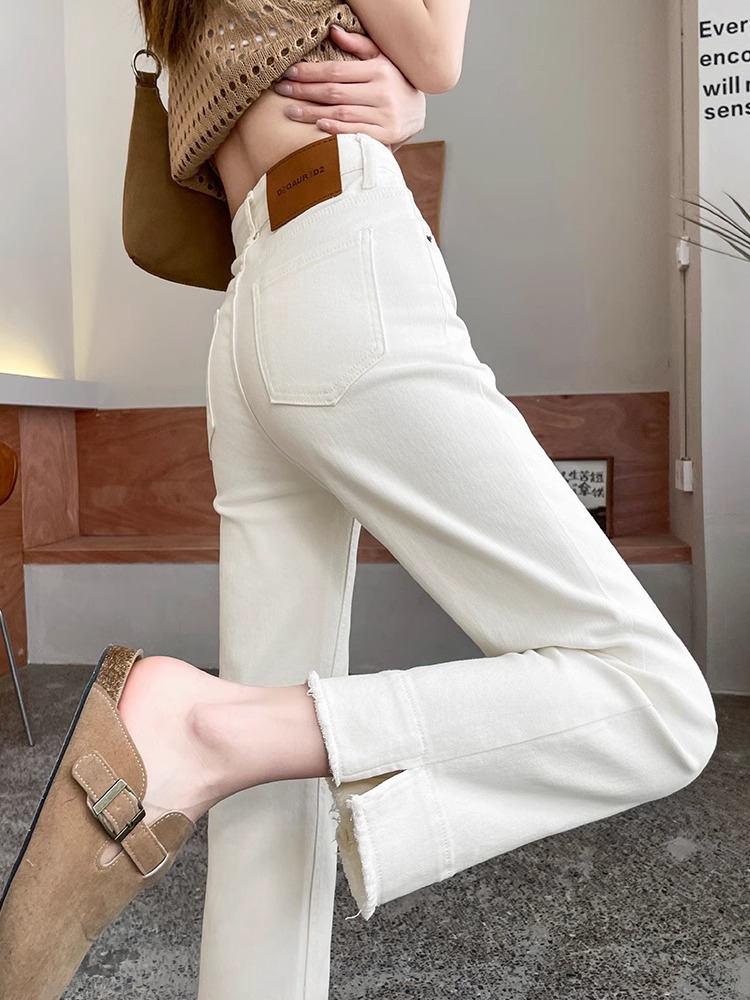 화이트 플리스 안감 스모크 파이프 진 여성용 2026년 봄/가을 키 작은 사람들을 위한 8부/9부 스플릿 밑단 프린지 바게트 팬츠