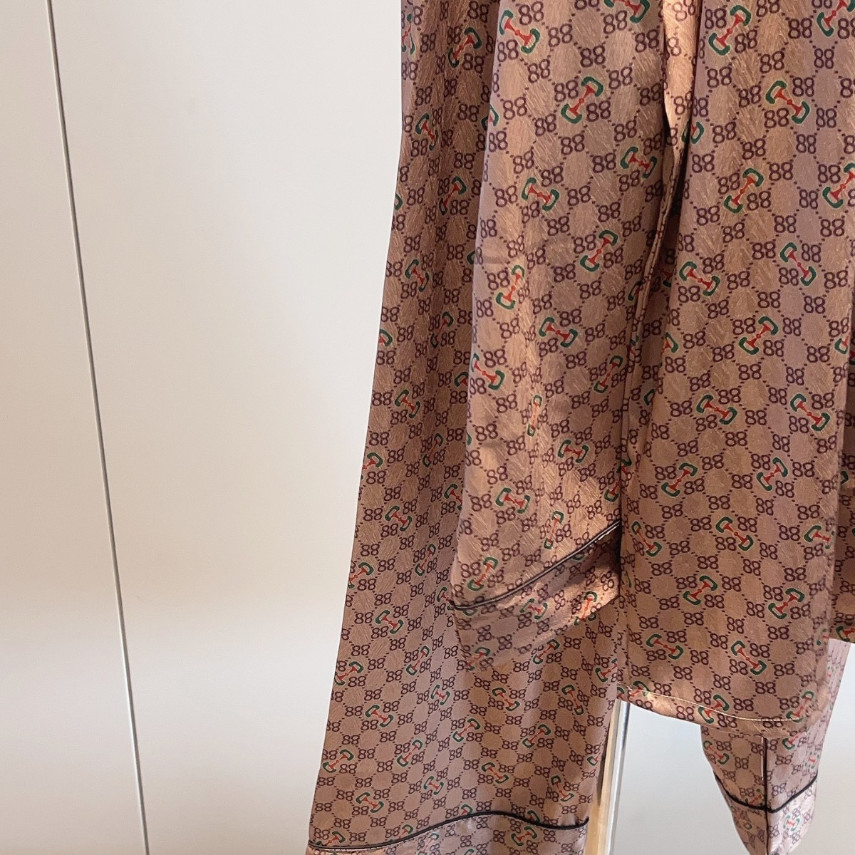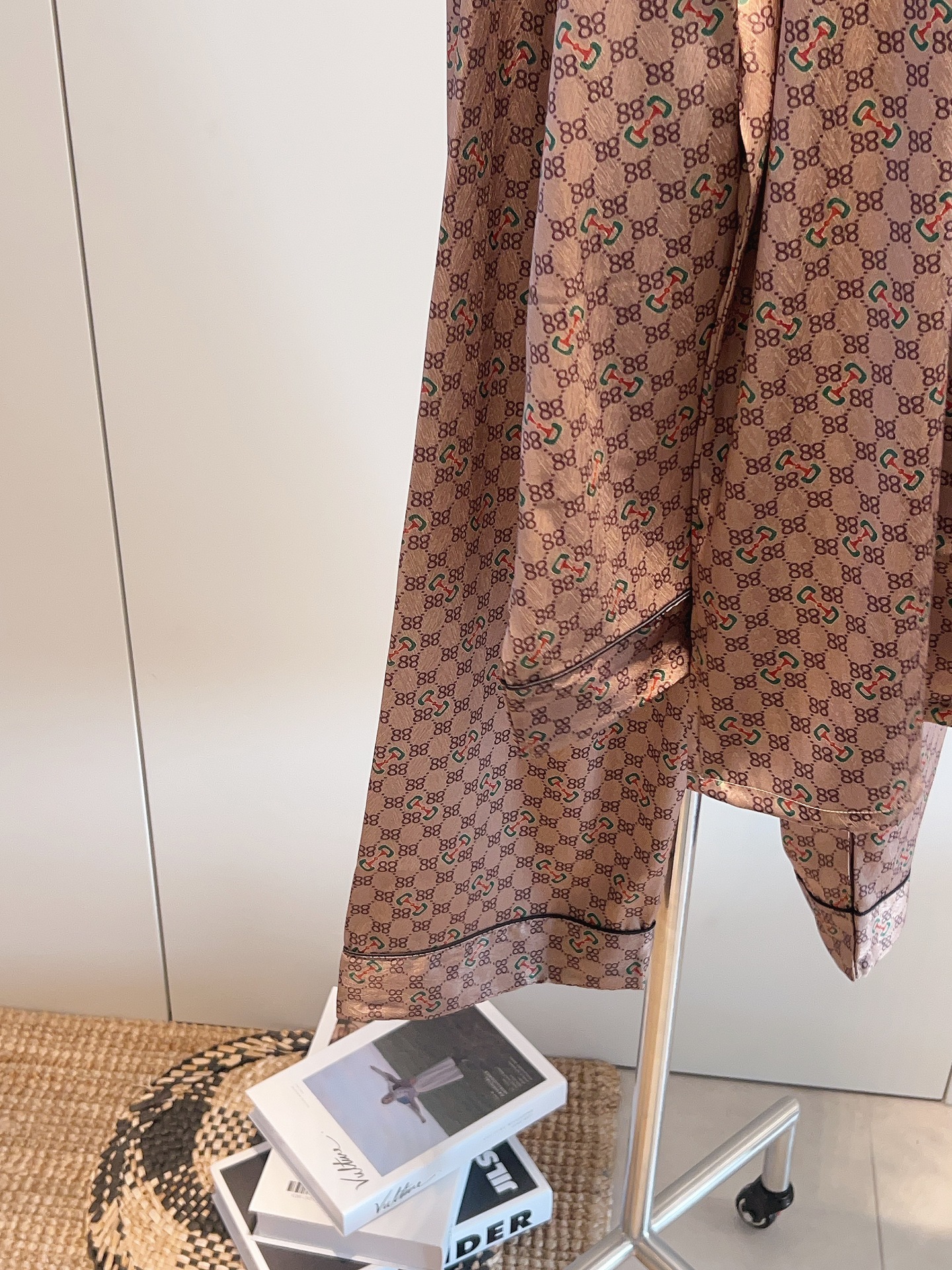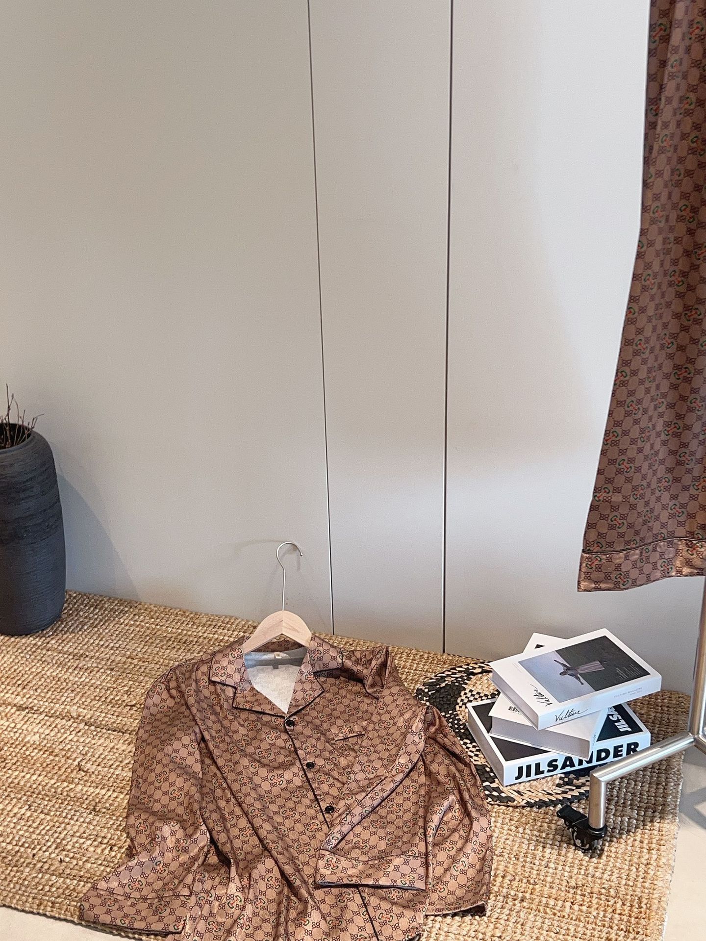 큰 브랜드 잠옷 남자 아이스 실크 옷깃 카디건 긴 소매 봄과 가을 간단한 캐주얼 여름 실크 시즌 홈 의류 세트