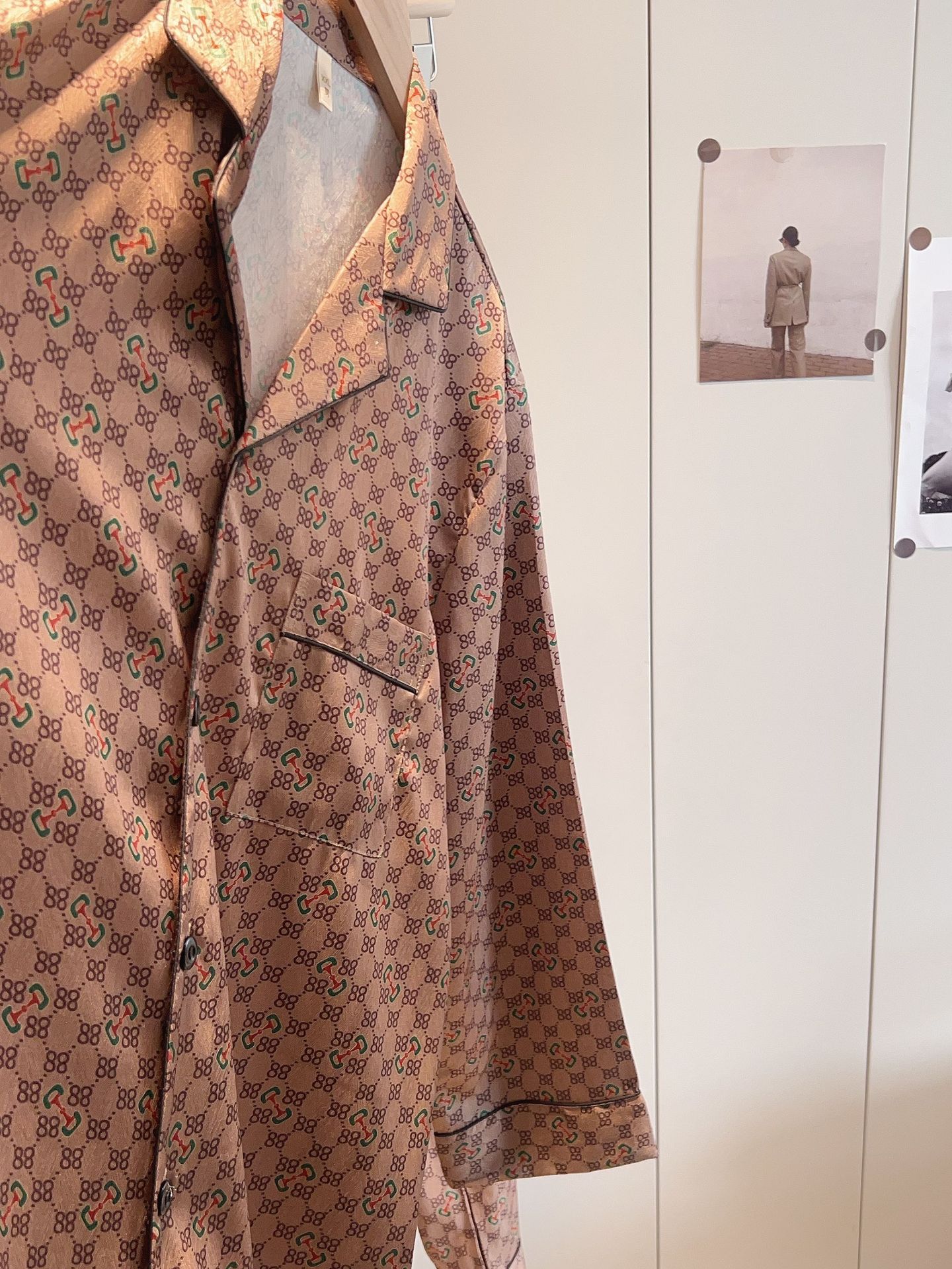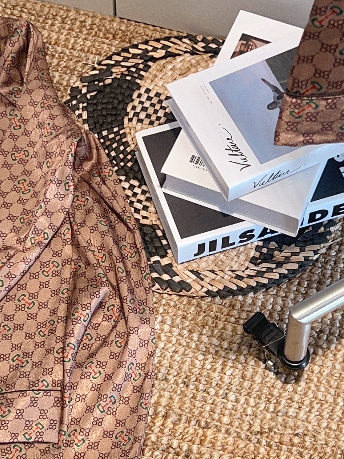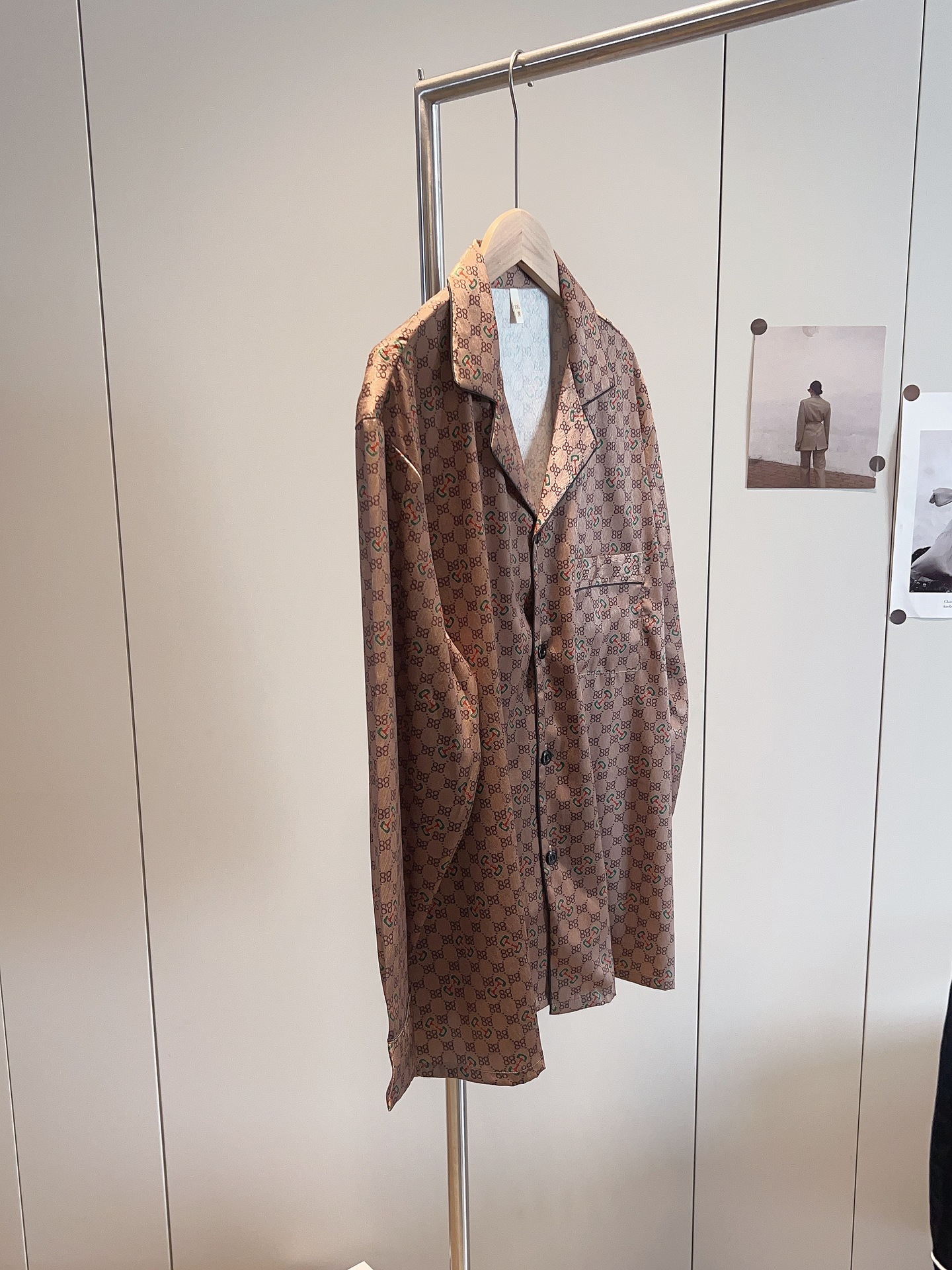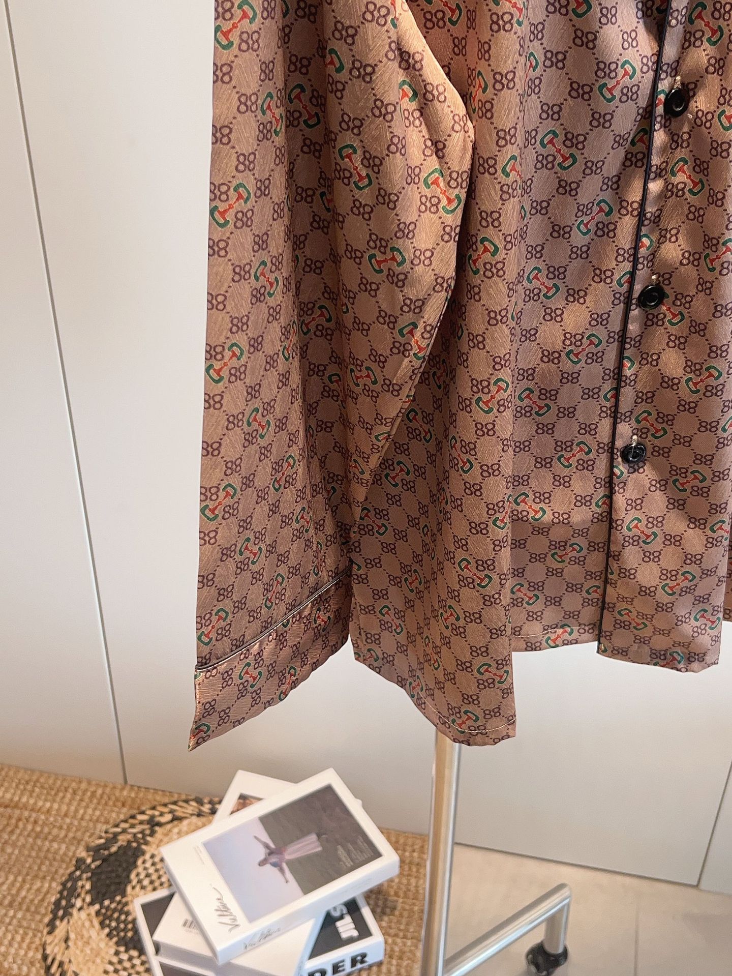 큰 브랜드 잠옷 남자 아이스 실크 옷깃 카디건 긴 소매 봄과 가을 간단한 캐주얼 여름 실크 시즌 홈 의류 세트
