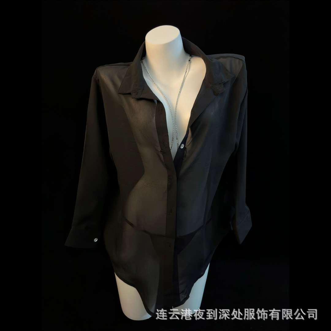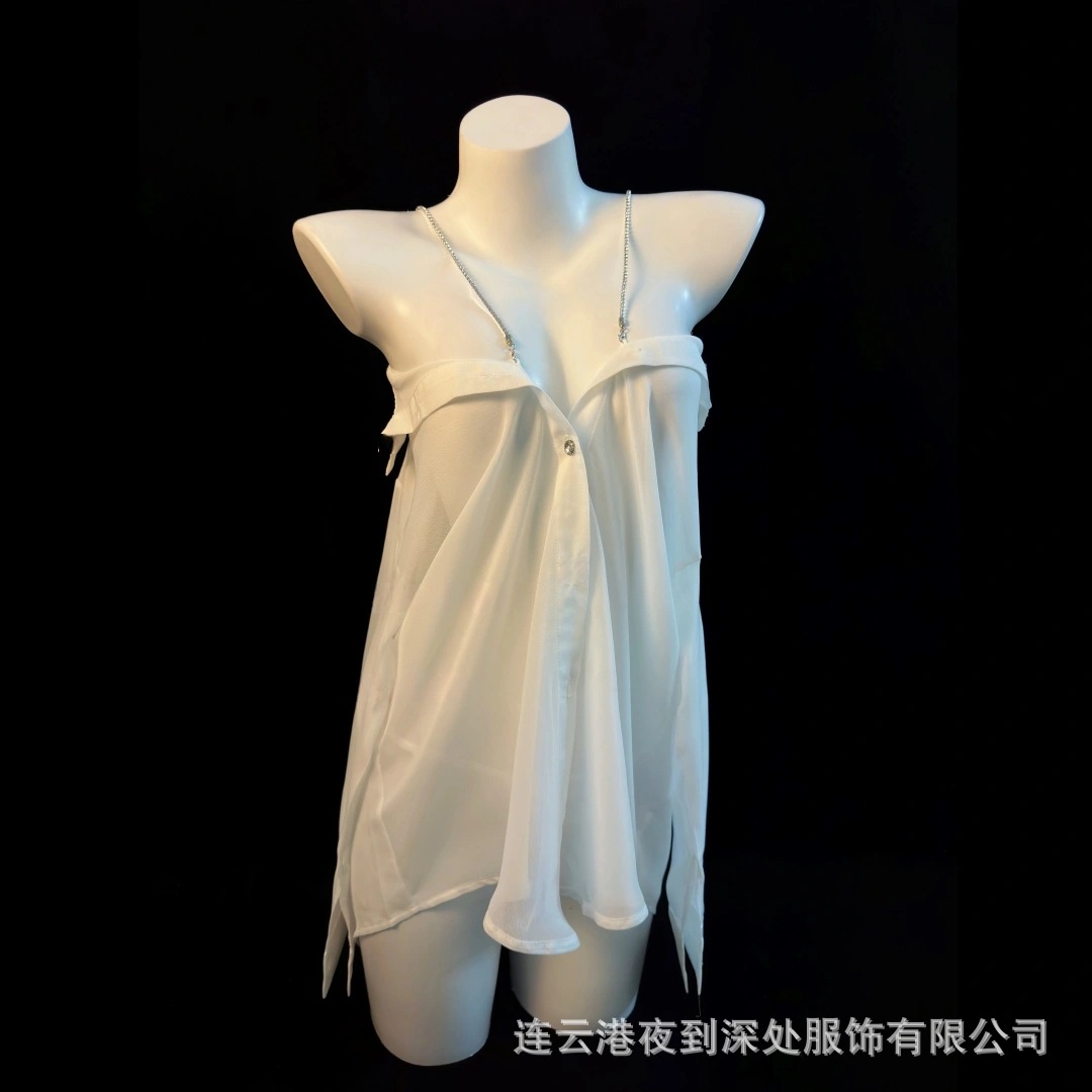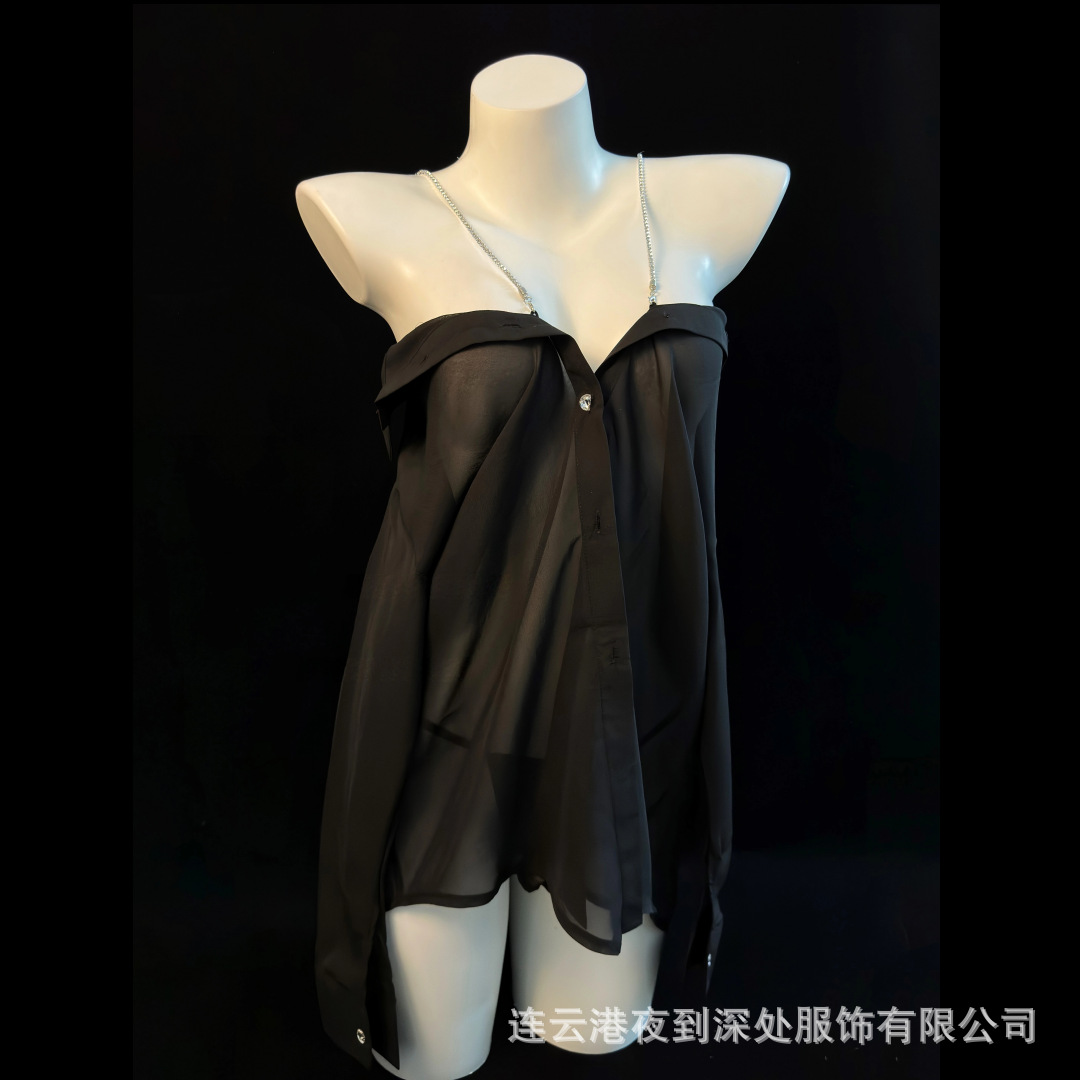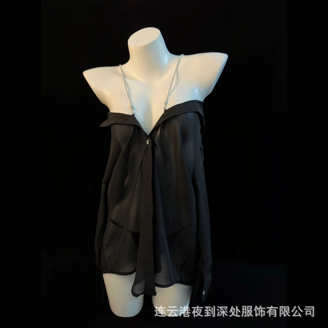밤부터 깊은 시폰 어깨 셔츠 슬링 나이트 가운 섹시한 관점 섹시한 속옷 유혹 뜨거운 여성