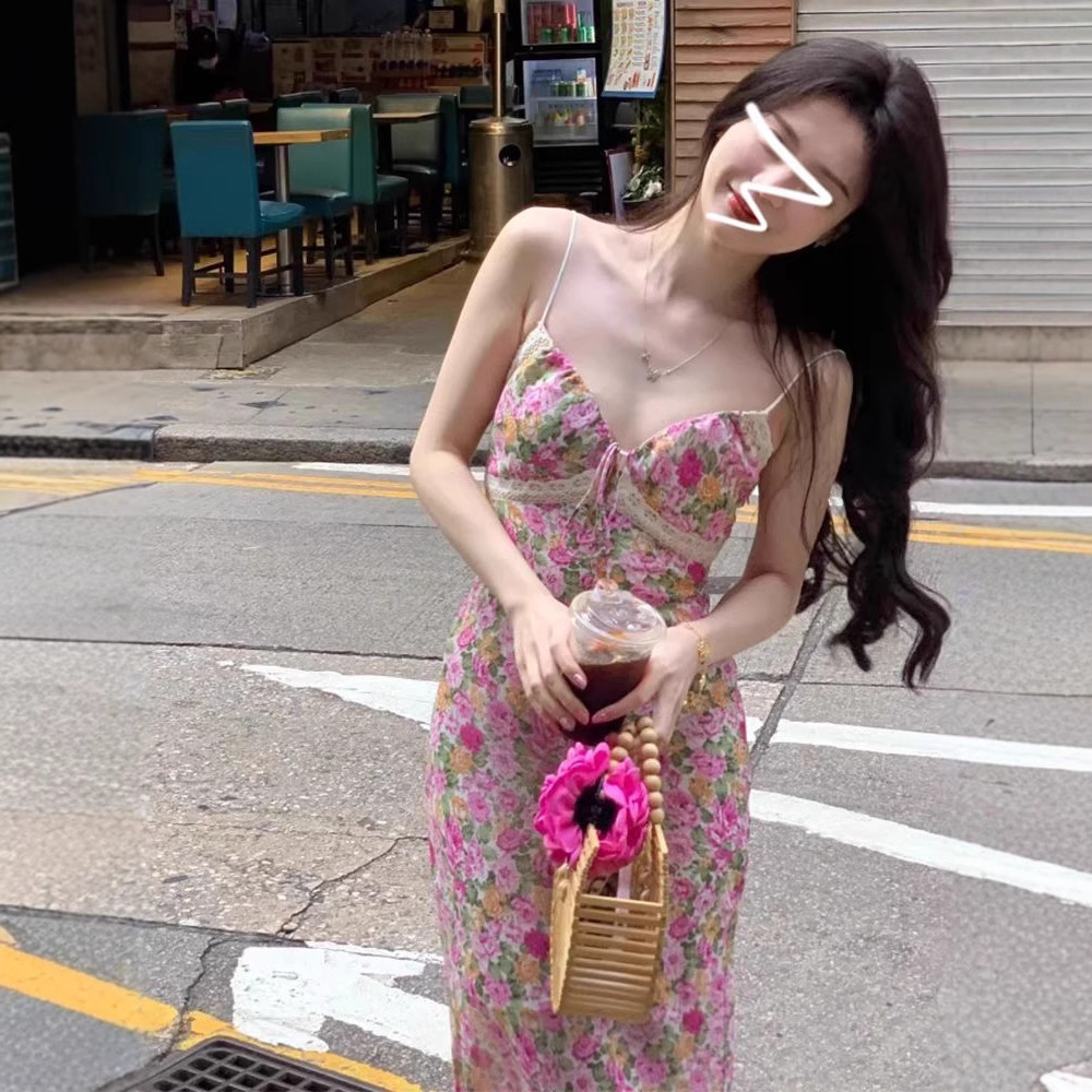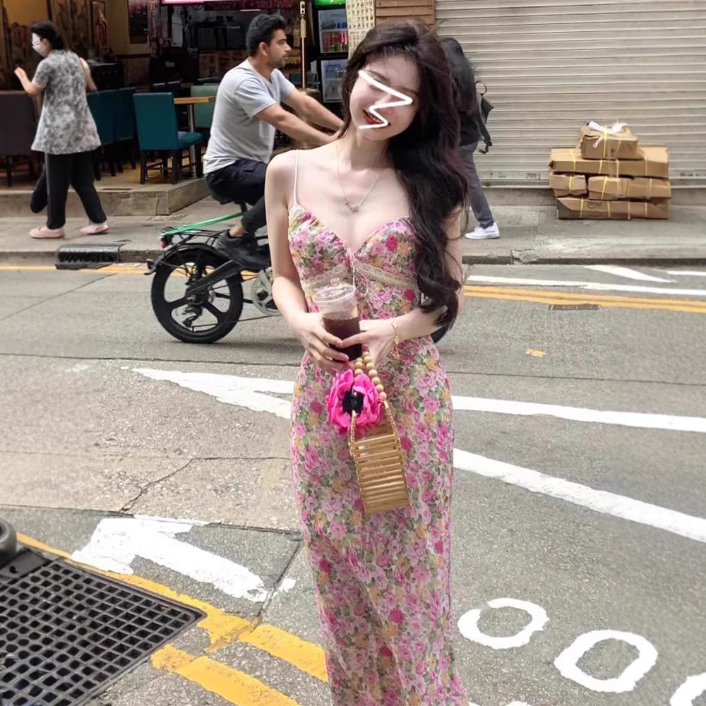 티 브레이크 프렌치 슬링 플로랄 원피스 어린이 여름 2025 새로운 도착 휴가 해변 롱 원피스