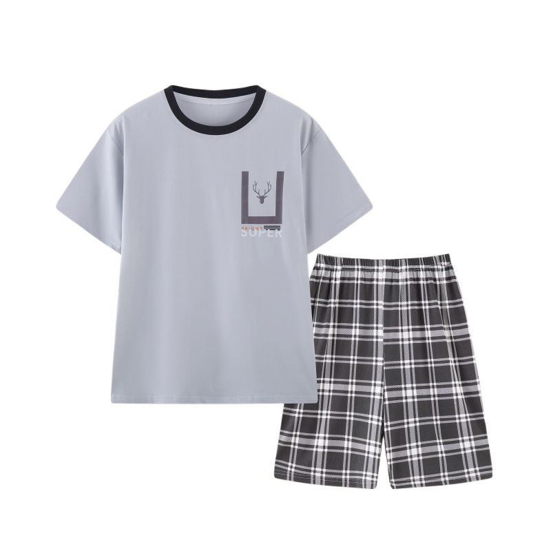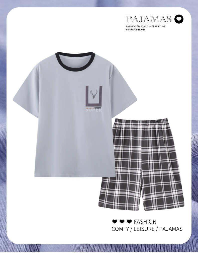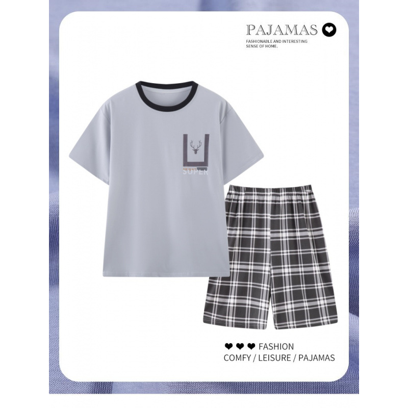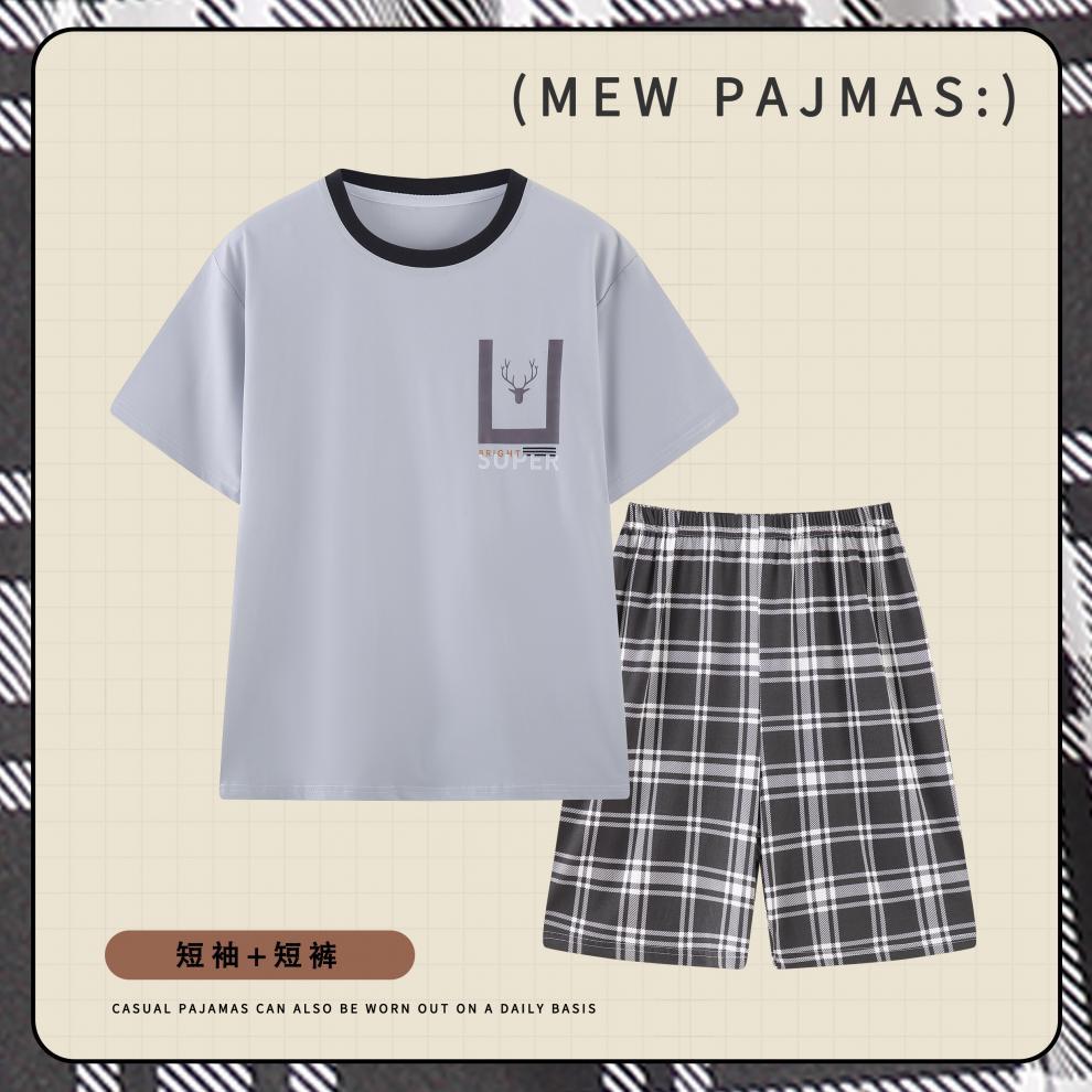 남성 잠옷 캐주얼 반팔 반바지 여름 얇은 루즈핏 남성용 풀오버 라운드넥 홈웨어 세트 통기성