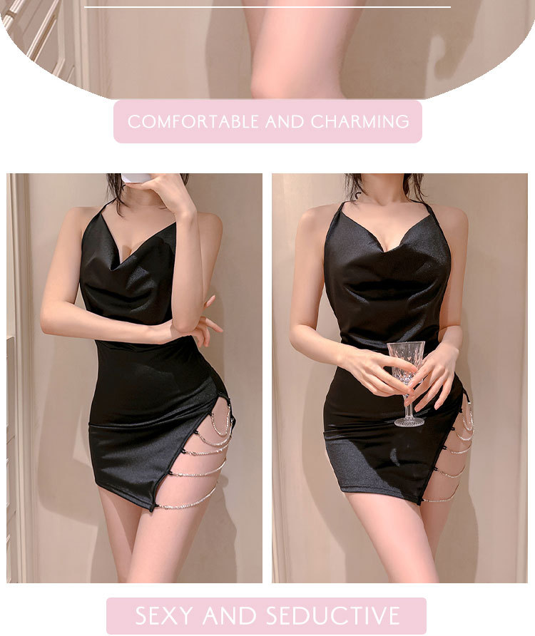 새로운 스타일 섹시한 잠옷 섹시한 란제리 핫 소녀 Nightdress 여성의 불규칙한 슬림-핏 힙합 스커트 백리스 분할 원피스