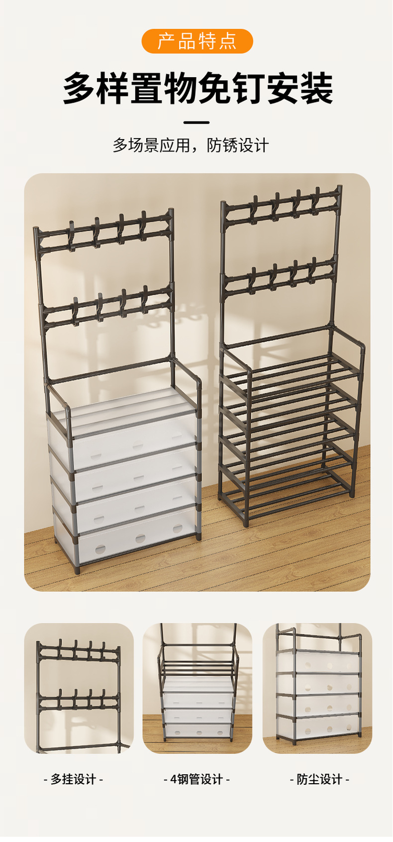 간단한 방진 신발 및 모자 랙 홀 엔트리 슈즈와 선반 다층 가정용 기숙사 렌탈 룸 통합 보관 신발 캐비닛