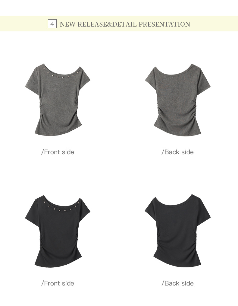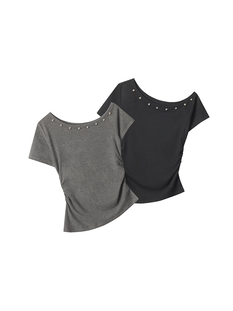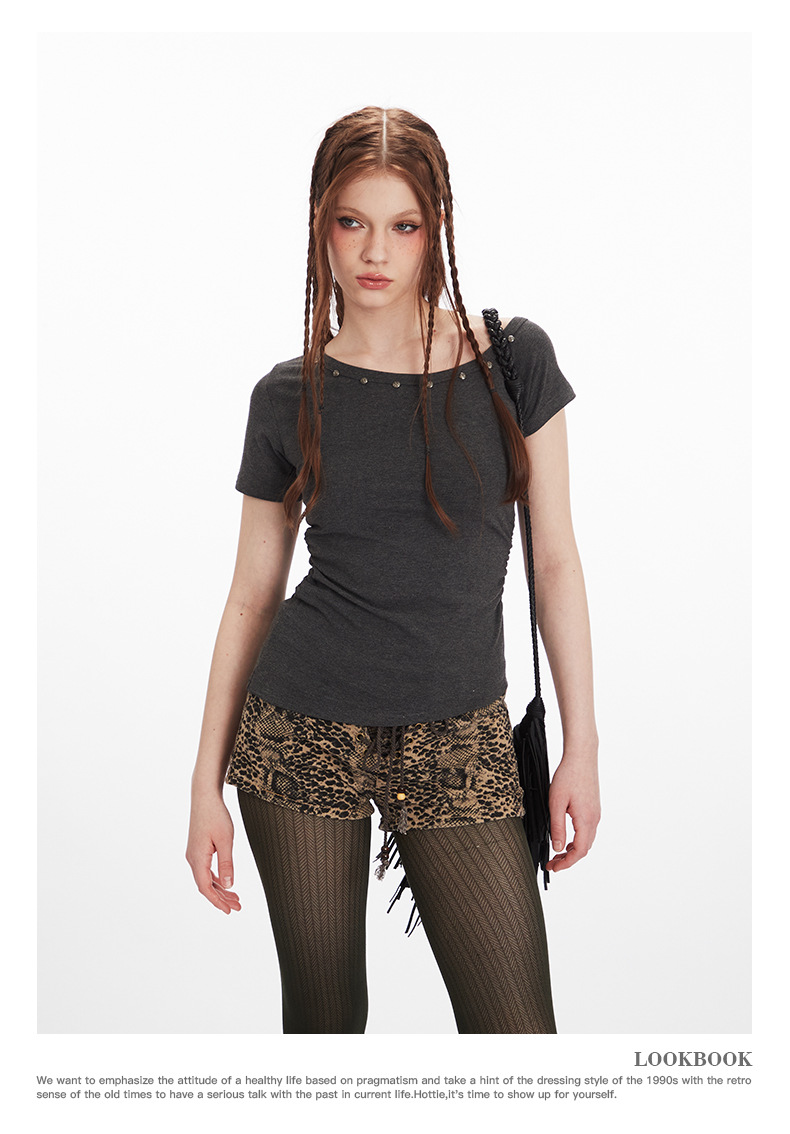 HeyHenry American Style Hot Girl 슬림 핏 반팔 티셔츠 여성용 2025 년 여름 어깨 노출 쇼트 웨이스트 탑