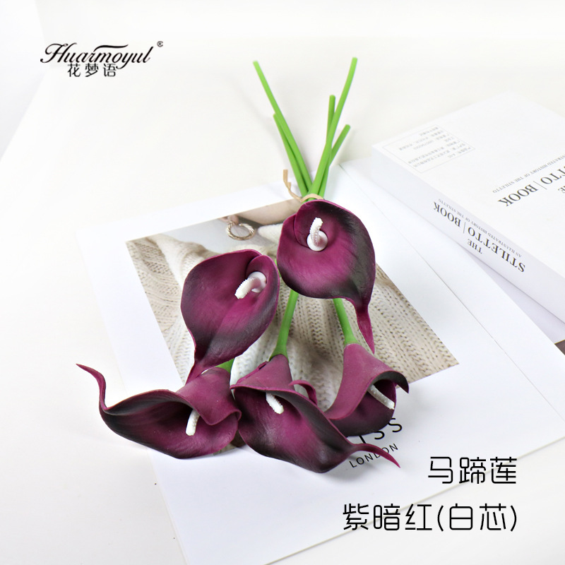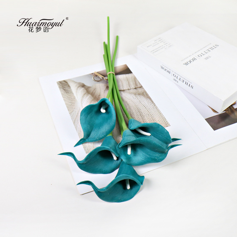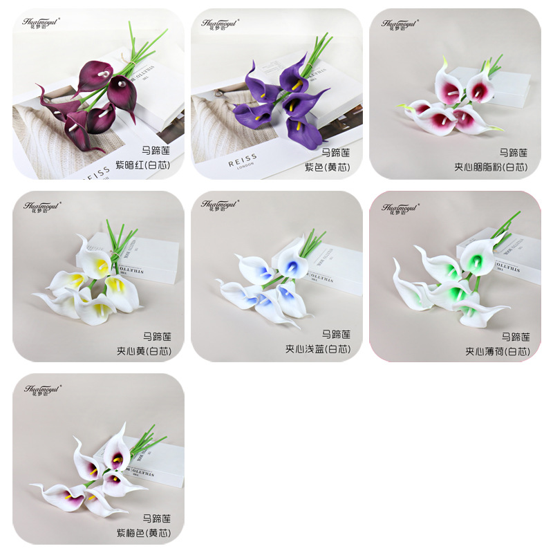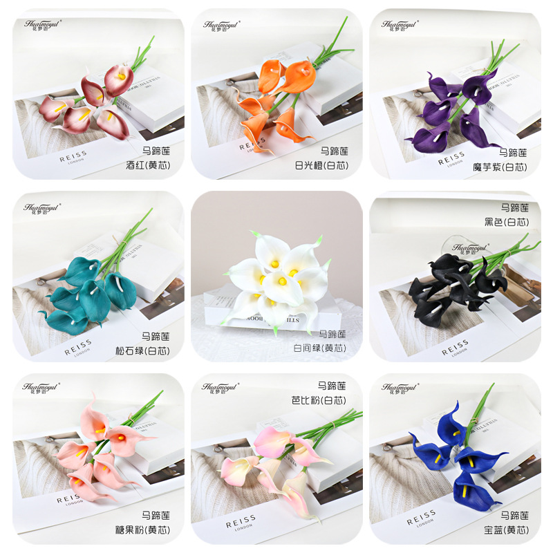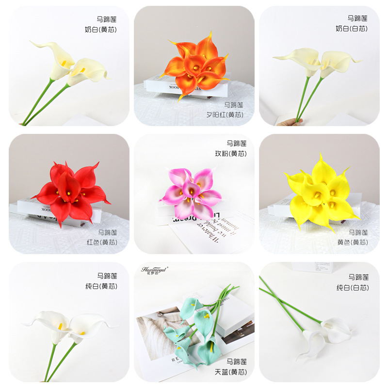 국경 간 재고 시뮬레이션 PU 미니 느낌 보습 칼라 백합 인공 꽃 홈 장식 웨딩 촬영 소품