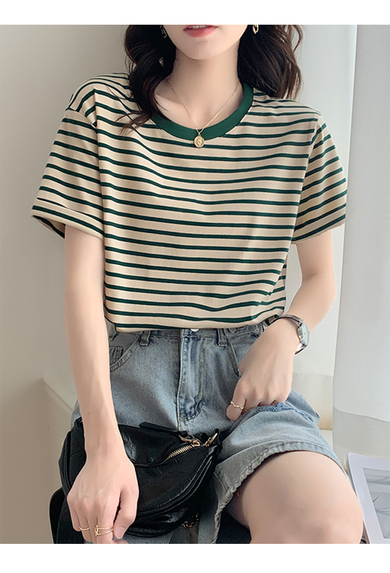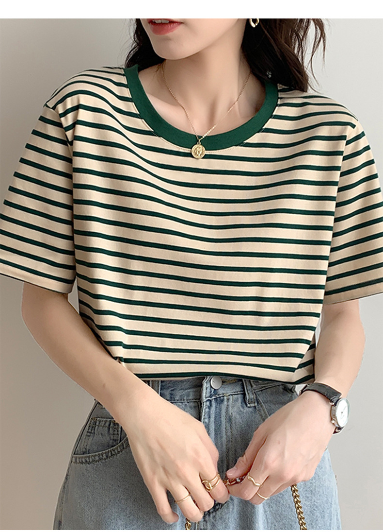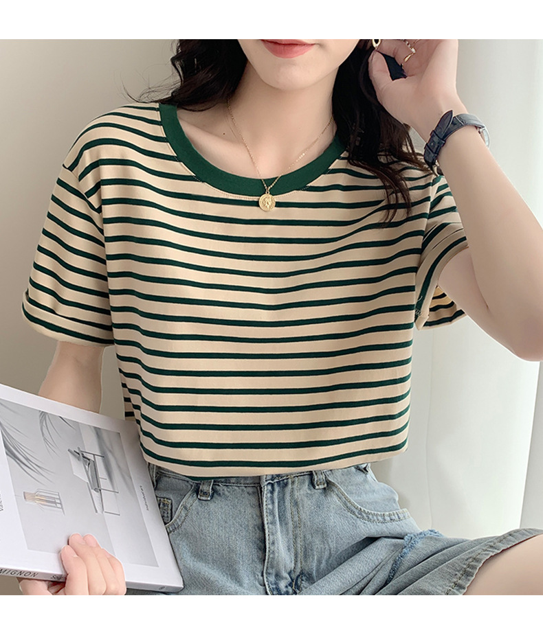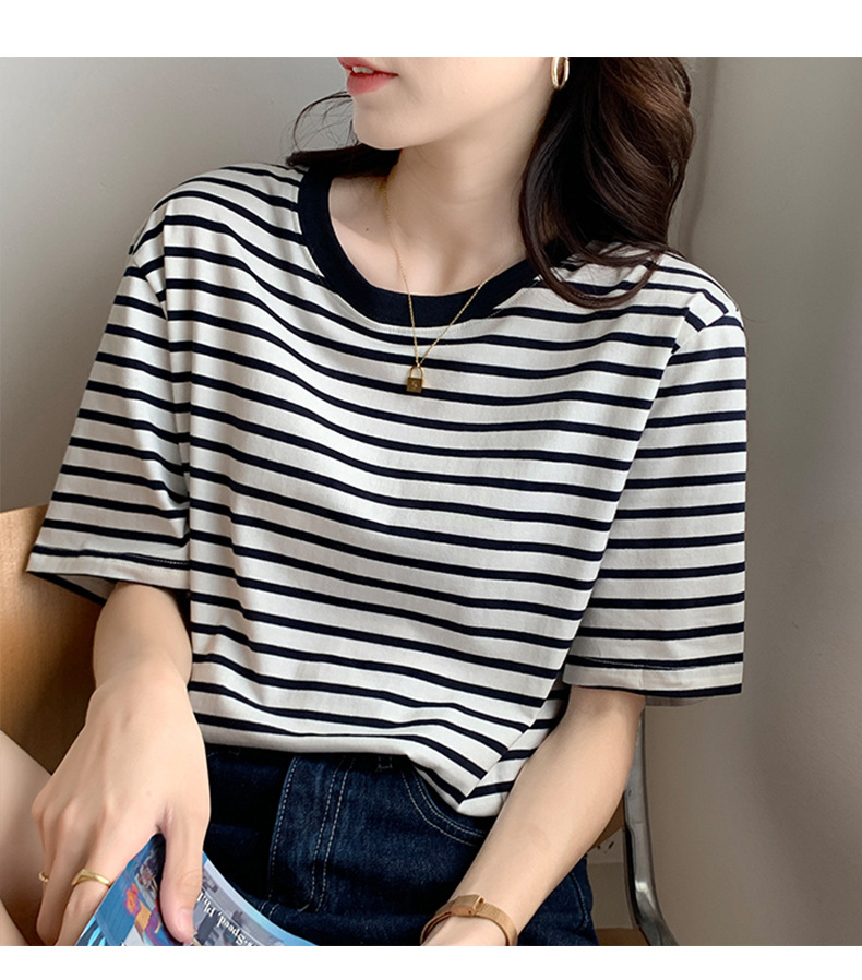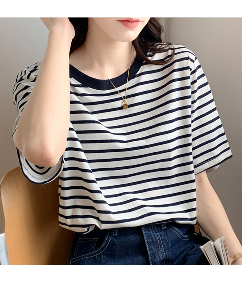순면 반팔 가로 줄무늬 티셔츠 여성 여름 2026 신상 루즈핏 반팔 티셔츠 캐주얼 베이직 숄더탑